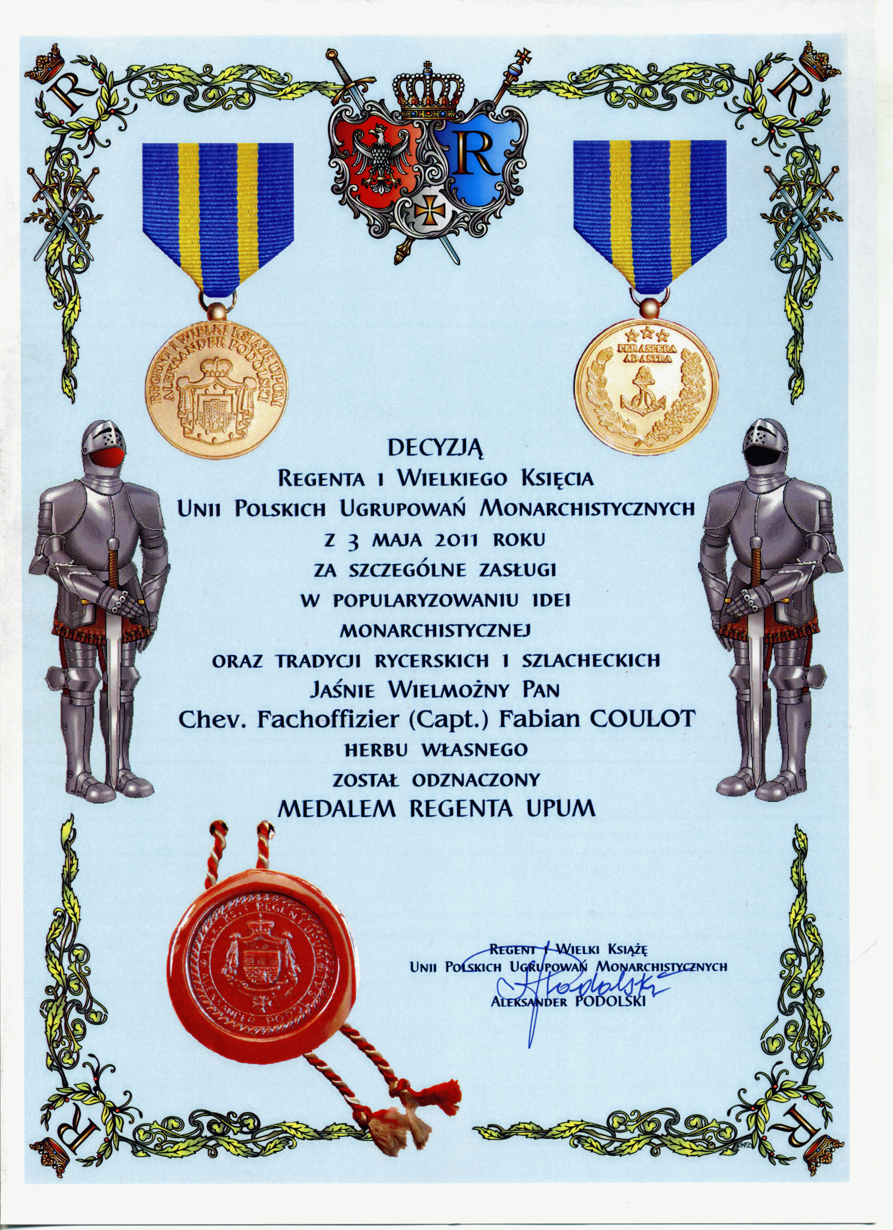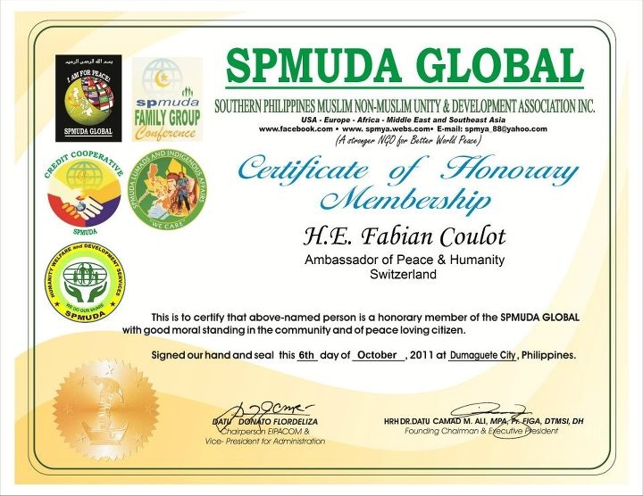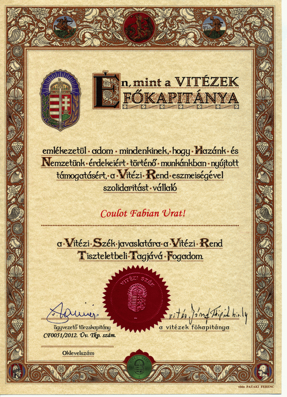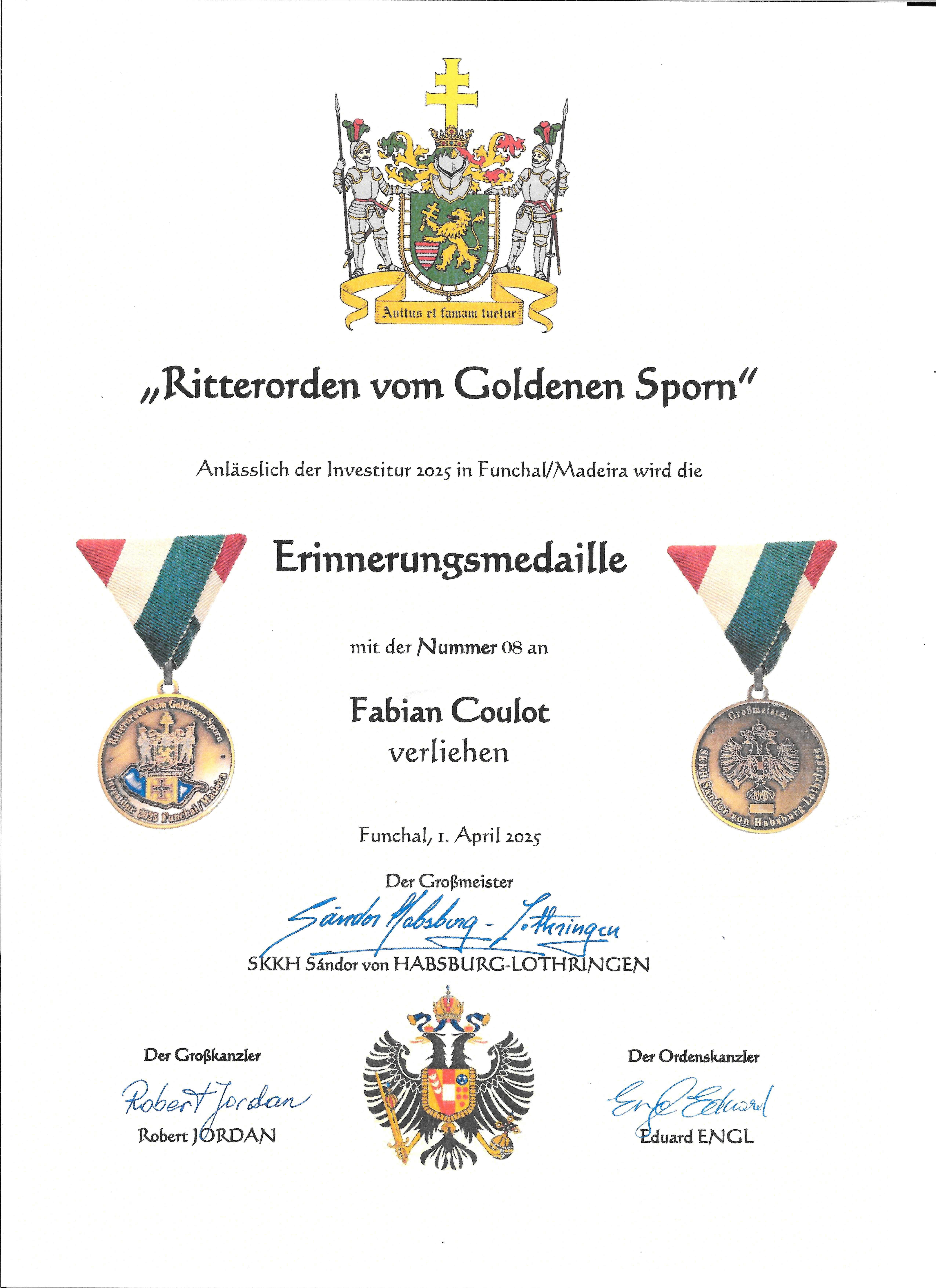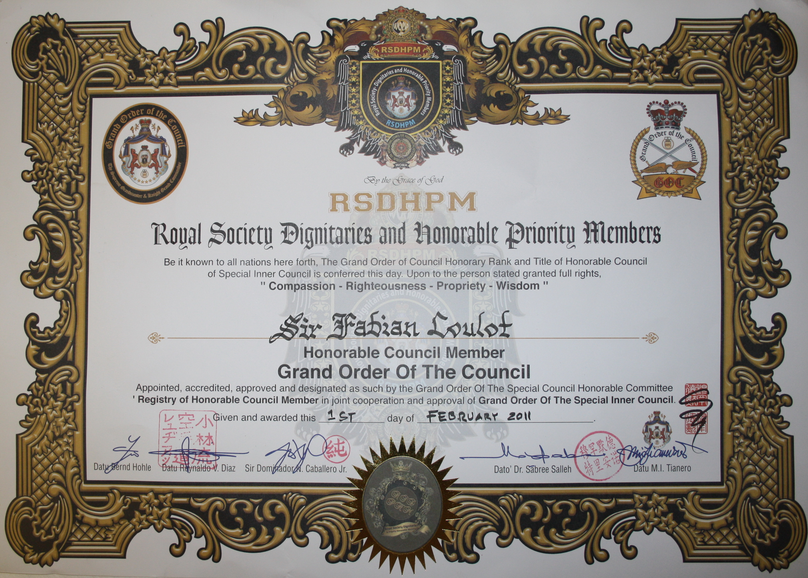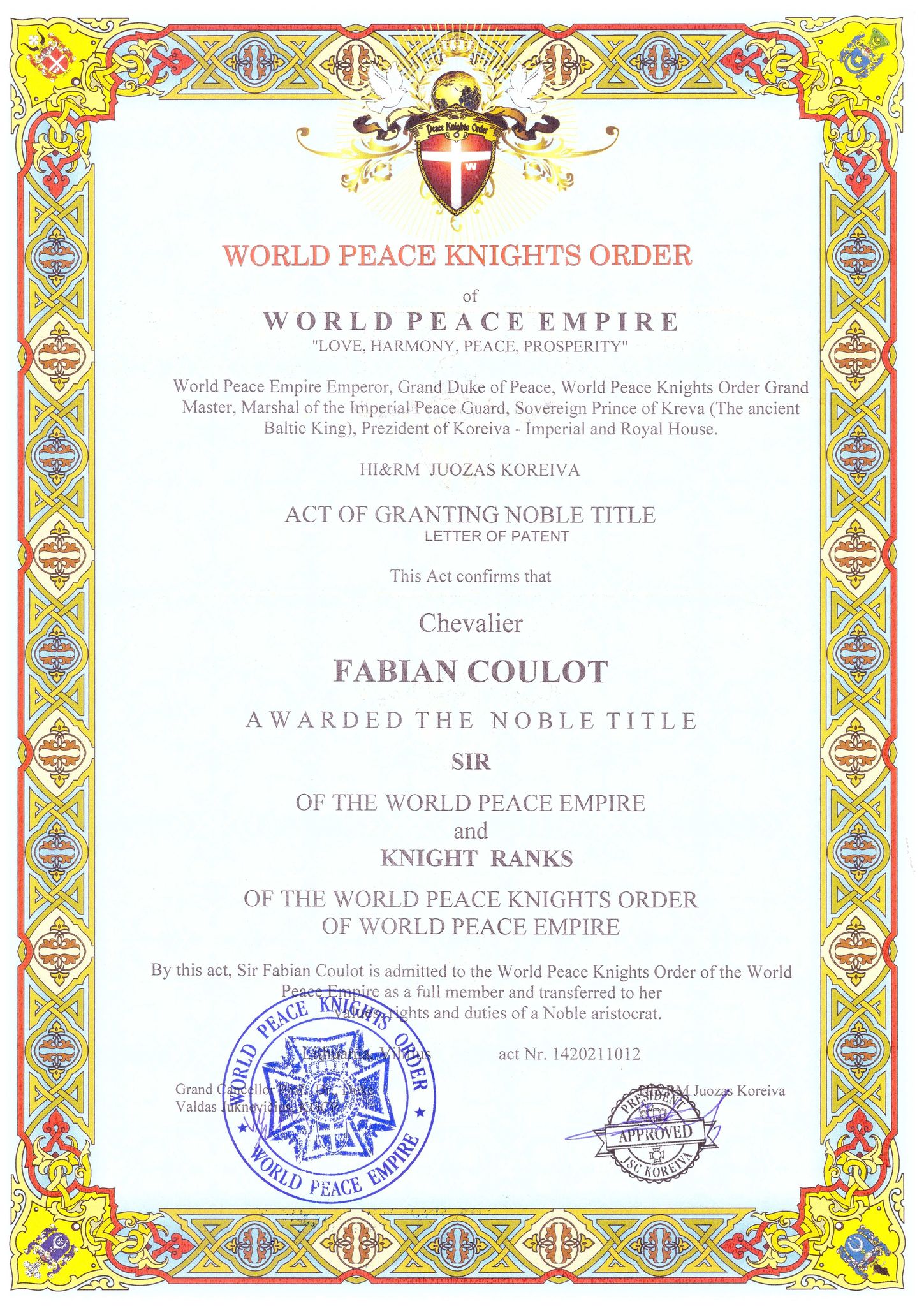 Verleihung des Adel Titel SIR als Ritter im World Peace Knights Order of
