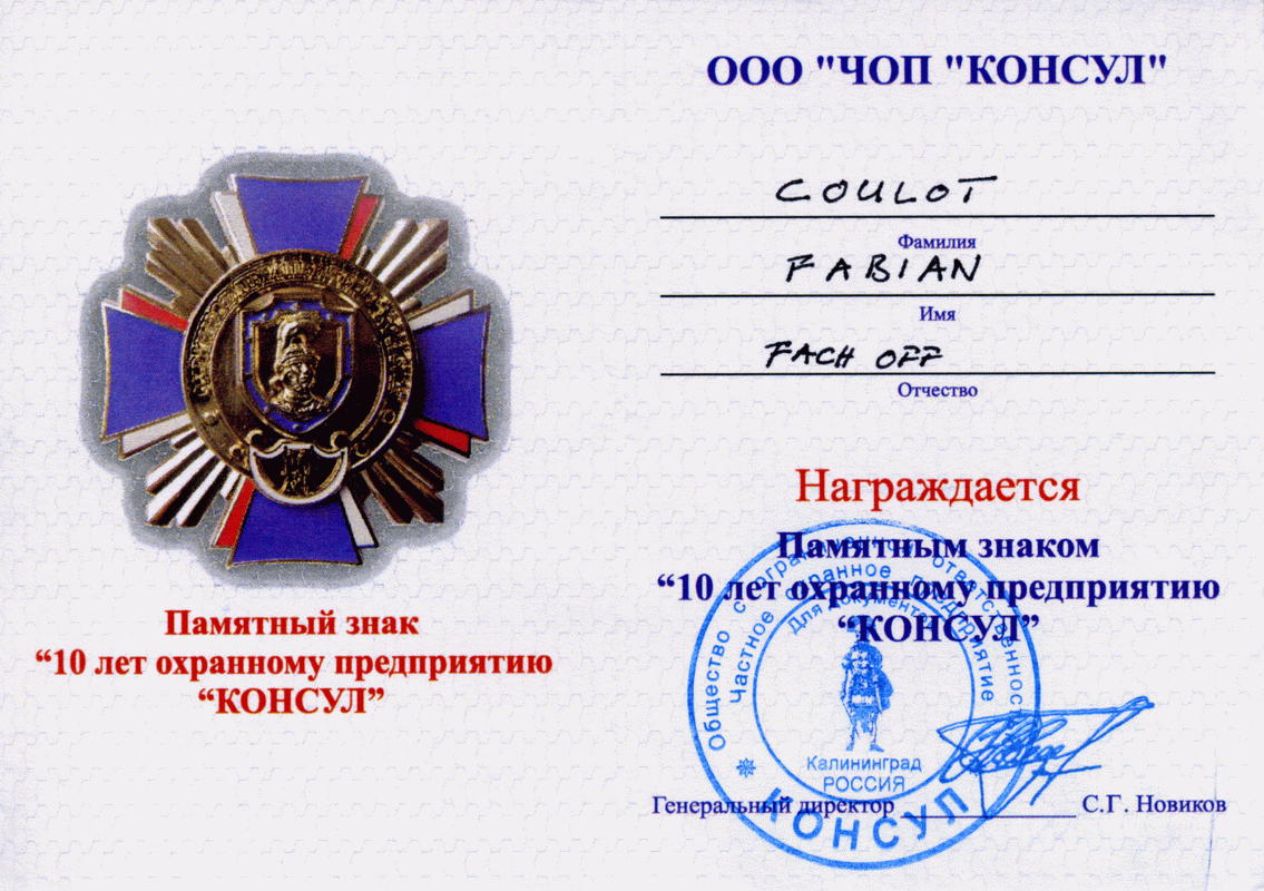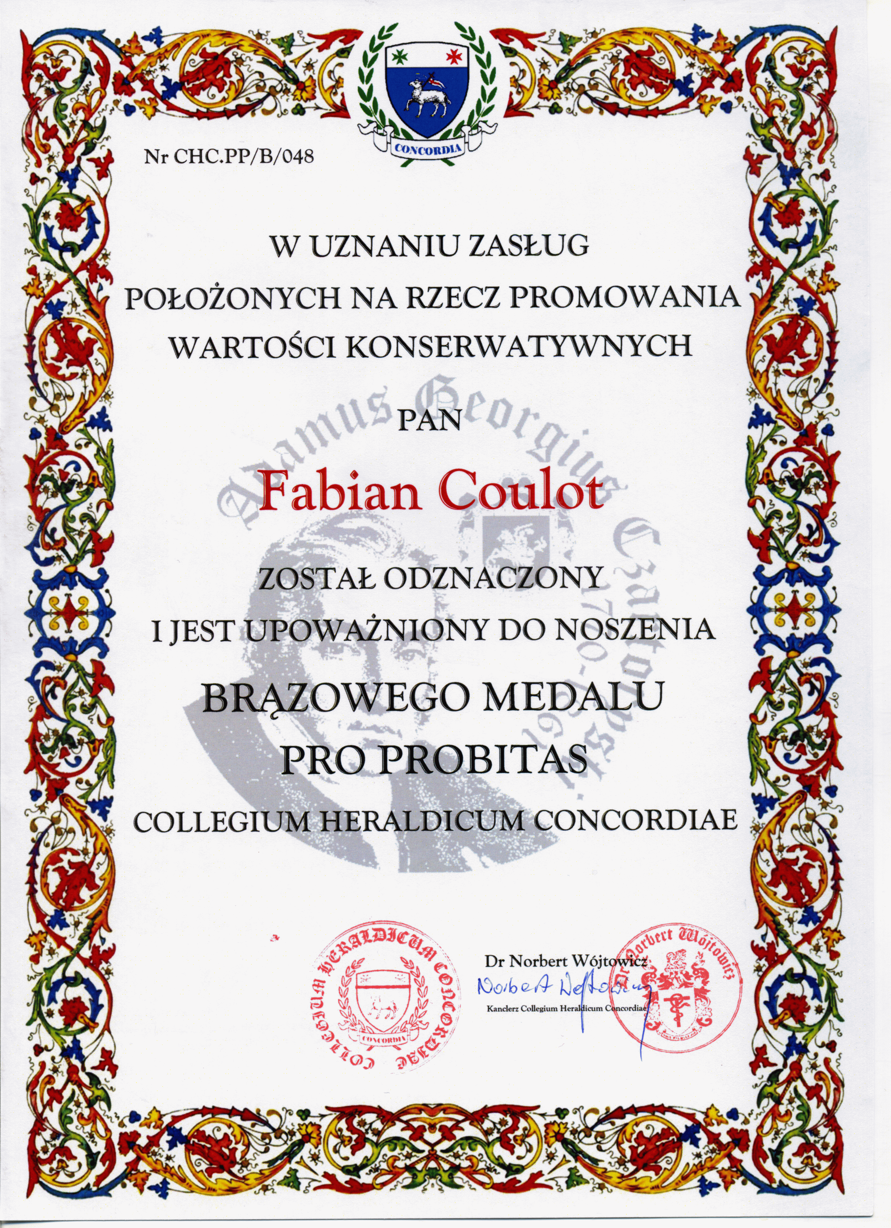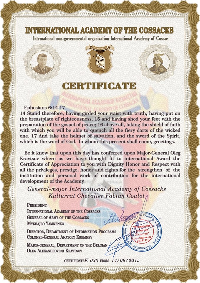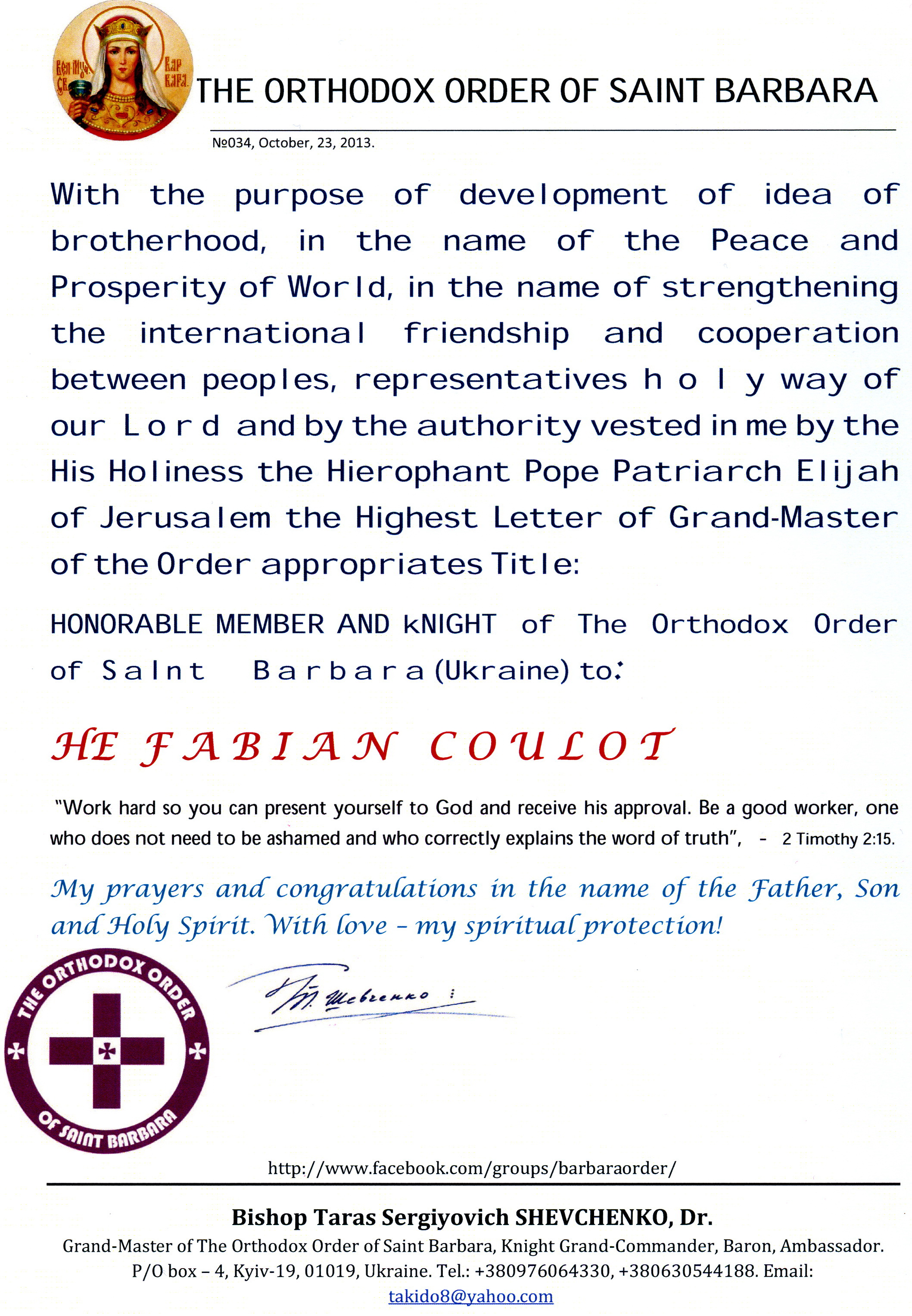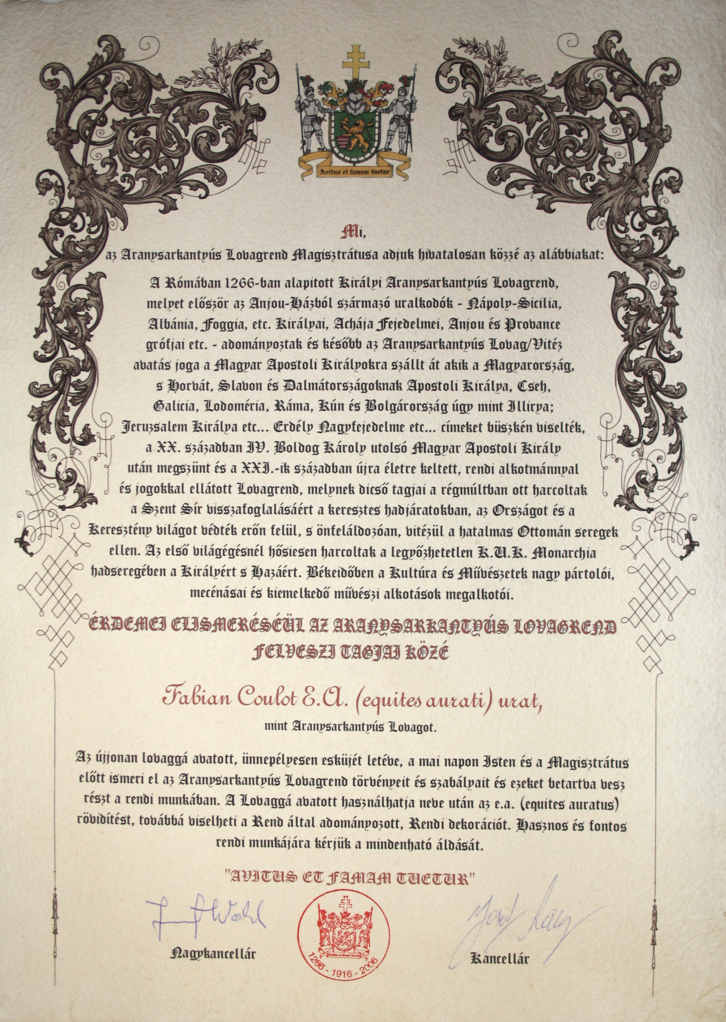Verleihung des Adel Titel SIR als Ritter im World Peace Knights Order of