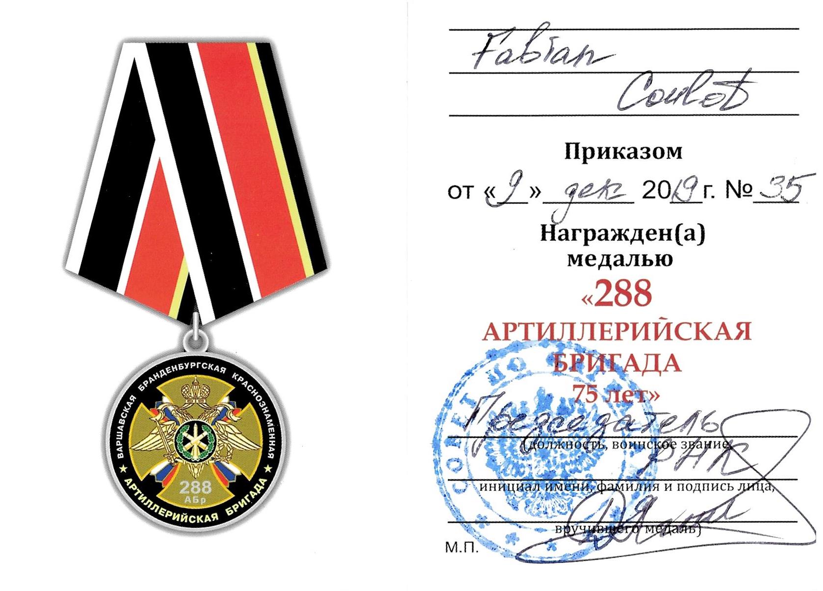 Verleihung der "75 Jahr Jubiläums Medaille" der 288. Artillerie Brigade