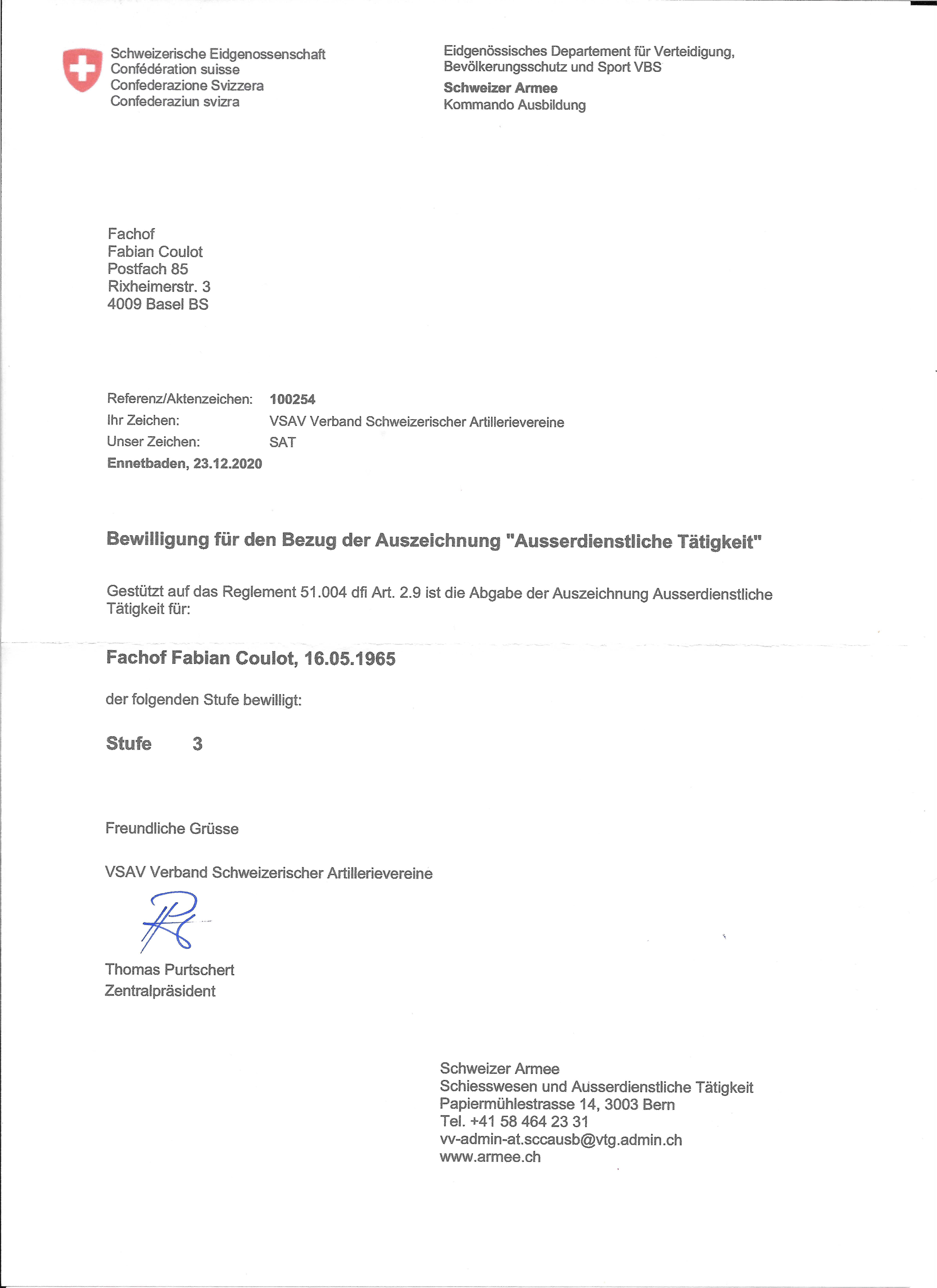 Auszeichnung (Ribbon) "Ausserdienstliche Tätigkeit" Stufe 3