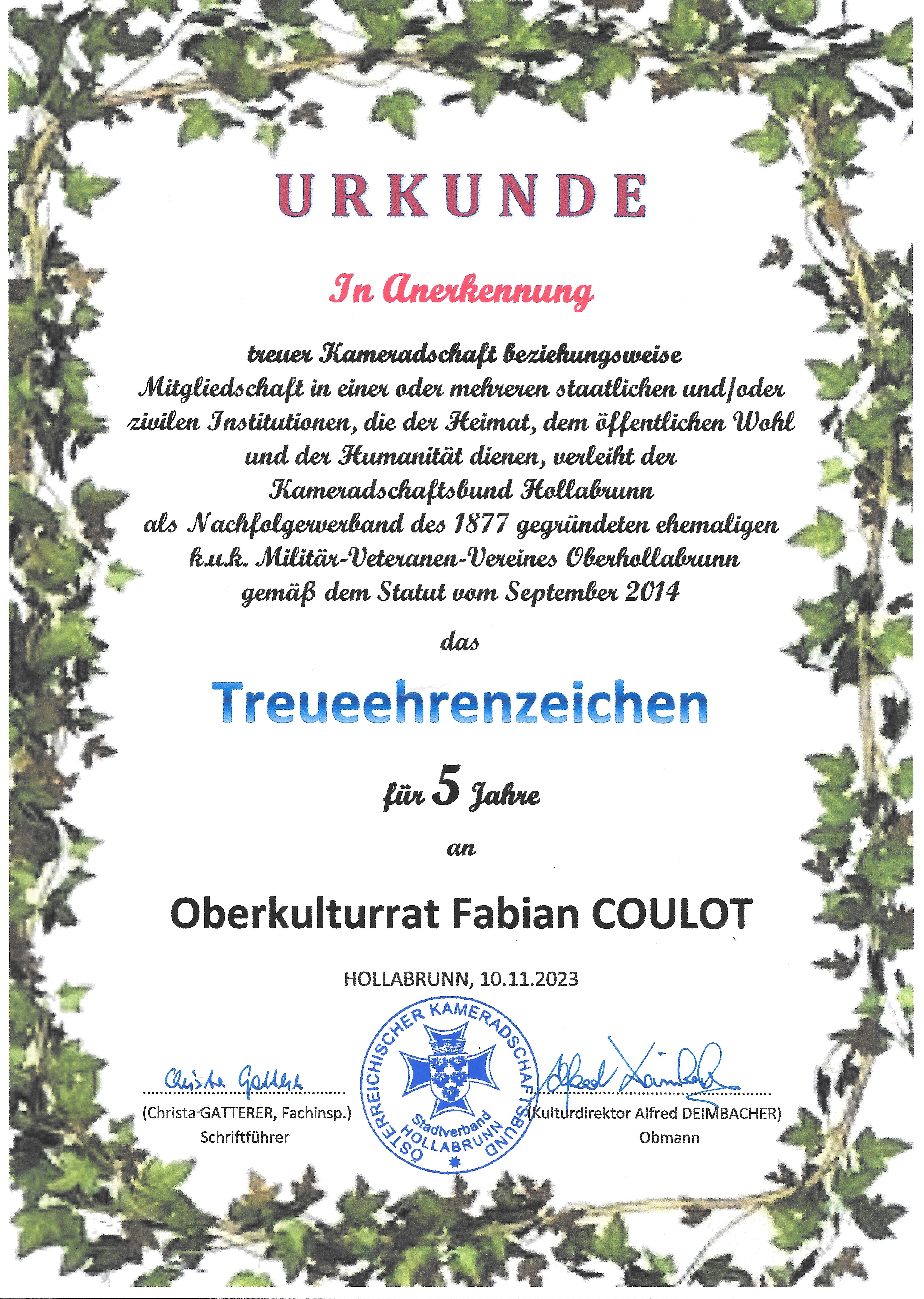 Verleihung für 40 Jahre Mitgliedschaft im österreichischen