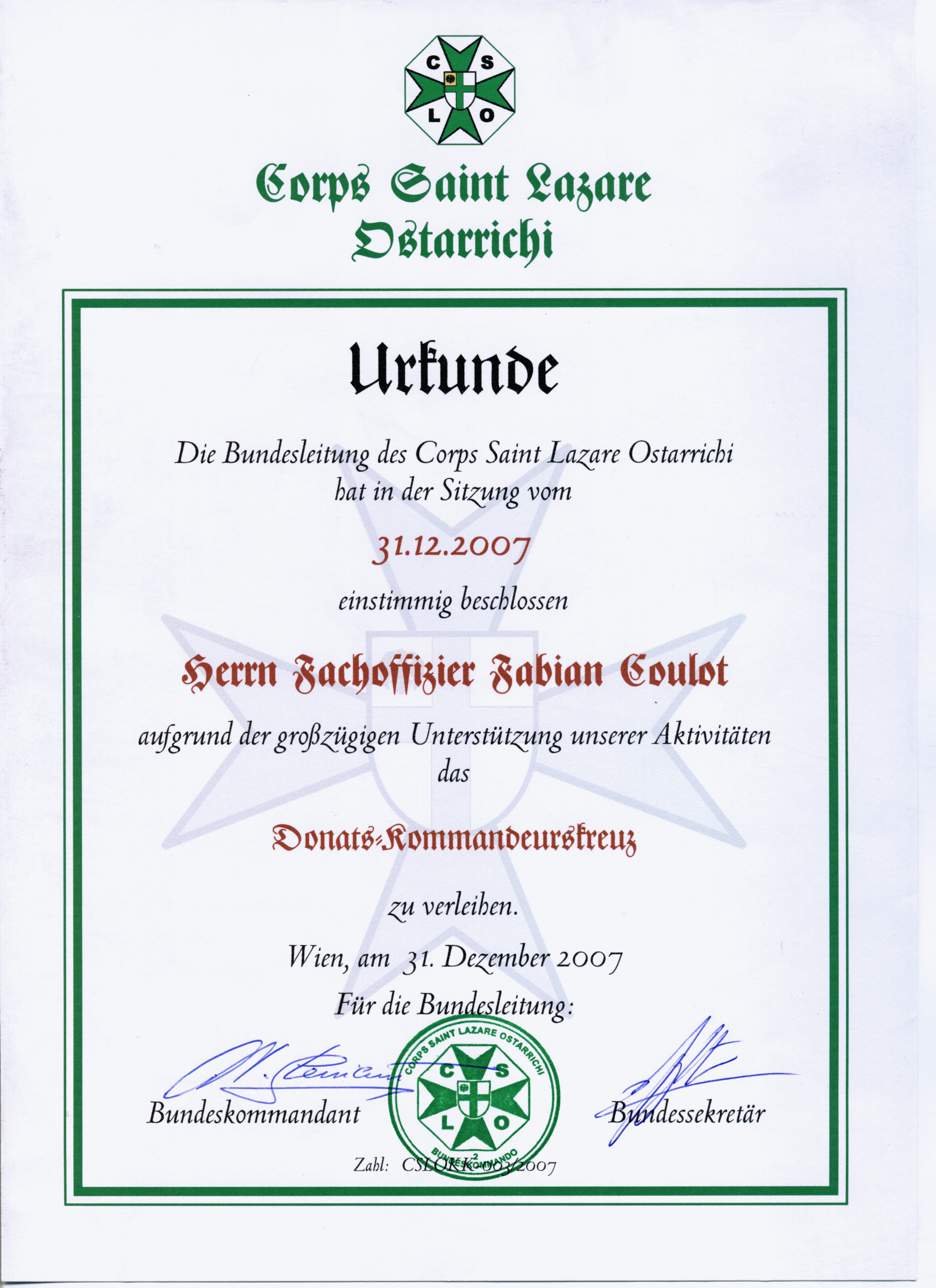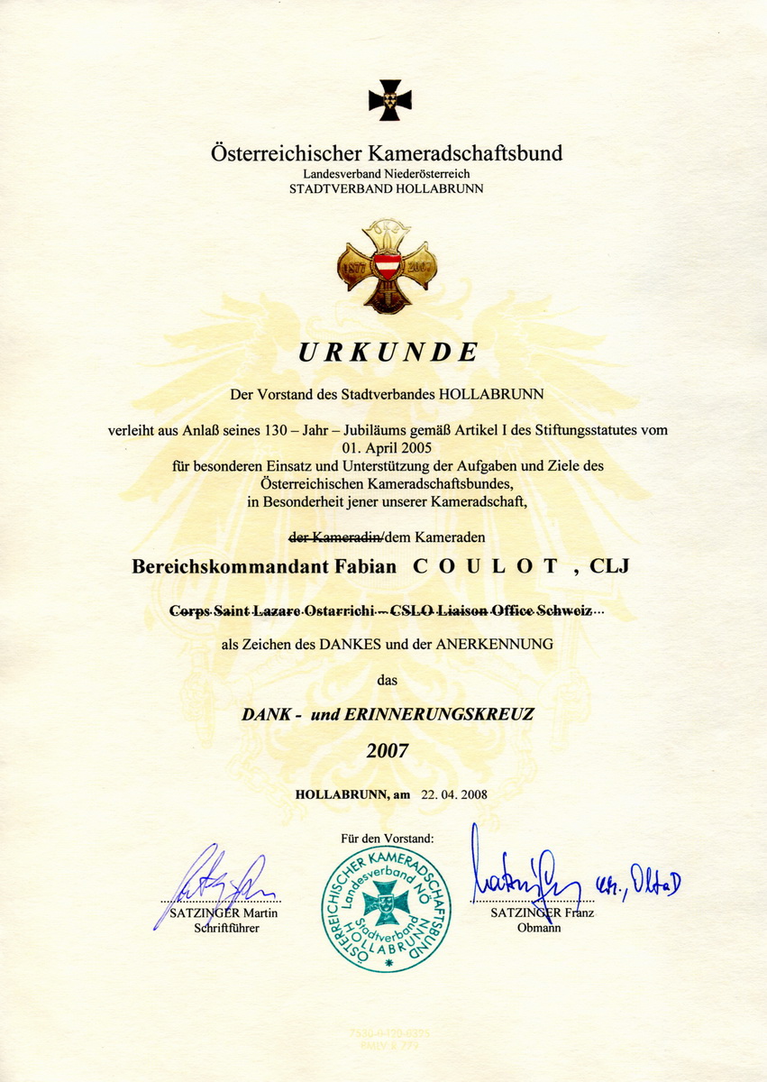 Bundesleitung CORPS SAINT LAZARE OSTARRICHI (CSLO) Wien