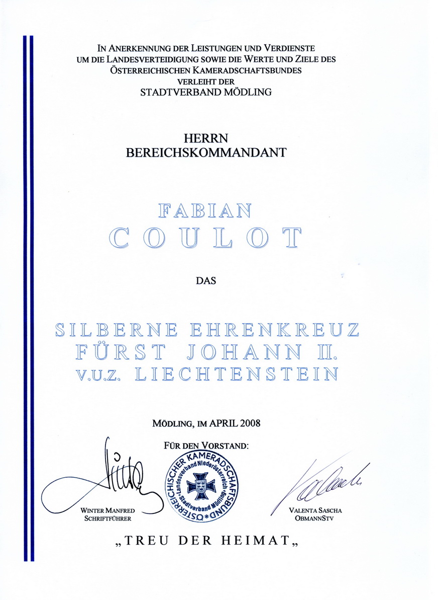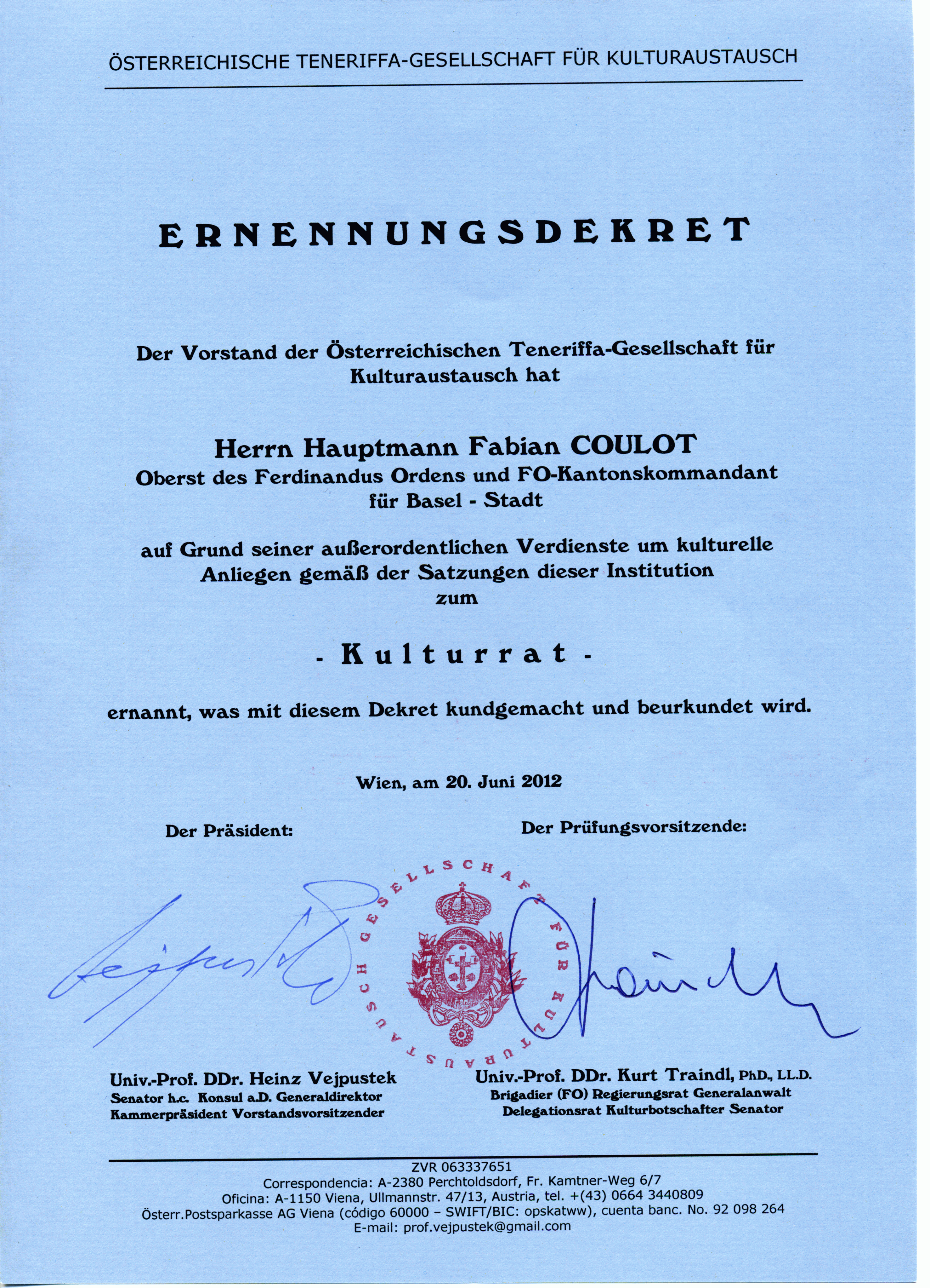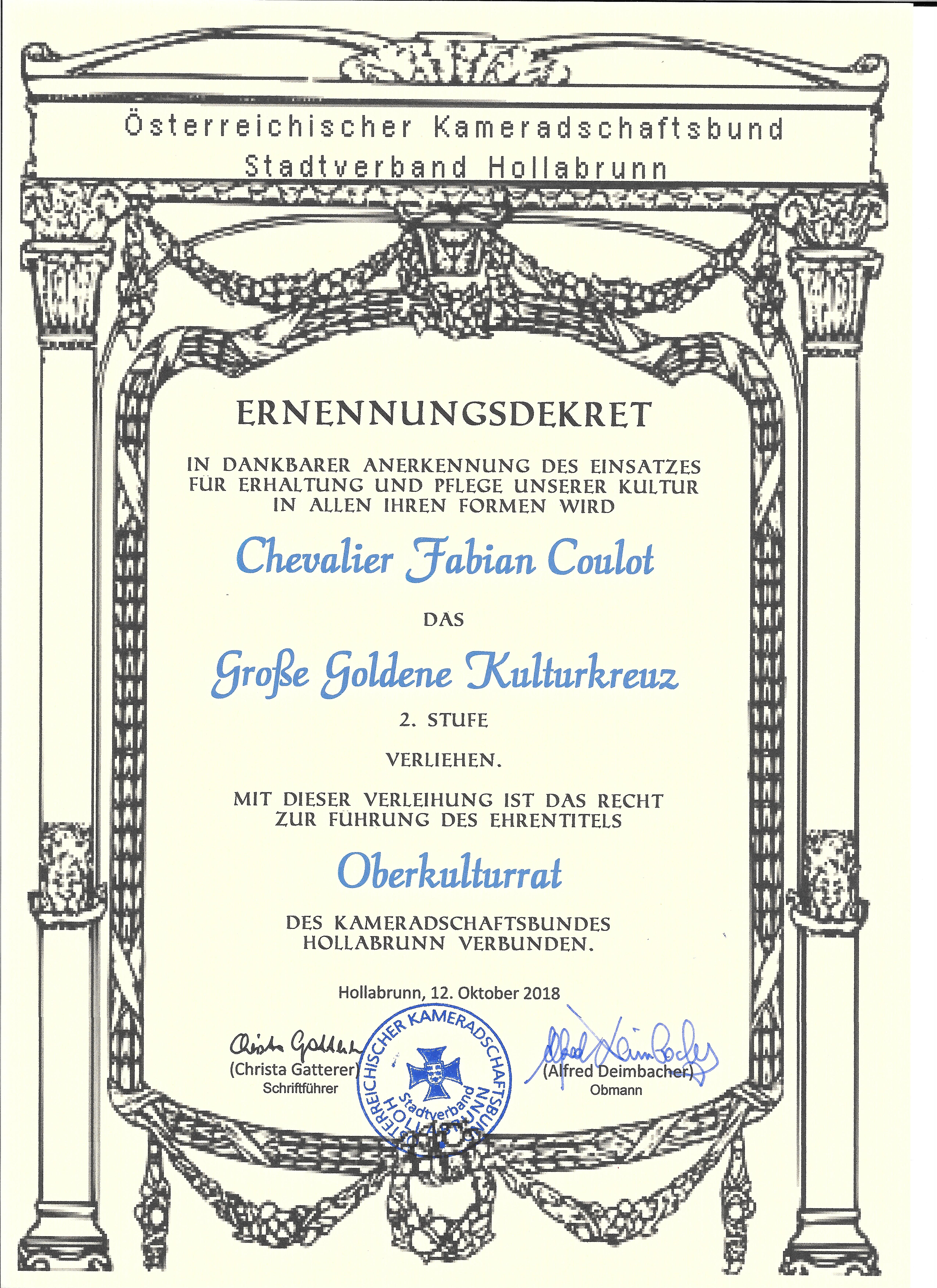 Goldene Kulturkreuz – 2.Klasse“ verliehen. Bei gleich-zeitiger Ernennung
