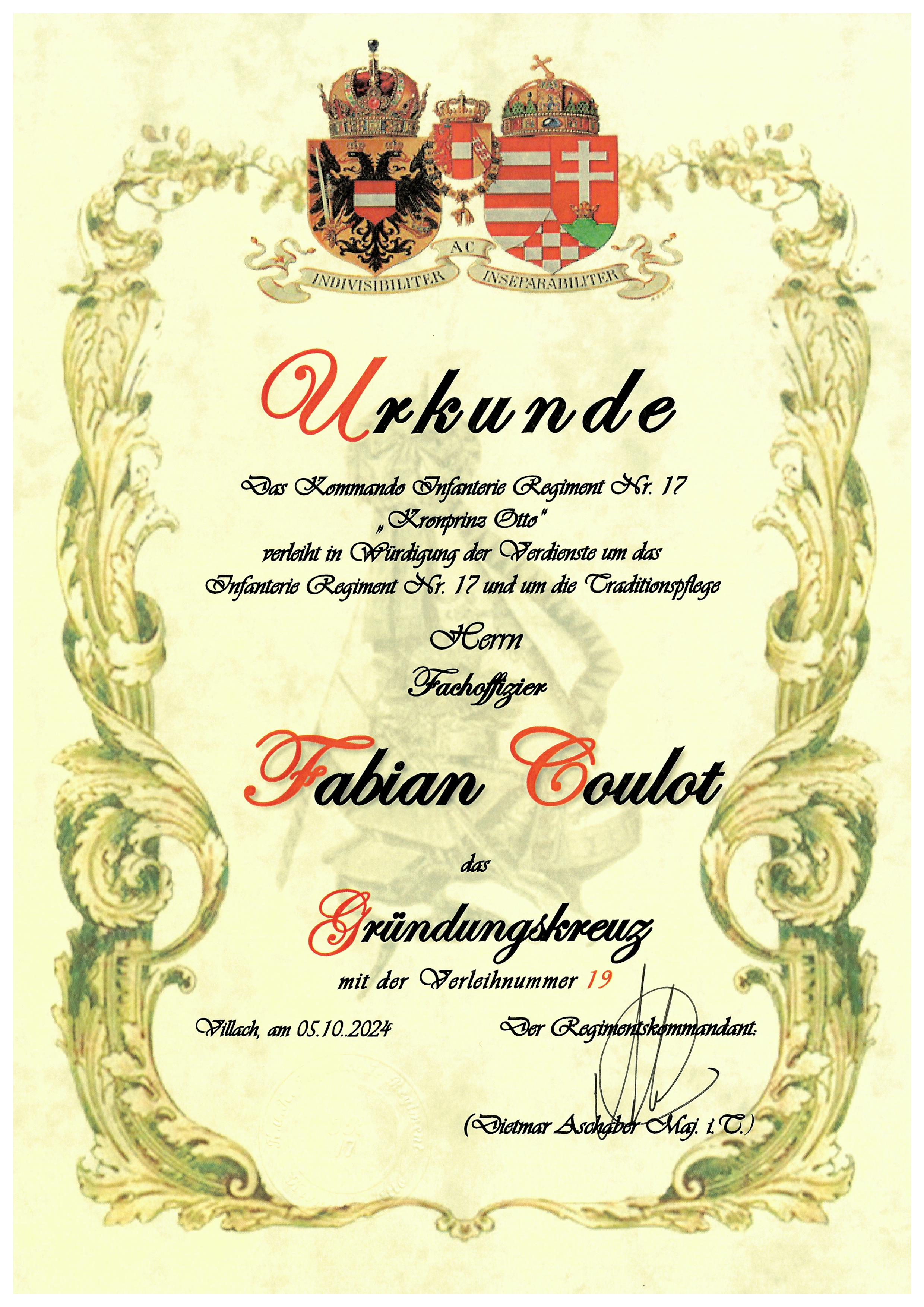 Verleihung des Komturkreuz in Silber des k.u.k. Infanterie Regiment