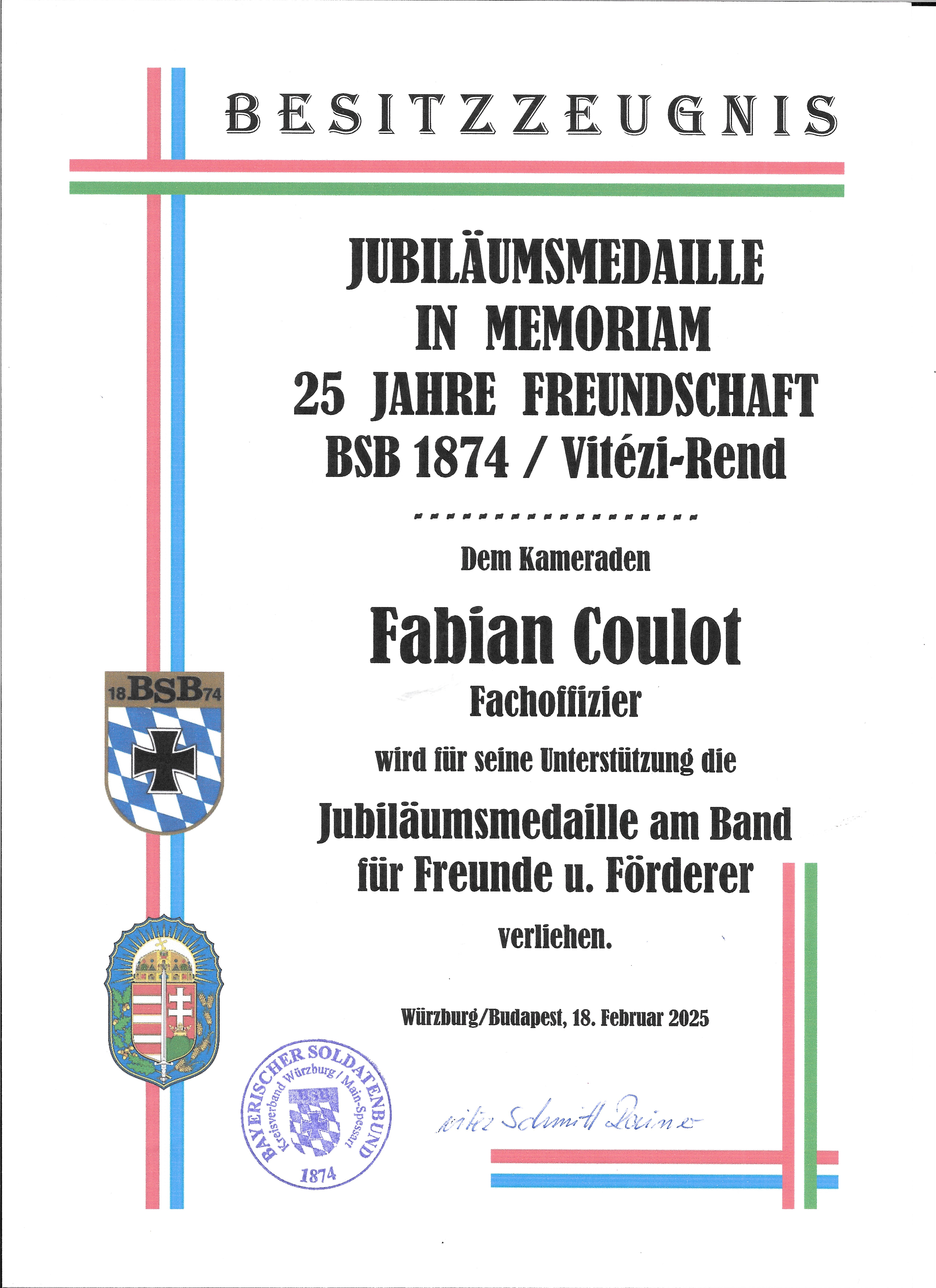 Verleihung der Jubiläumsmedaille in Memoriam 25 Jahre Freundschaft BSB