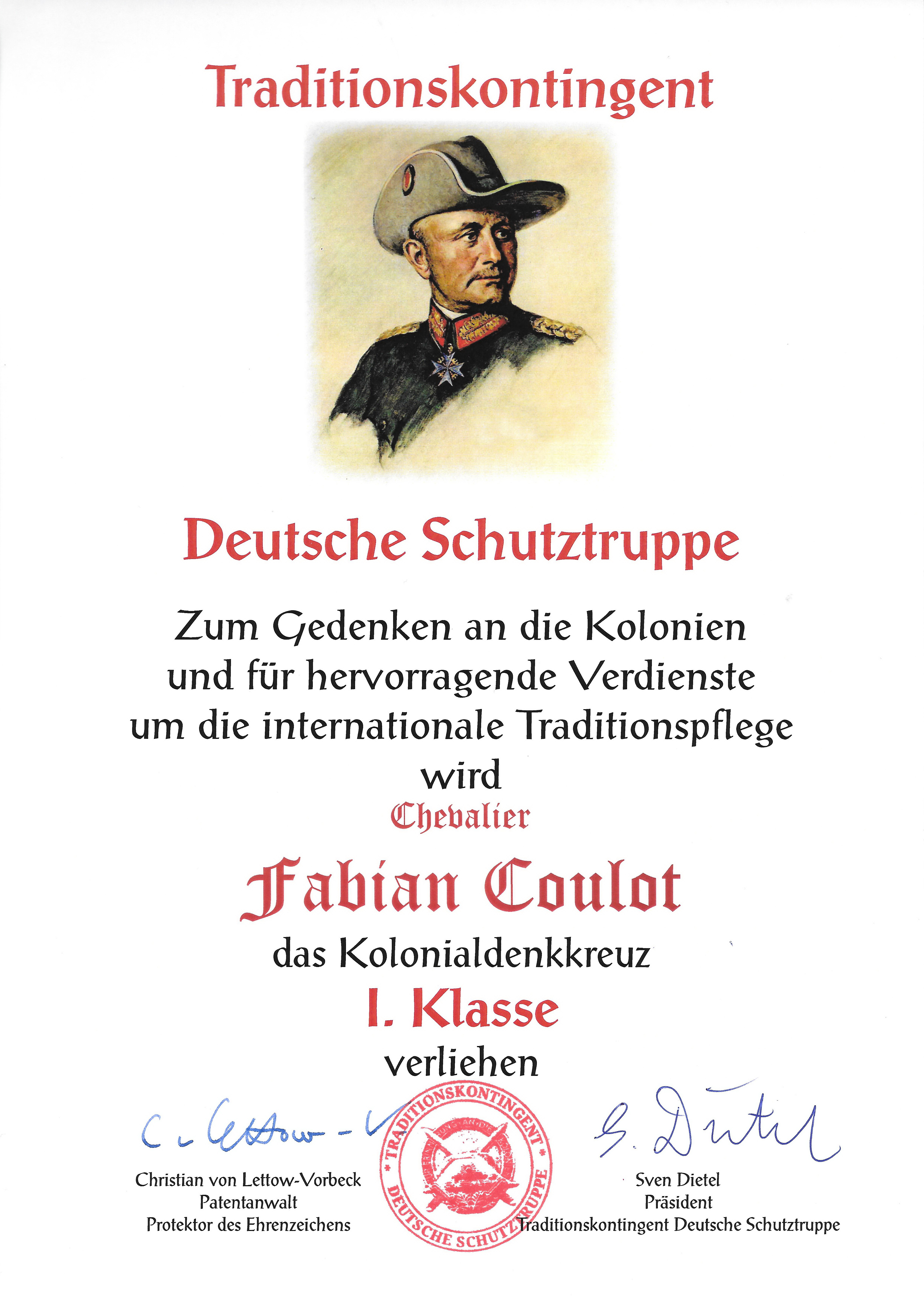 Verleihung des Kolonialdenkkreuz 1. Klasse zum Gedenken an die Kolonien