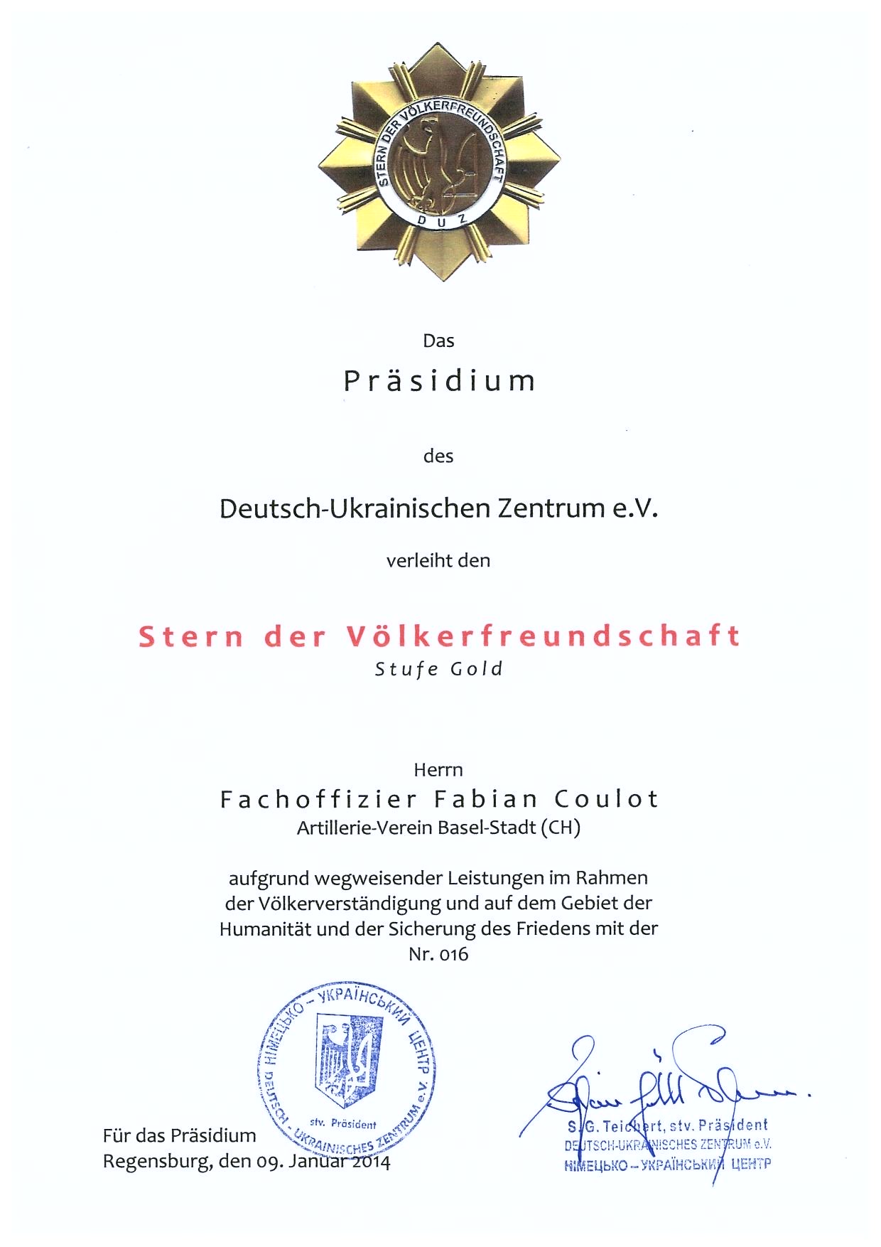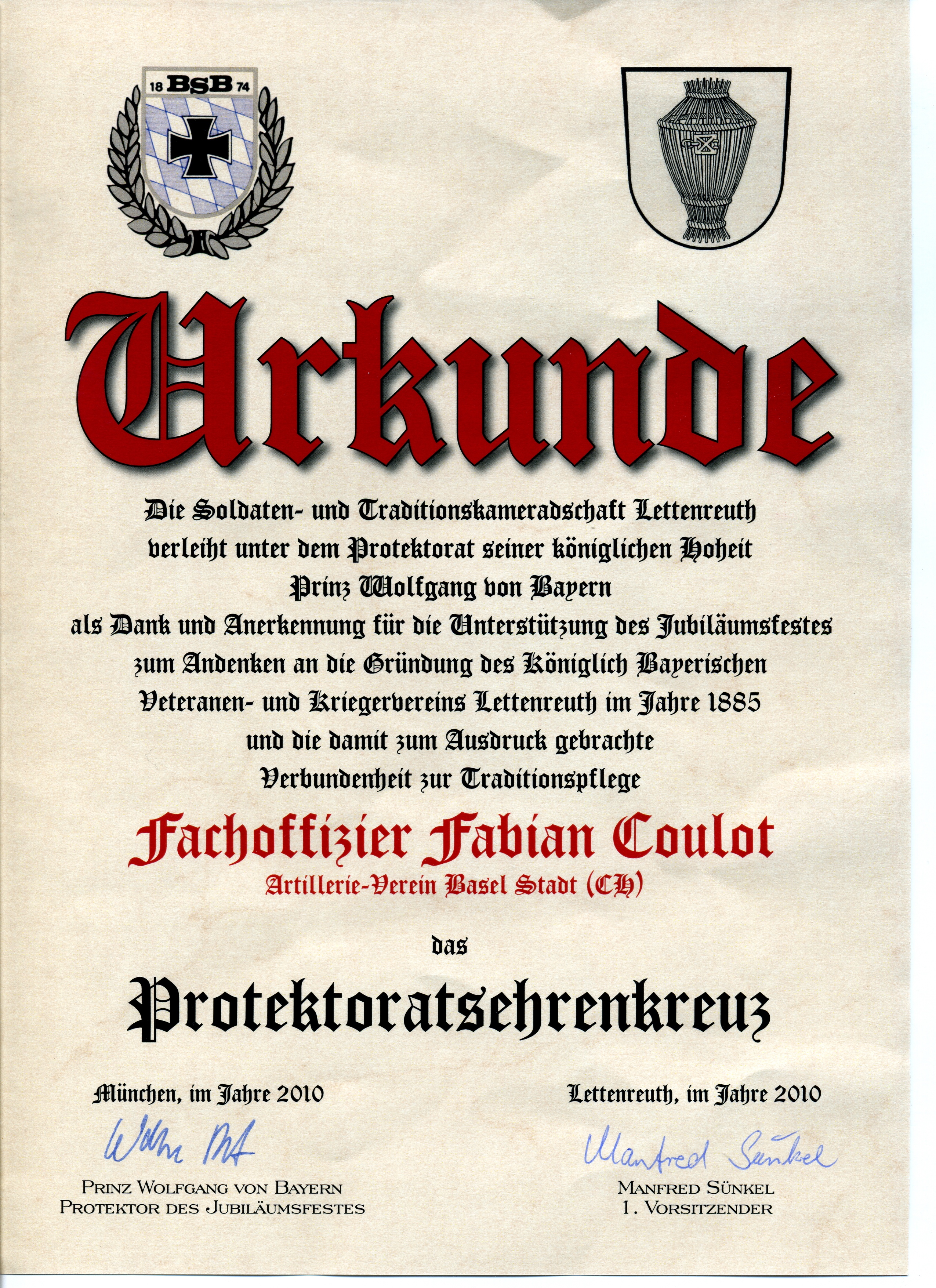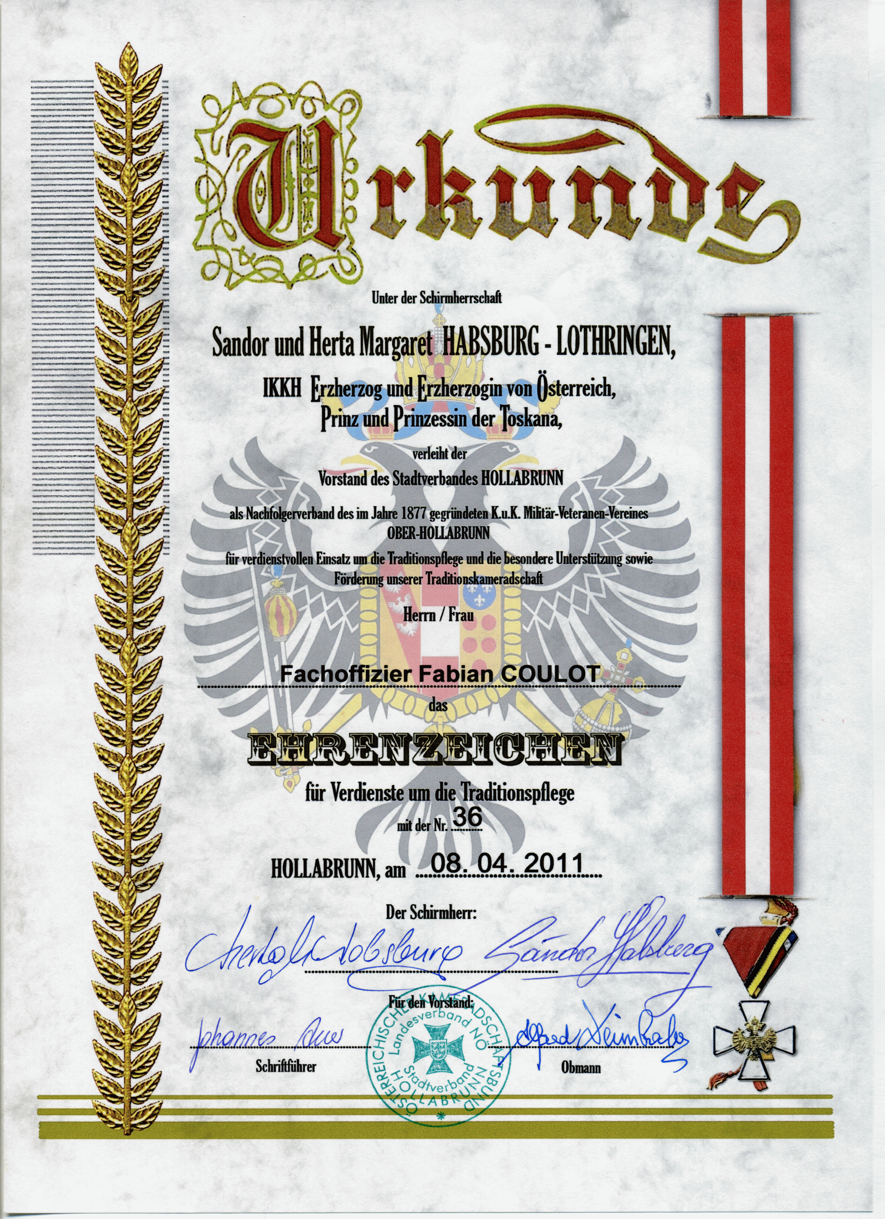 und für hervorragende Verdienste um die internationale Traditonspflege