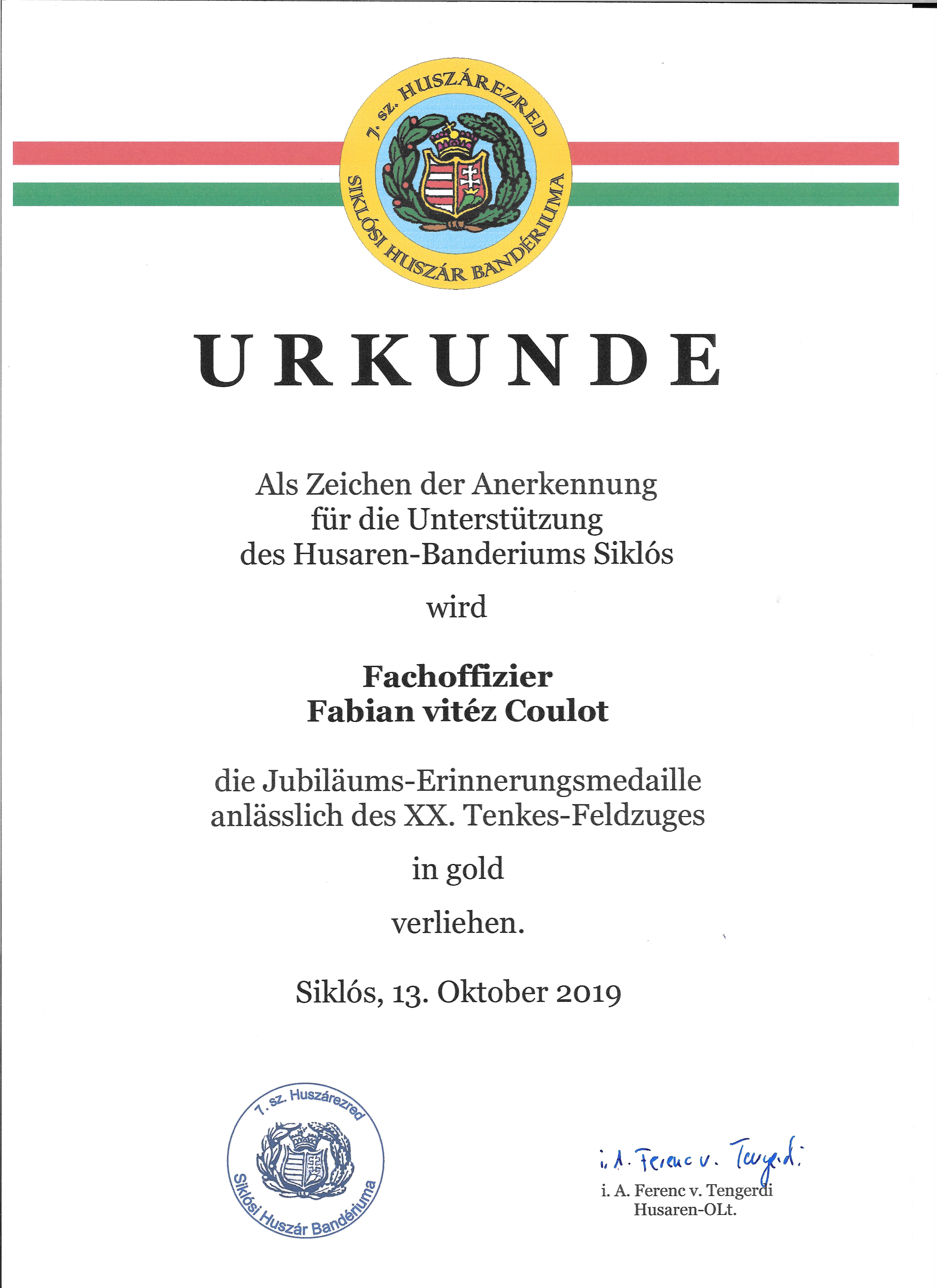 zerschlagen wurden. Gestiftet von der der MIKECZ (Husaren-und