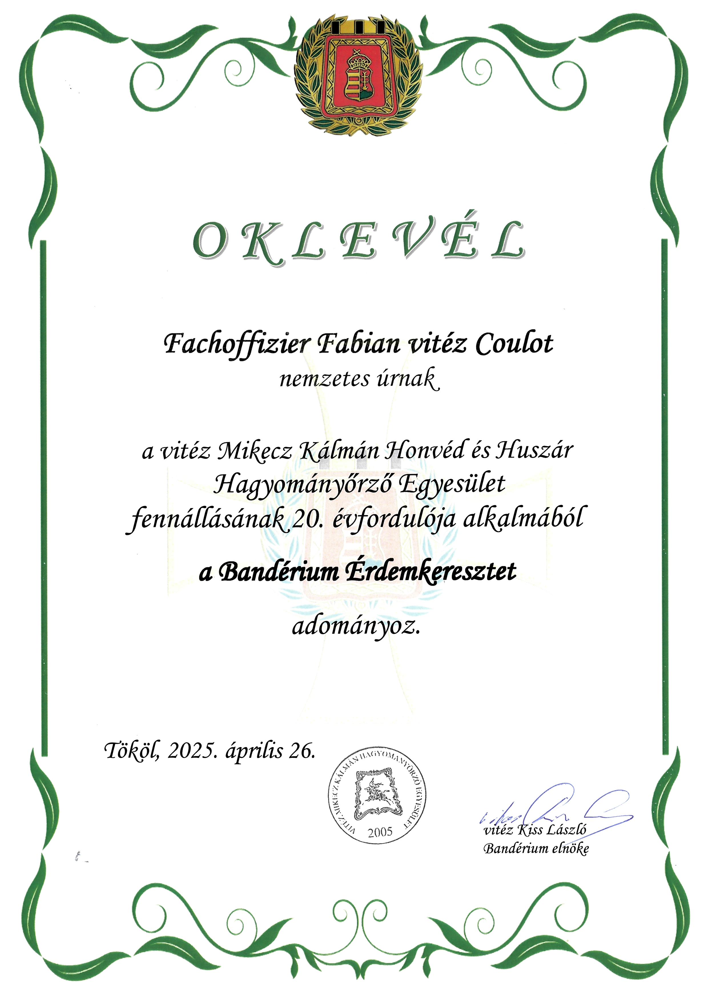 Verleihung des Verdienstkreuzes des vitéz Mikecz Kálmán
