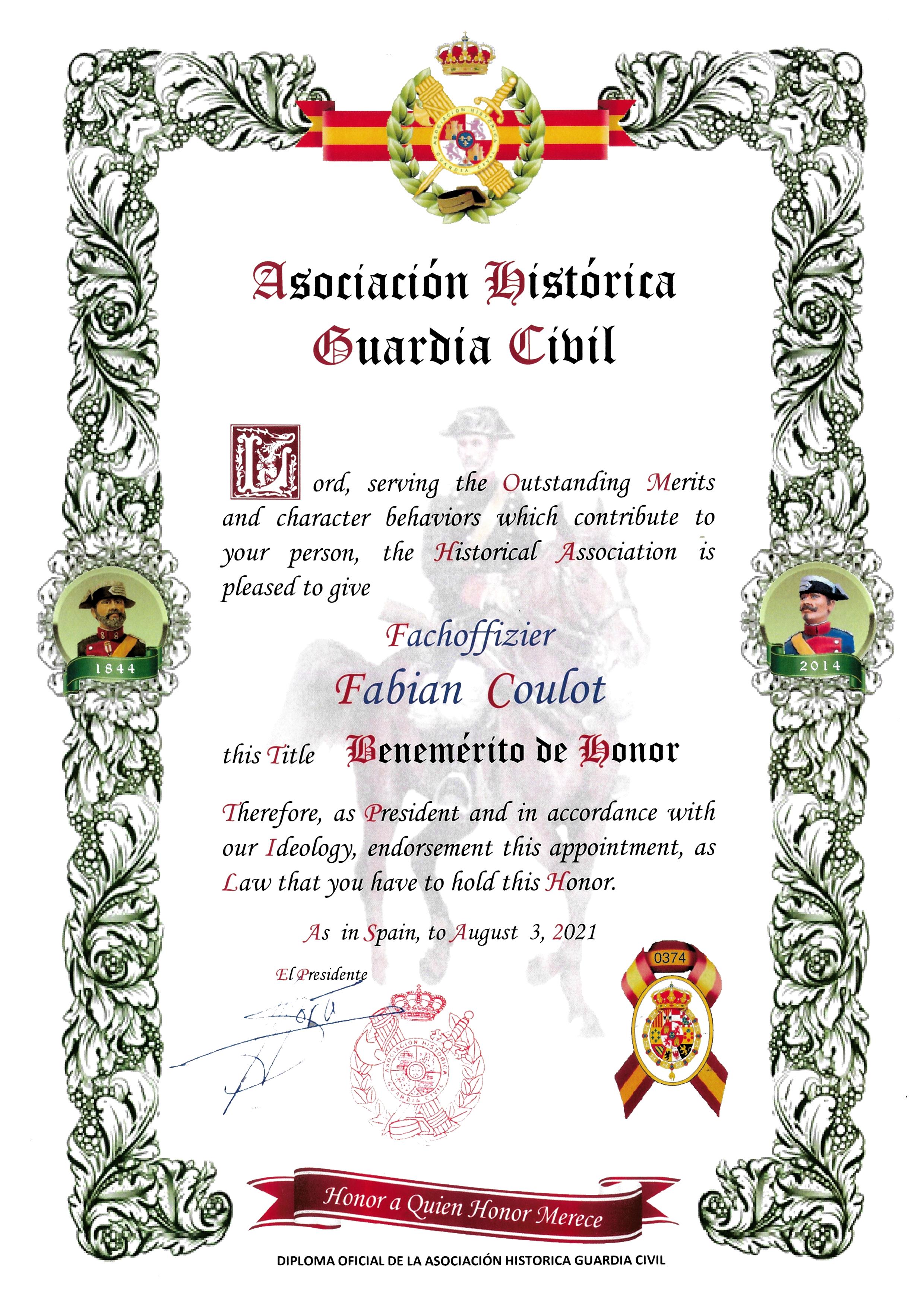 Verleihung der "Ehrenmedaille" der Asociacion Historica Guardia Civil