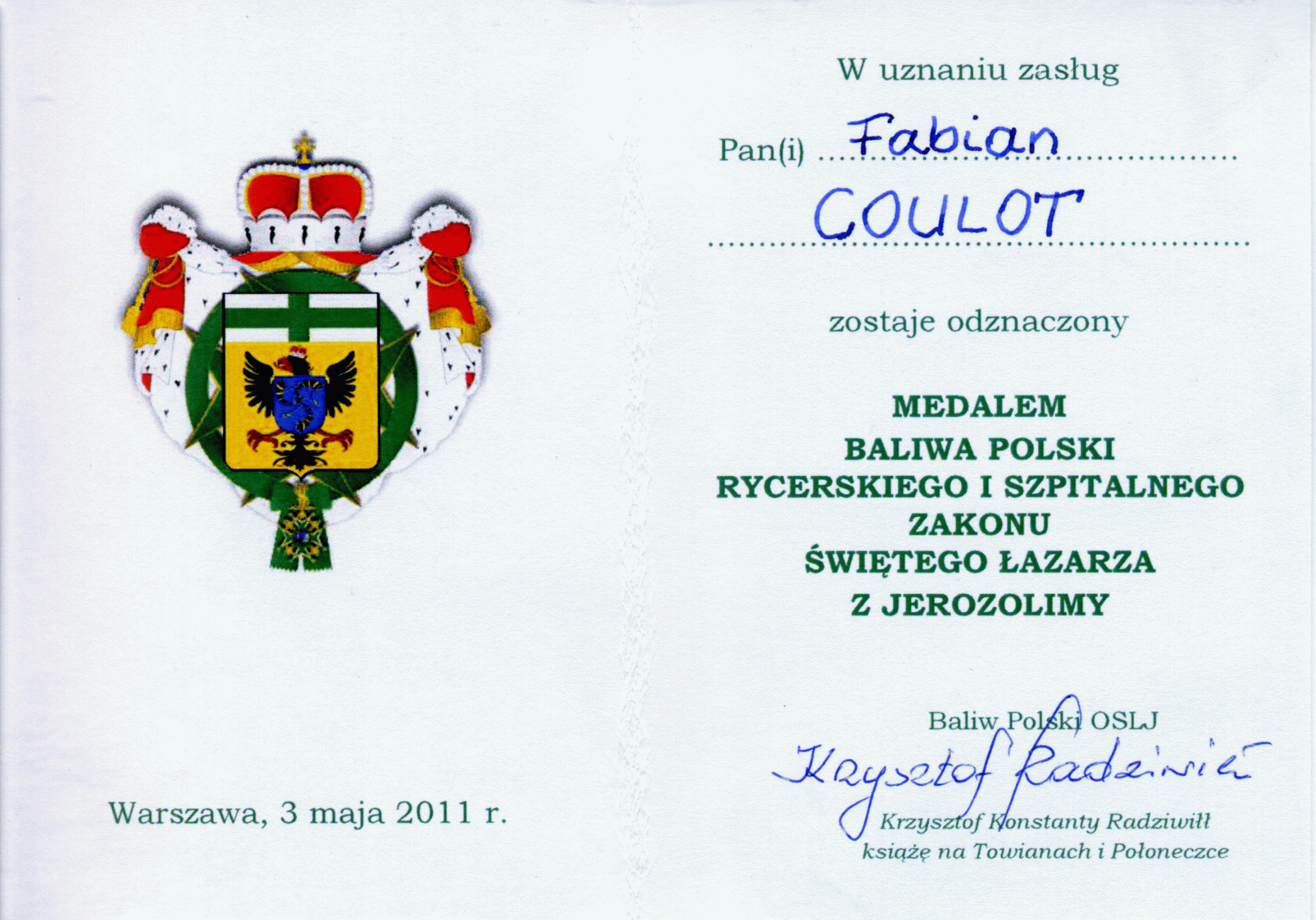 Kommandeur im Orden der Ritter des Heiligen Lazarus zu