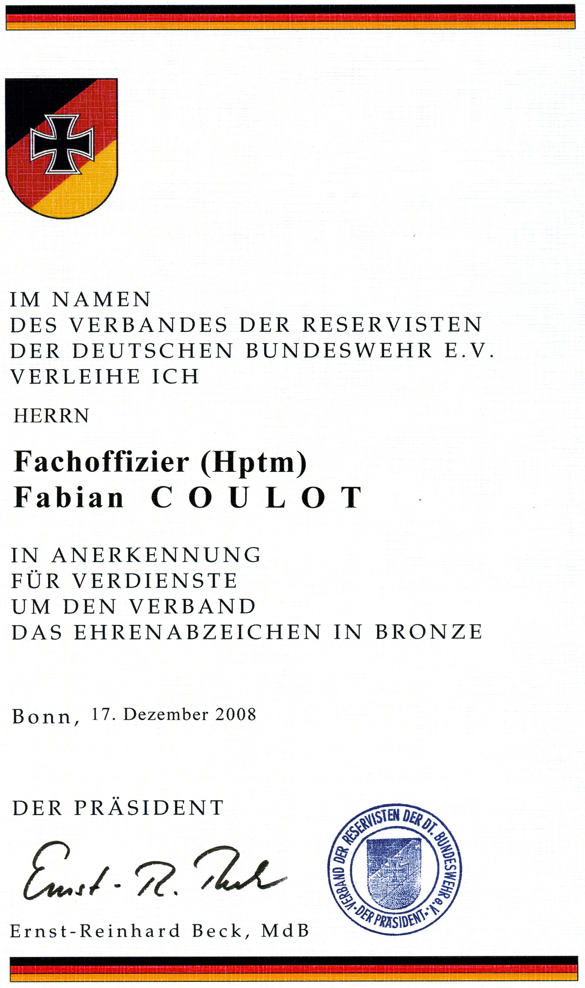 Verleihung der Medaille der Fédération Européenne Anciens des