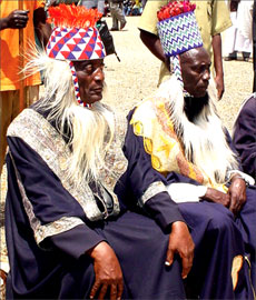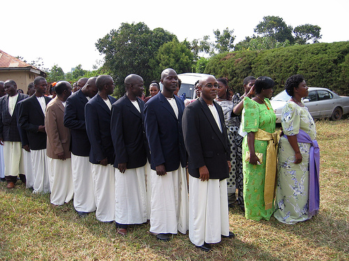 Stammesfürsten vom Königreich Toro "Kanzu" der traditionelle weisse Anzug der Männer