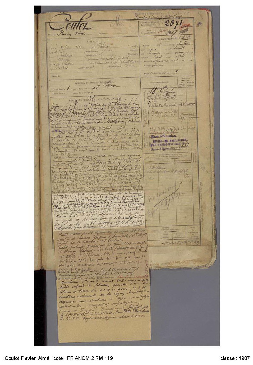 Flavien Aimé geboren am: 02.06.1887 in Palikao - Oran 2e Groupe d'Artillerie de Campagne d'Afrique Certificate de bonne conduite: accordé |