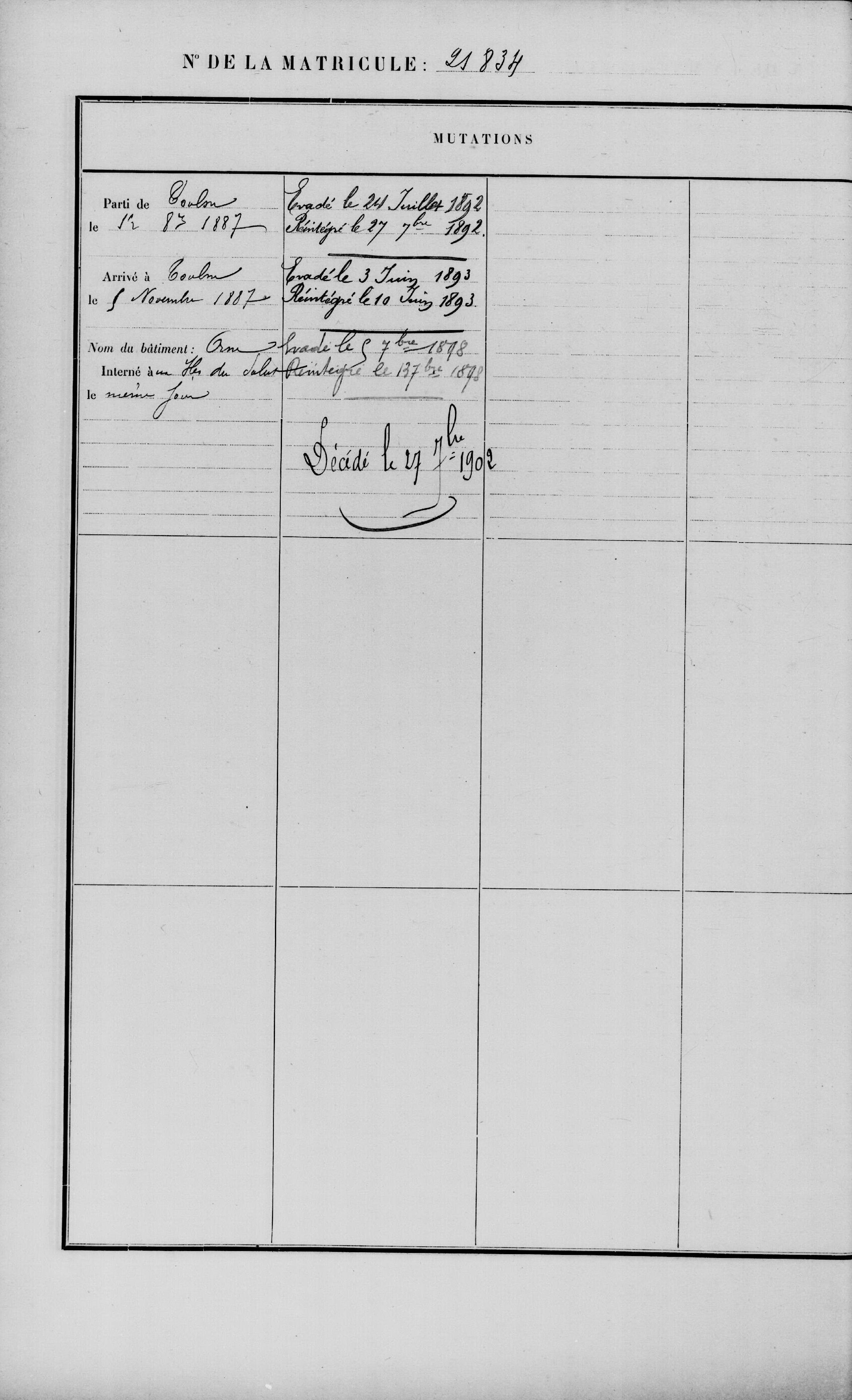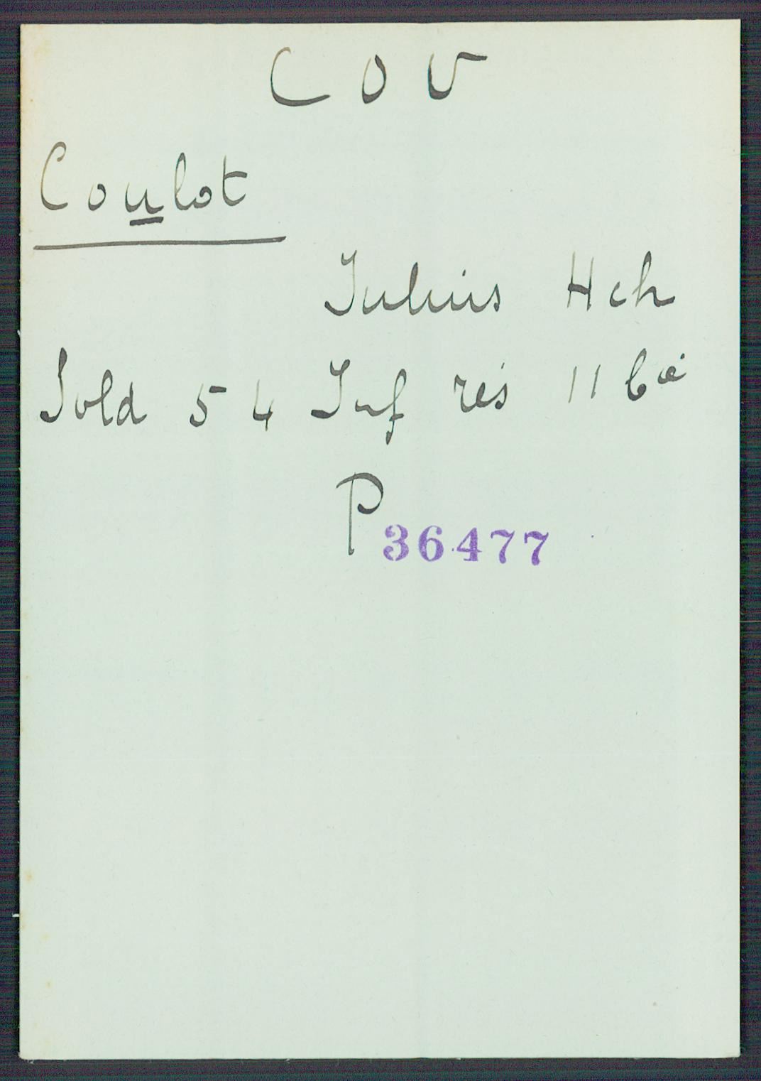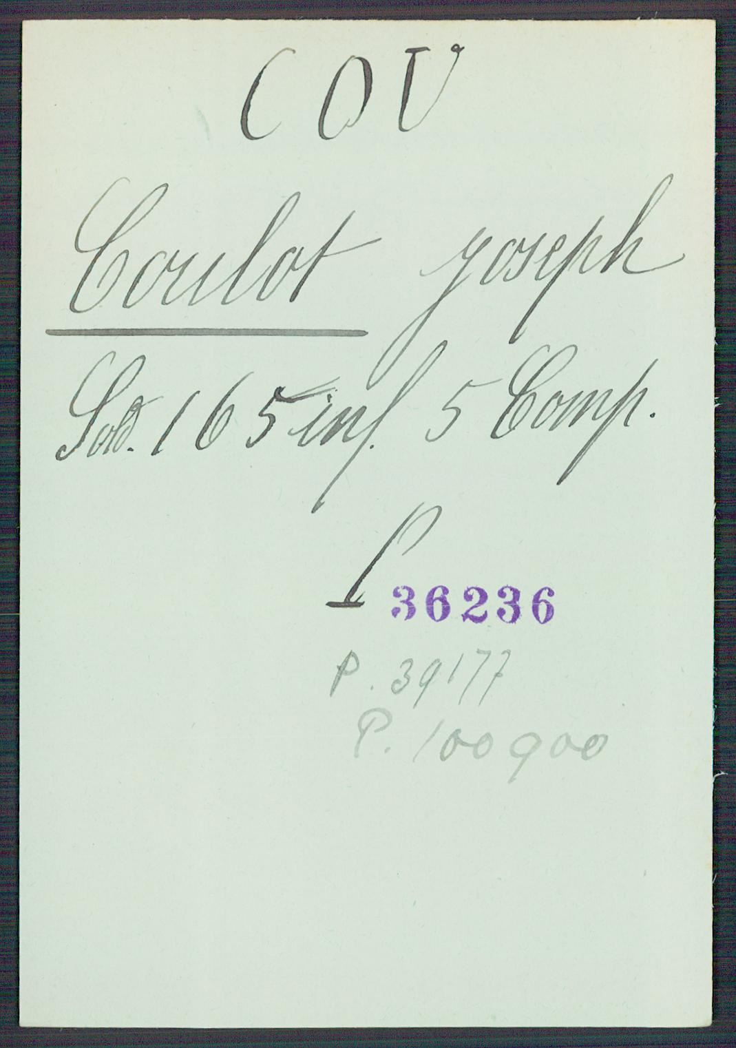 Soldat Julius Hch COULOT geb. 29.04.1870 in Besançon 54e Régiment d'Infanterie, 11e Compagnie 05.04.1916 im Front,-und Festungslazarett Germersheim |