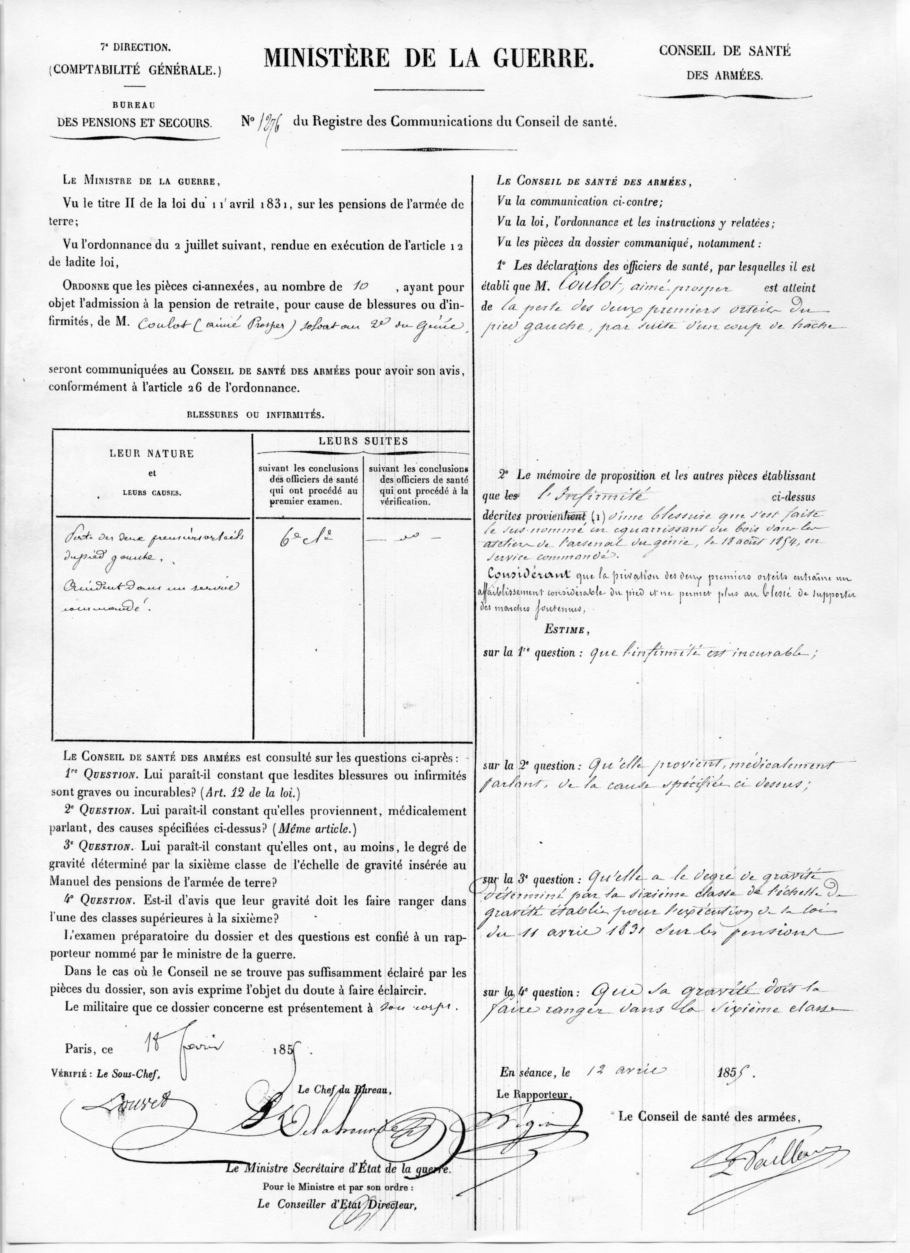 COULOT Louis Benjamin, 17e Régiment de Ligne, gequetschte Wunde