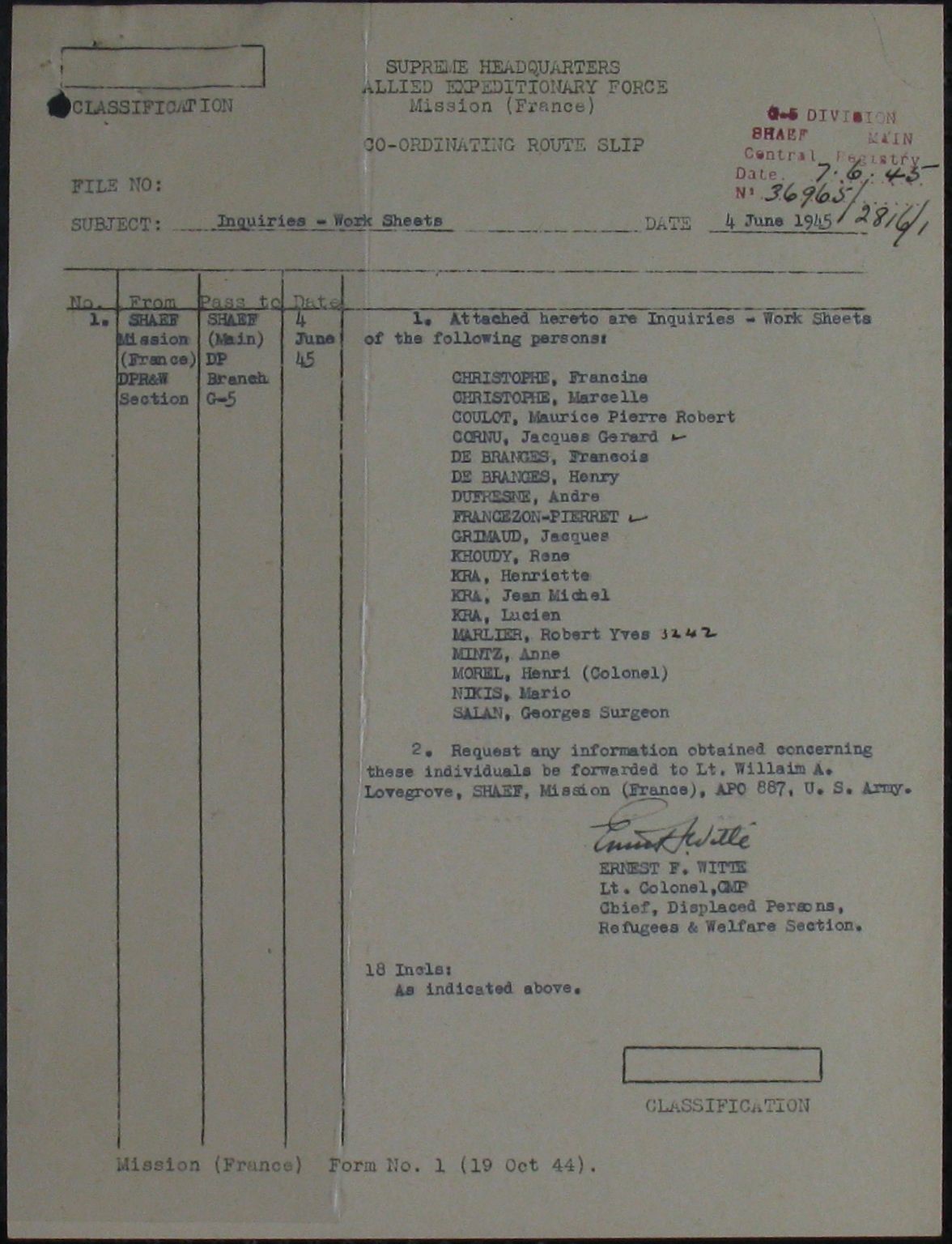| Soldat 2e classe | COULOT | René | 05.11.1911 | Dijon | 29e R.I. | keine Angaben | keine Angaben | ||