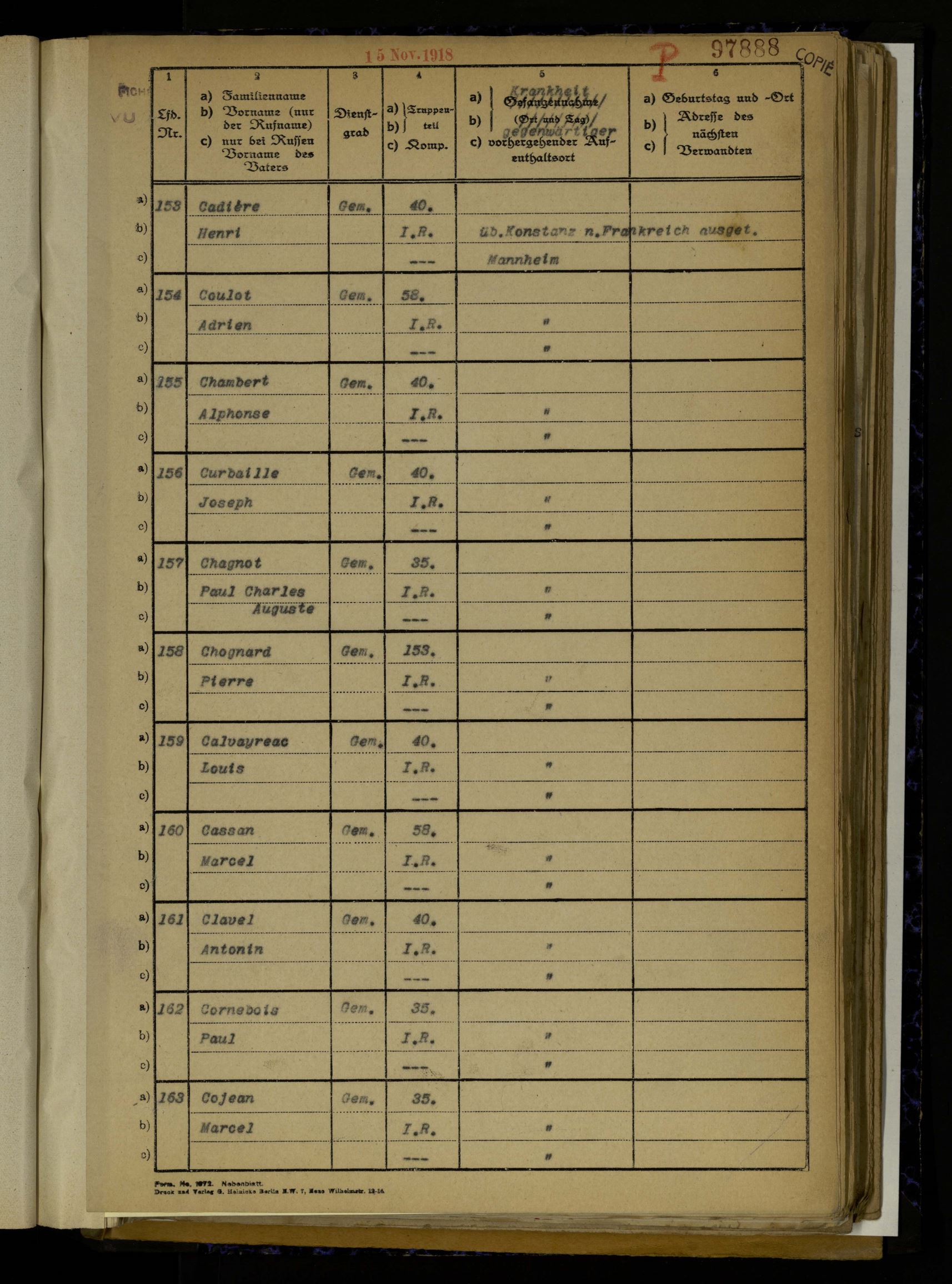 Soldat Adrien COULOT 58e Régiment d'Infanterie Gefangenenlager Mannheim 15. 11.1918 über Konstanz nach Frankreich ausgeschafft |