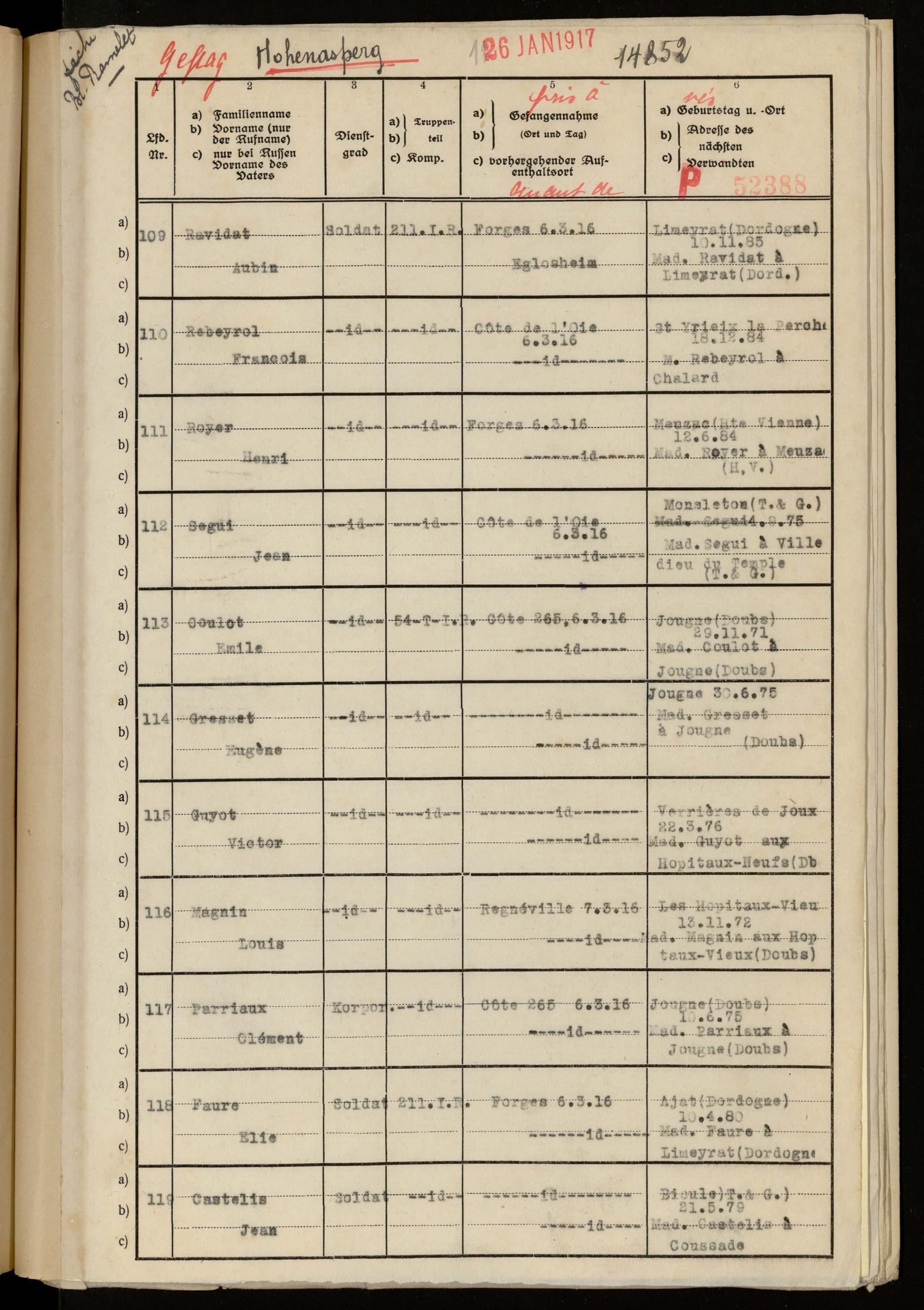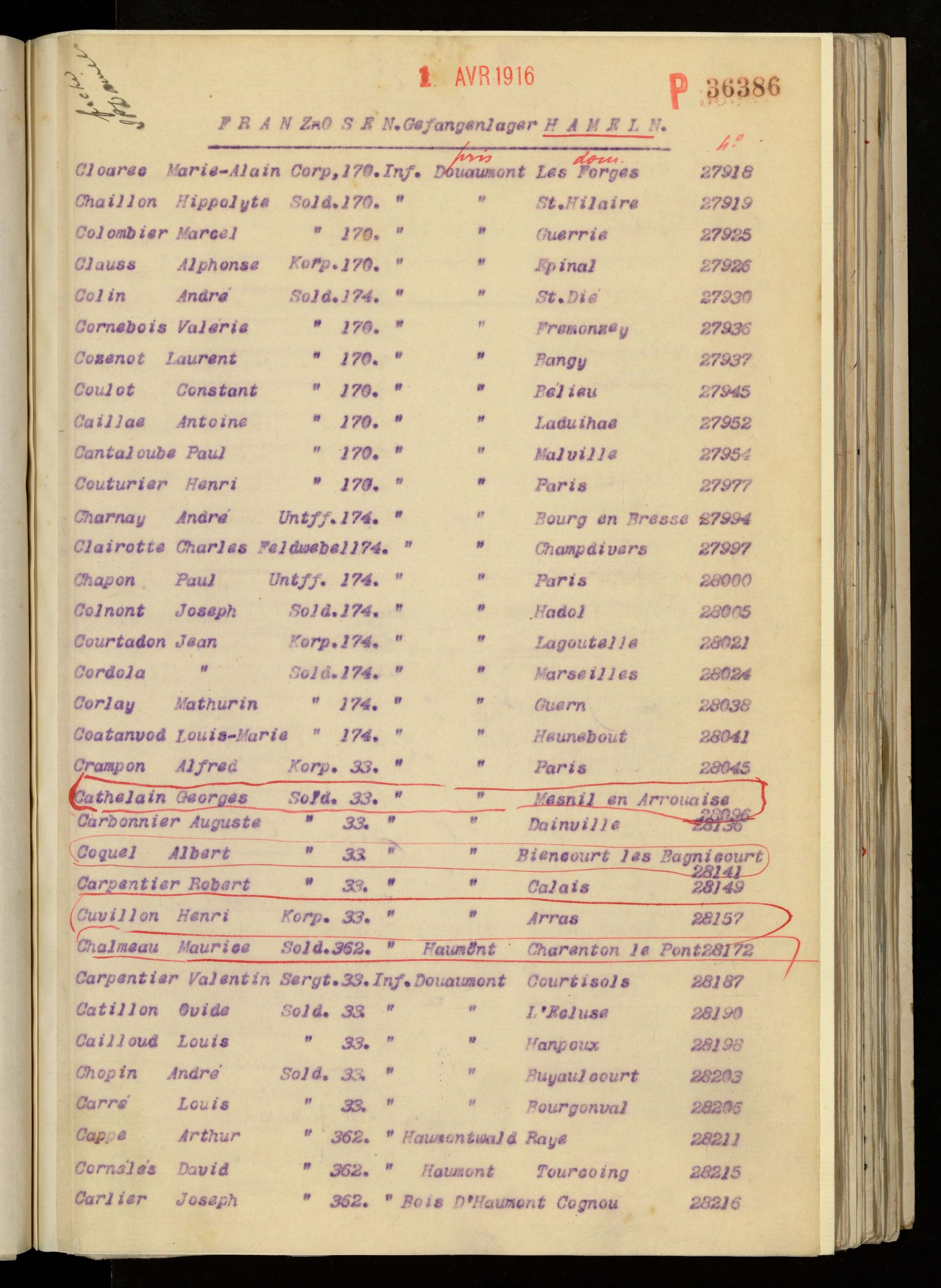 Soldat Constant COULOT 170e Régiment d'Infanterie 01.04.1916 Gefangennahme in Douaumont (Verdun) Französisches Gefangenenlager in Hameln |