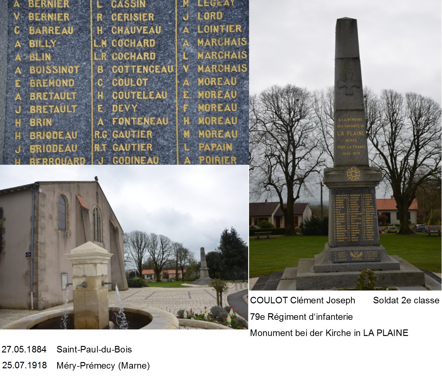 | Soldat 1e classe | COULOT | Clément | 12.03.1914 | La Plaine | 24e R.I. | keine Angaben | keine Angaben | ||