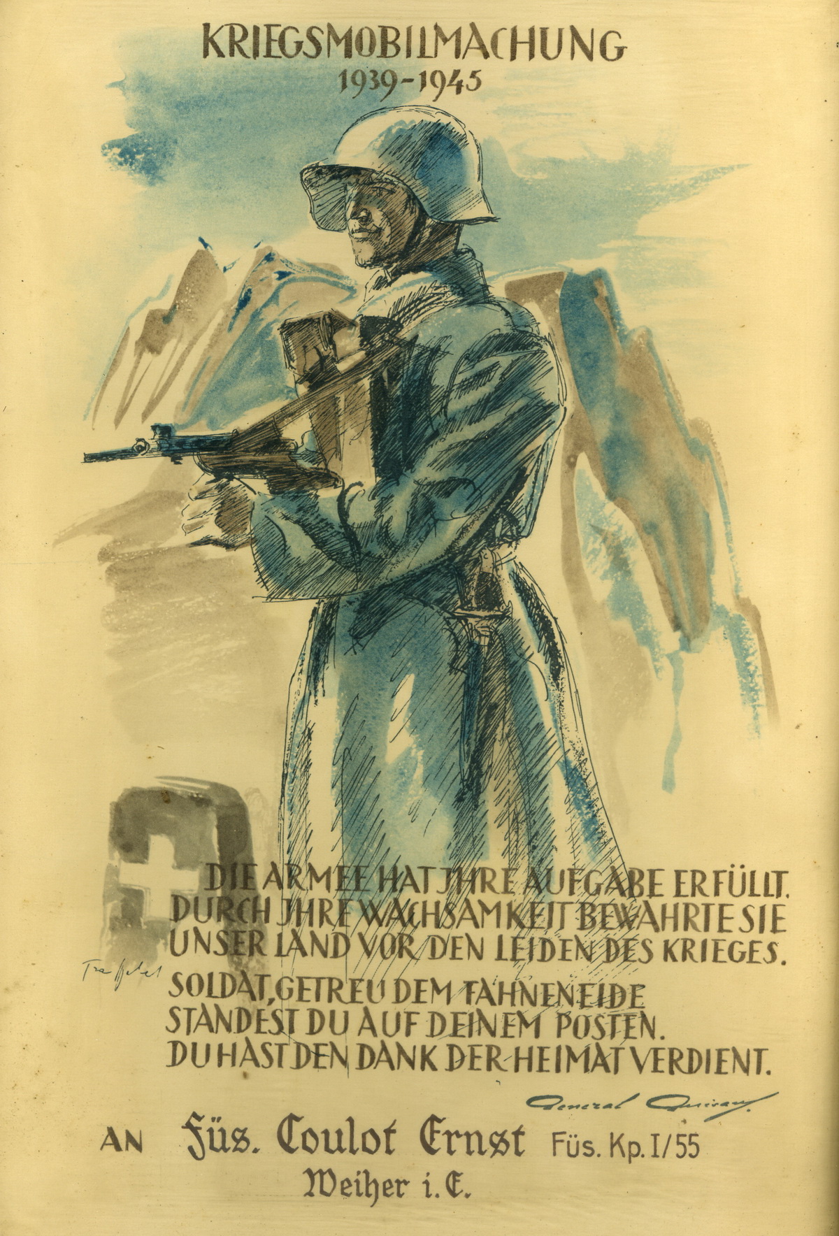 Füsilier COULOT Ernst Emil geb. 17.08.1925 gest.28.10.1996 Dank von General Henri Guisan, Oberbefehlshaber der Schweizer Armee während der Kriegsmobilmachung 1939-1945 |