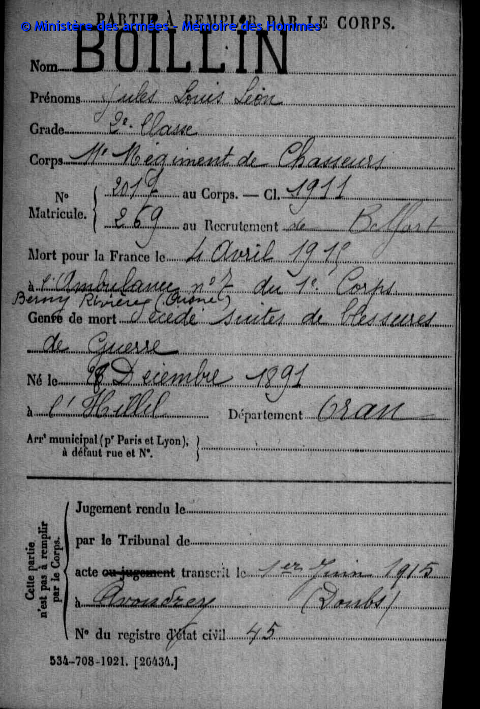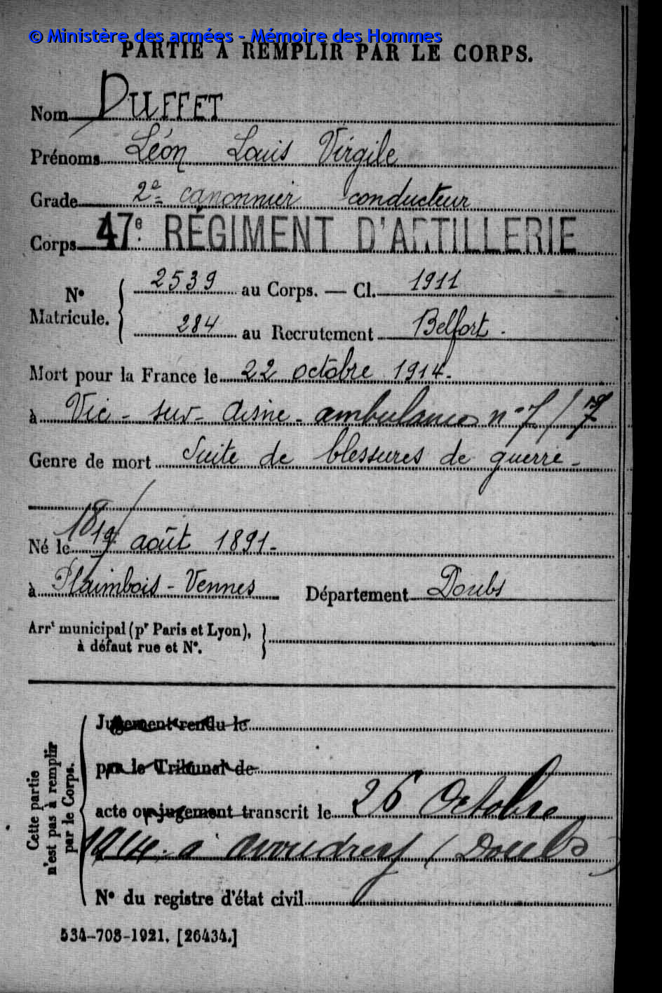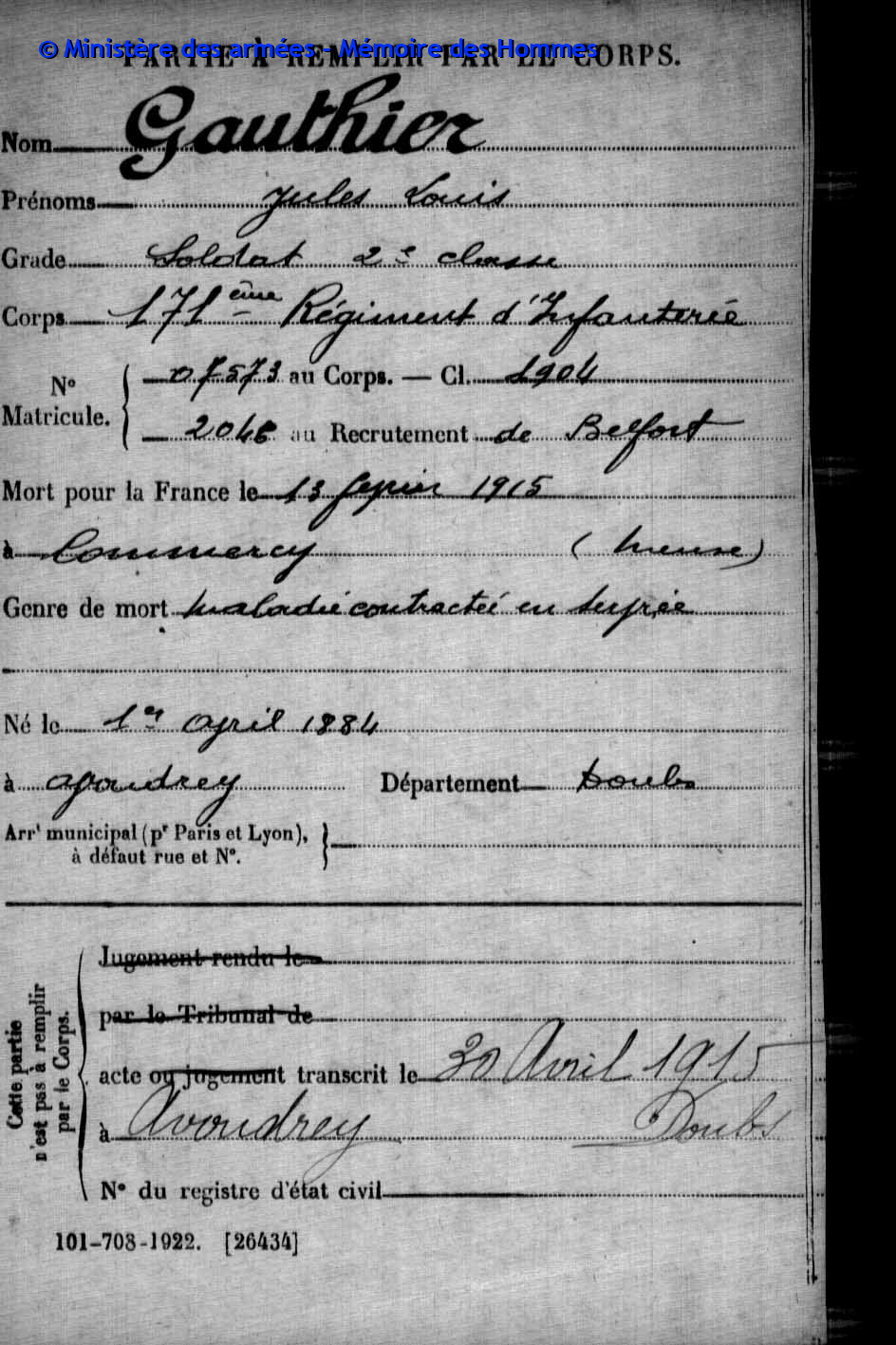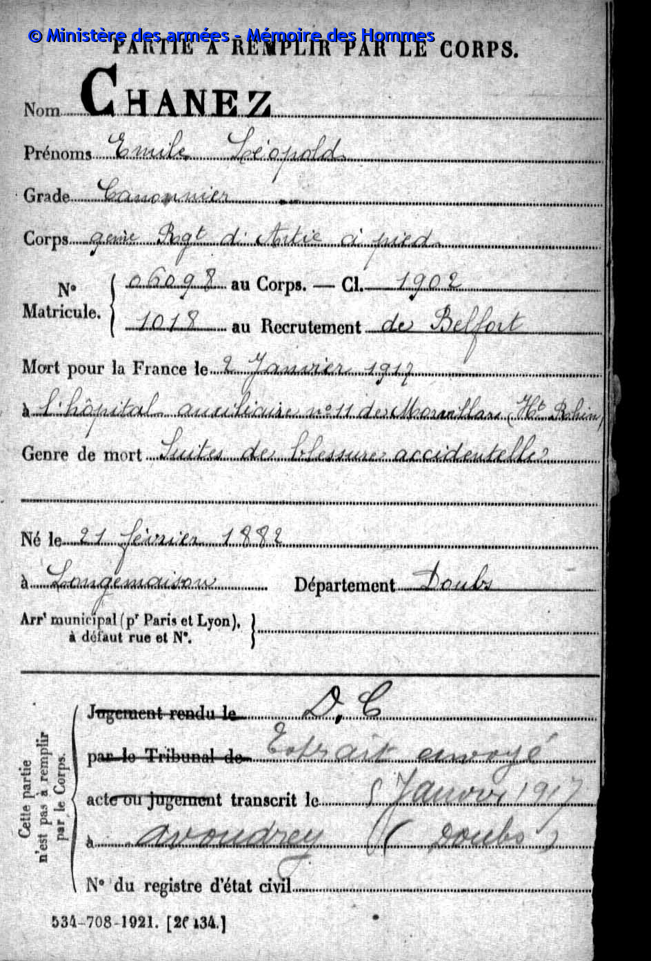 13Km2 grosse Gemeinde im Departement Doubs (F) mit 915 Einwohner. Auf dem Kriegerdenkmal befindet sich 25 Namen von gefallenen Soldaten, 17 davon sind mit Fabian Coulot verwandt.