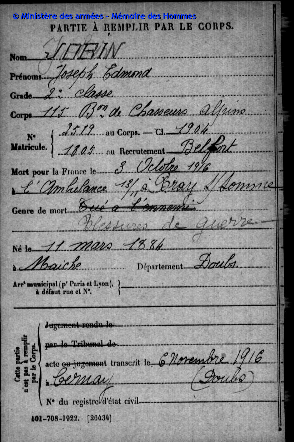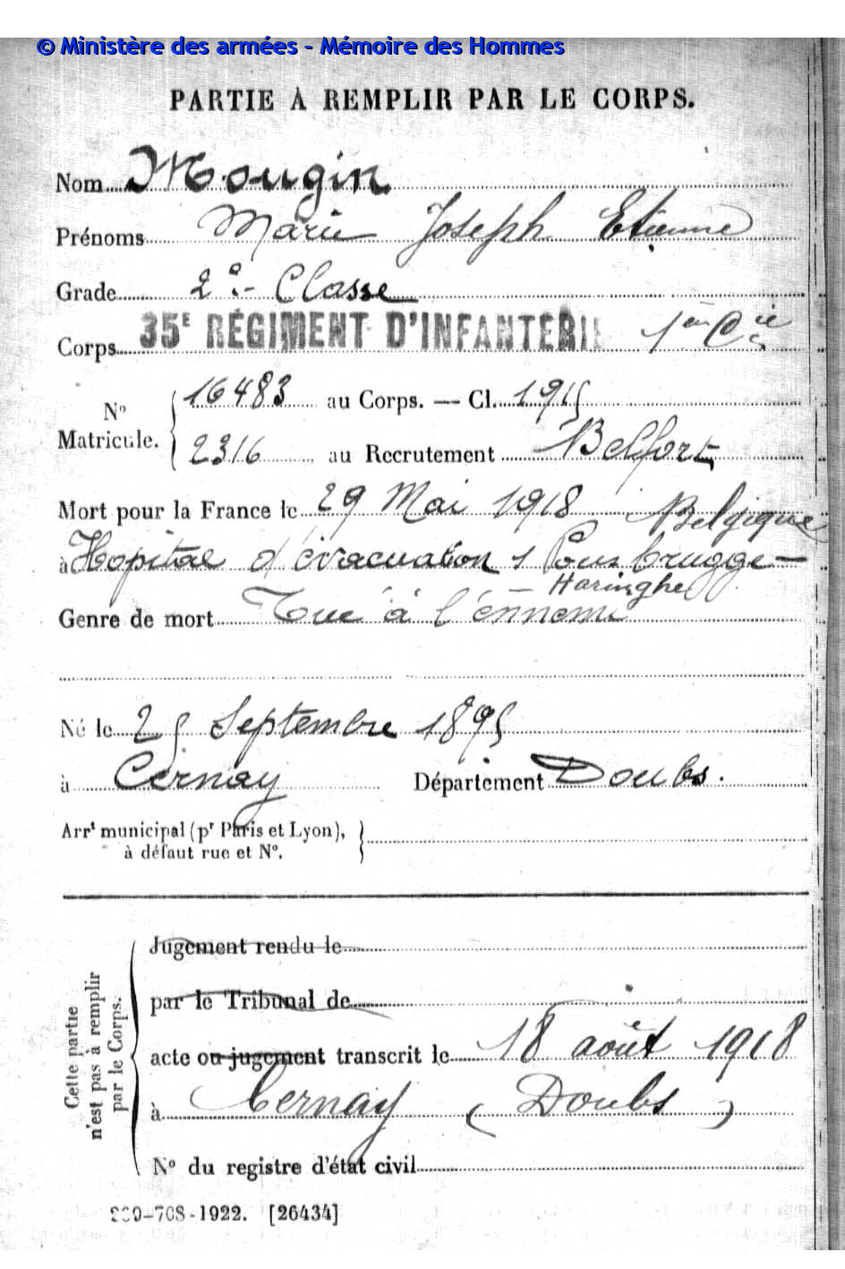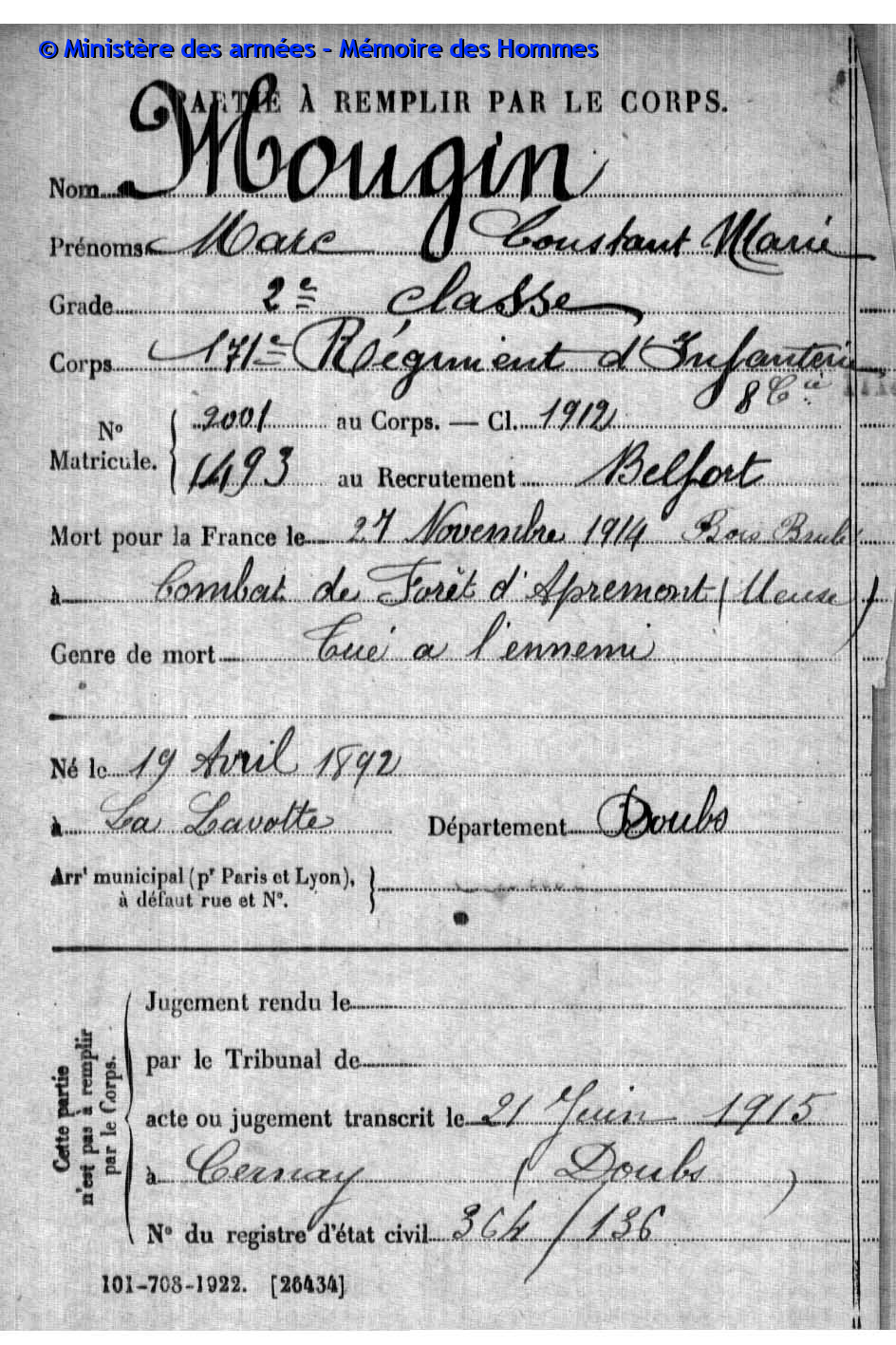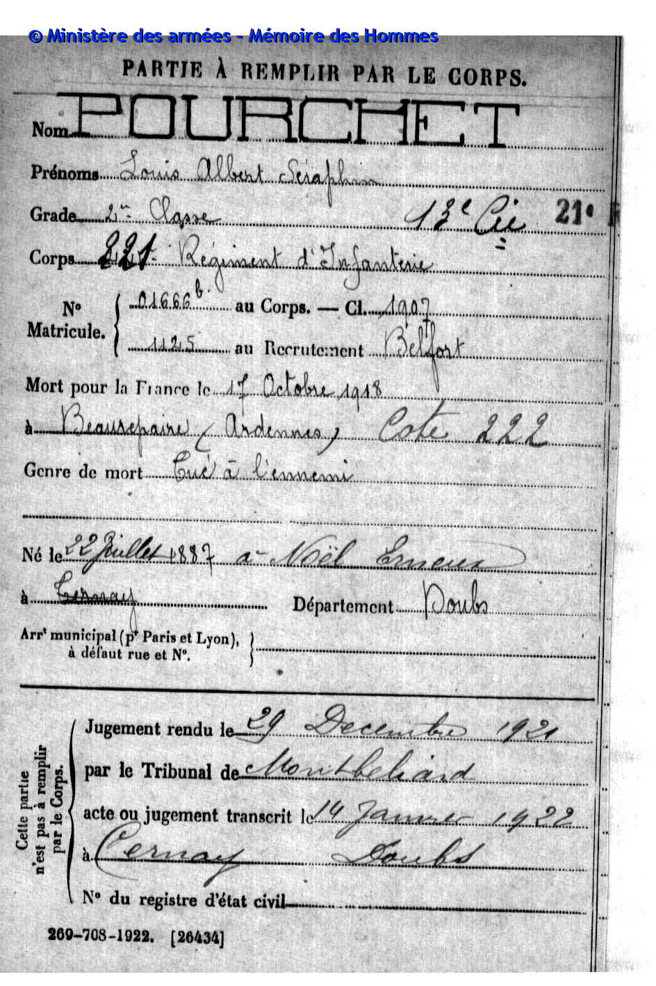 Gefallen auf Höhe 222 in Termes - Adennes (F)