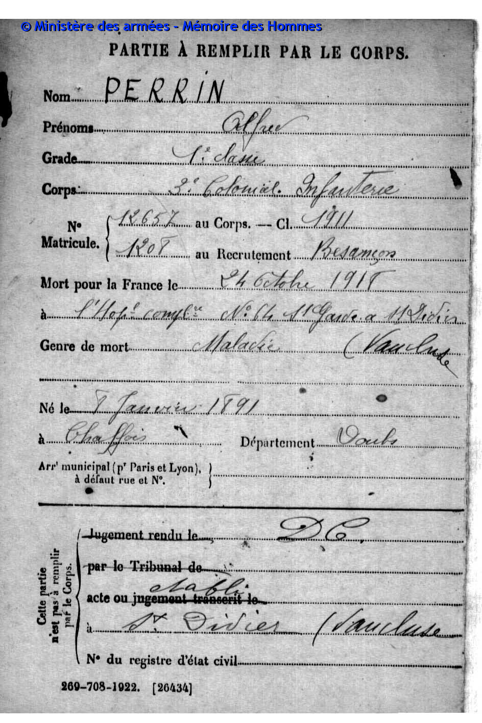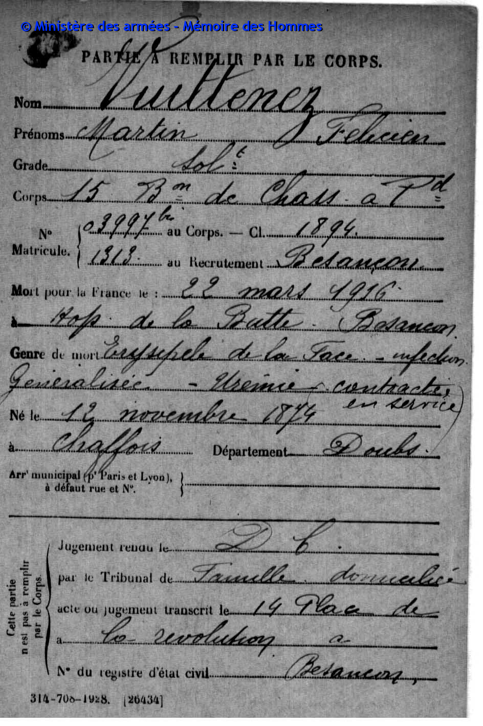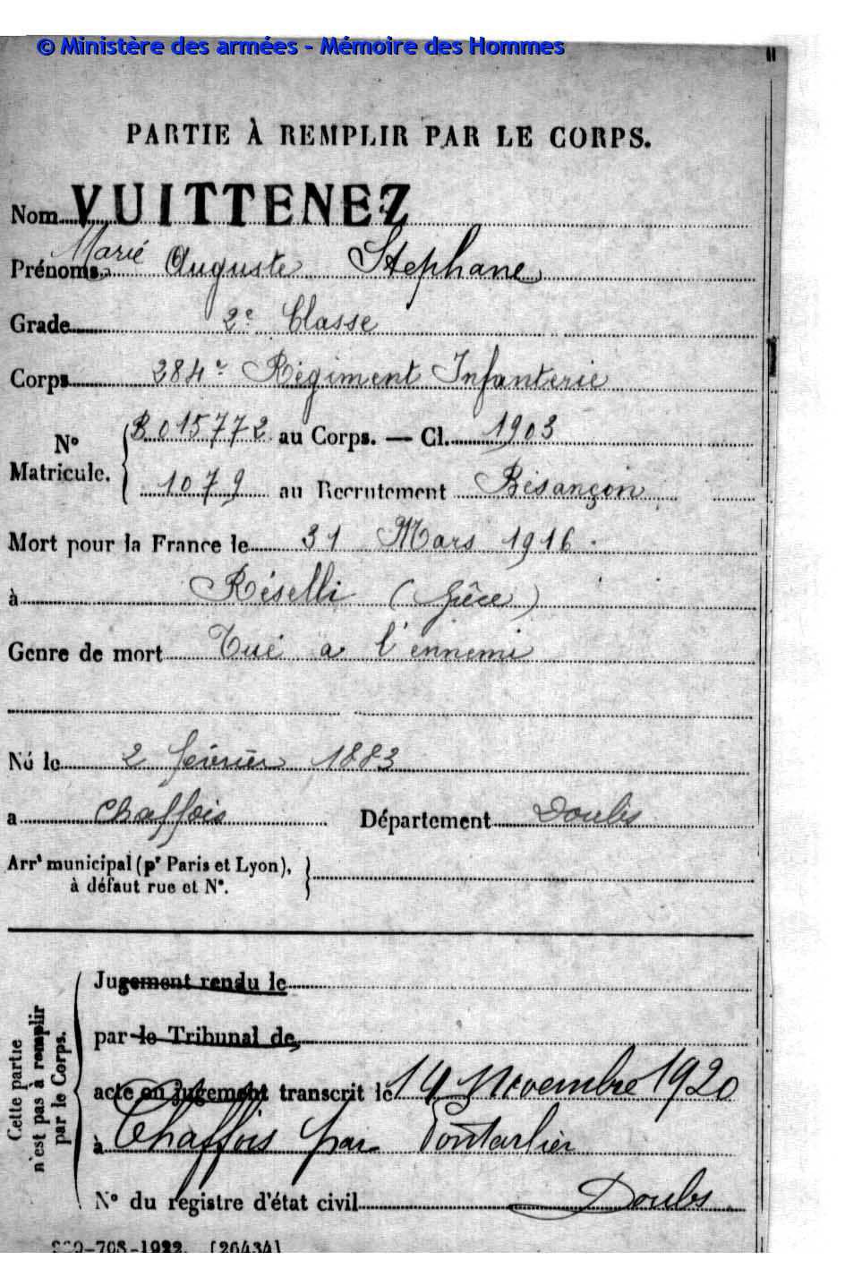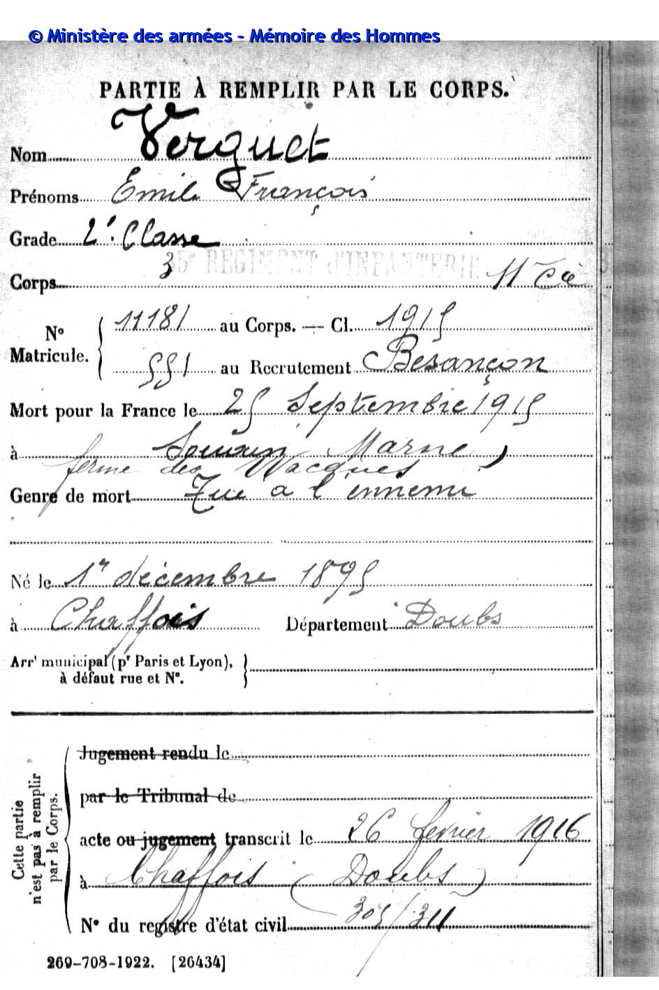 | Soldat PECCLET Louis Félix 07.08.1876 - 28.04.1915 72ème Régiment d'Infanterie Gefallen in Les Eparges - Meuse (F) |