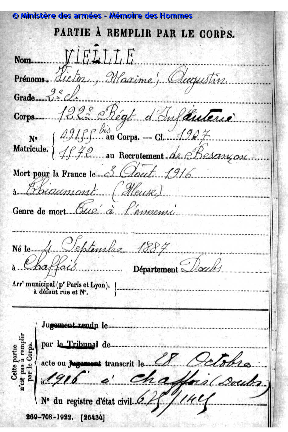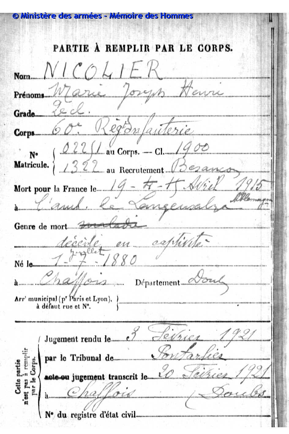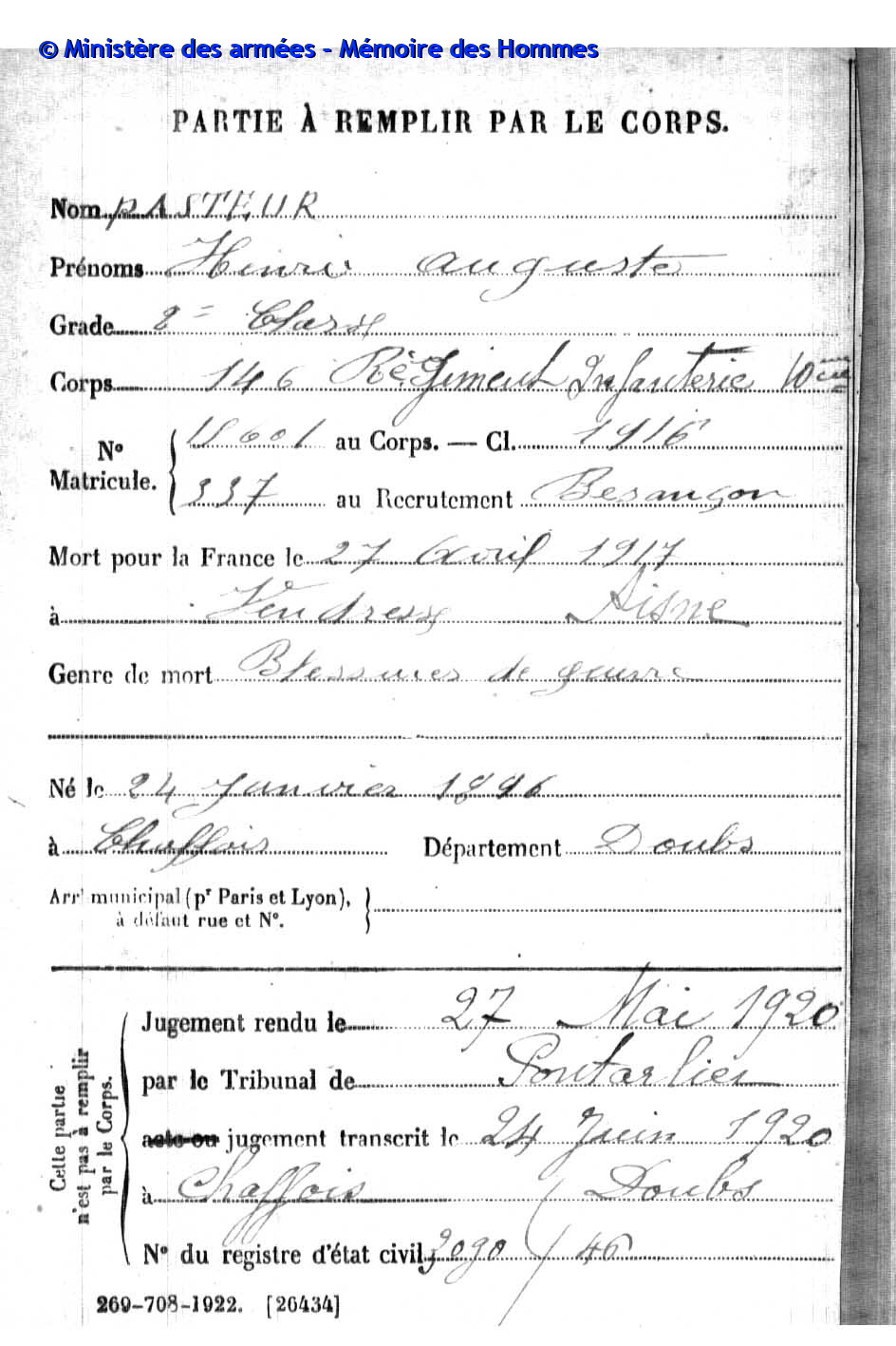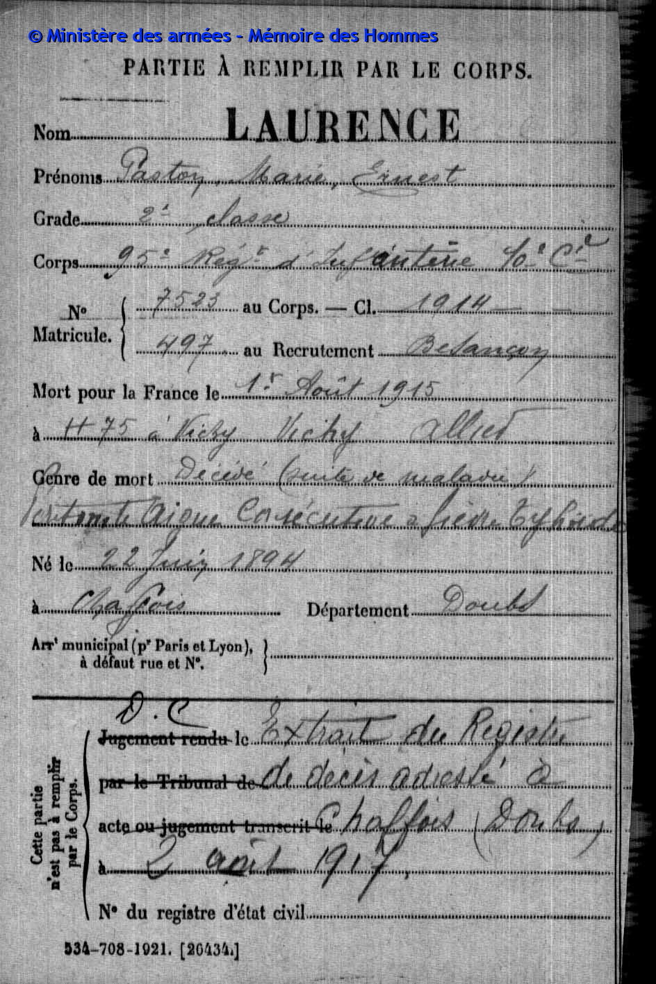 | Soldat PECCLET Louis Félix 07.08.1876 - 28.04.1915 72ème Régiment d'Infanterie Gefallen in Les Eparges - Meuse (F) |