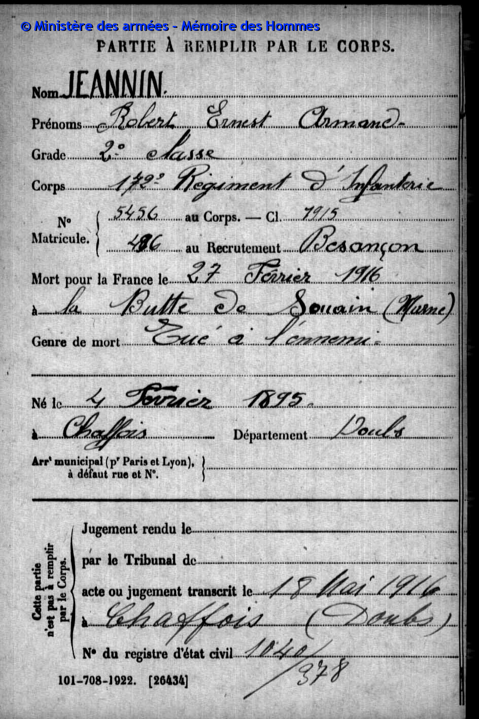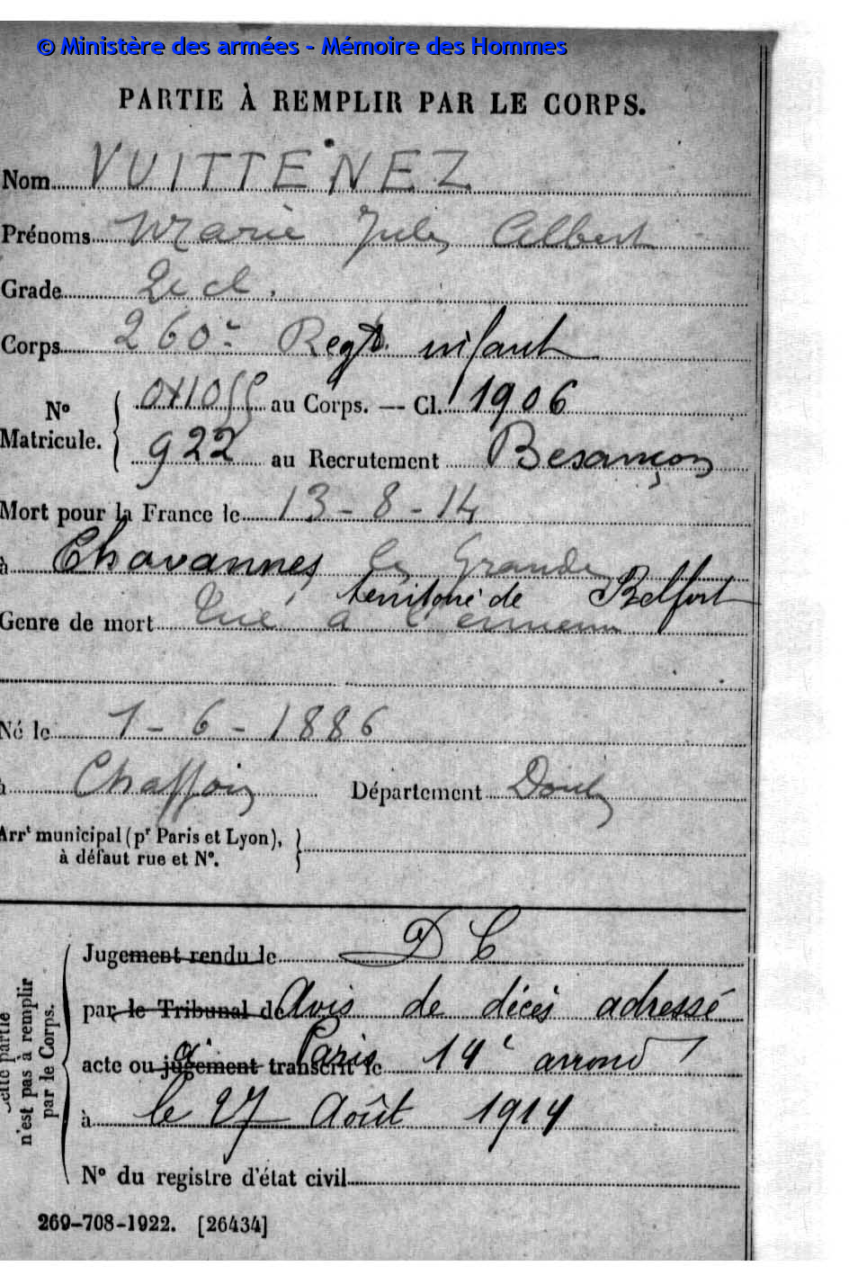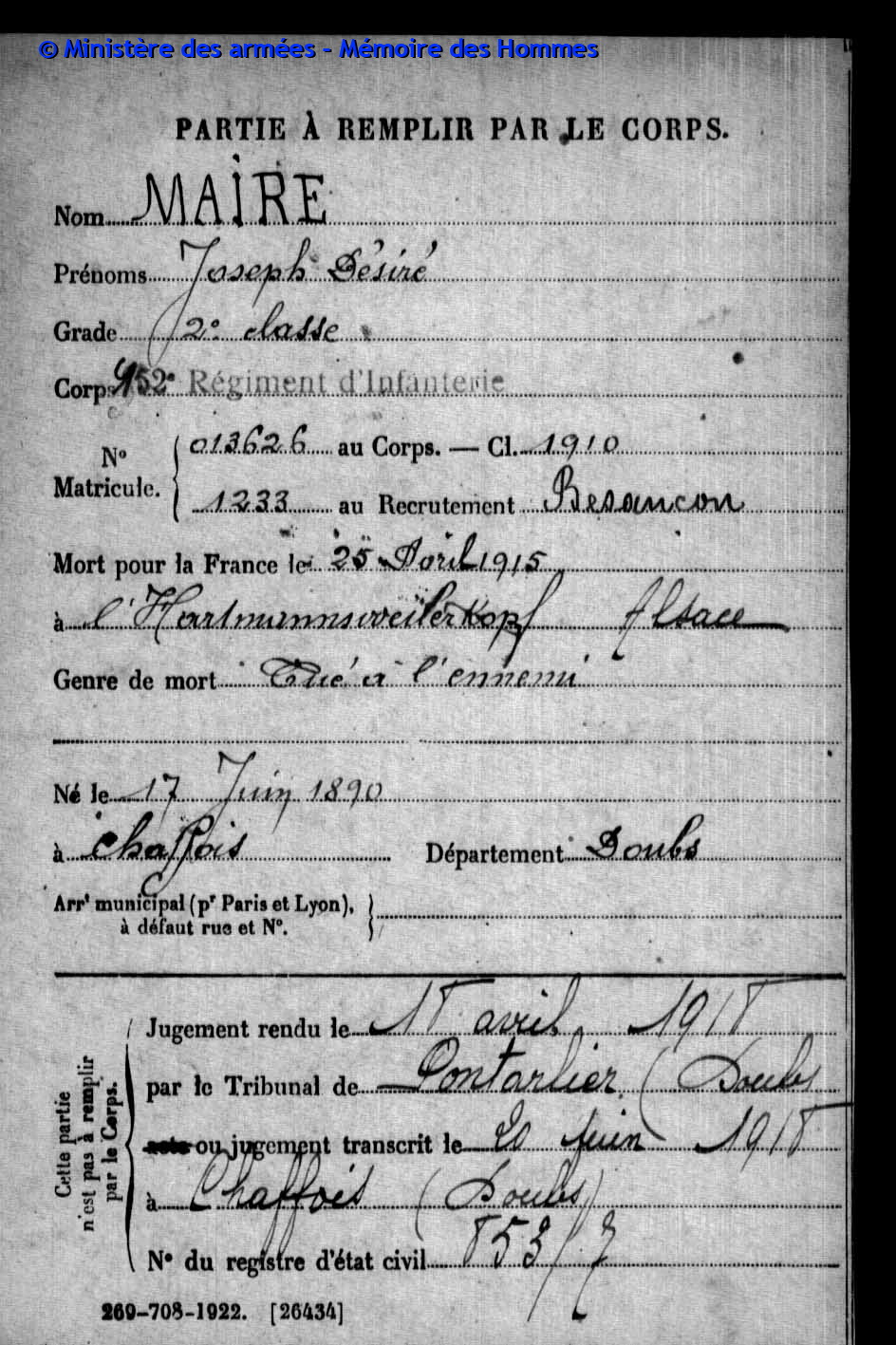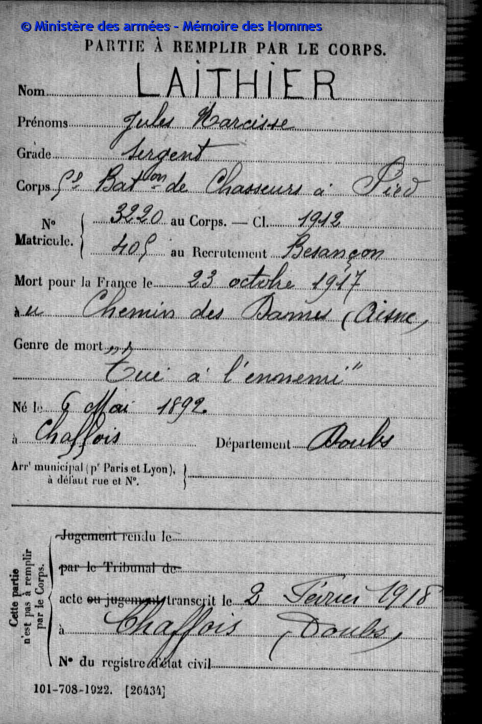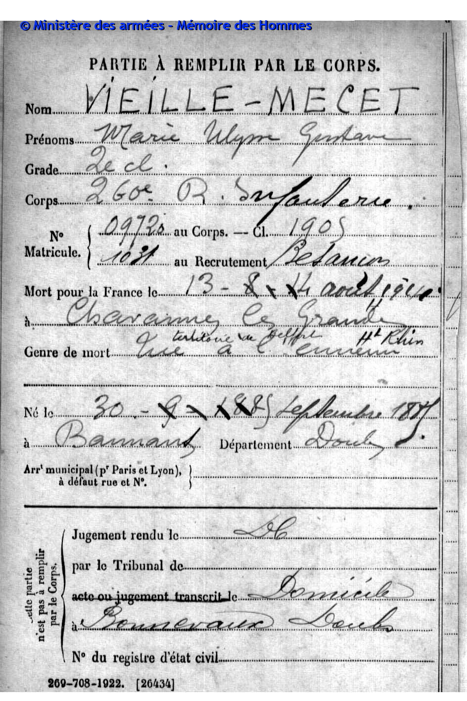 | Chasseur GRANDVOINNET Paul Louis Joseph Arsène 15.11.1908 - 18.06.1940 26ème Bataillon de Chasseurs à Pied Gefallen in Lion-en-Sullias (F) |
