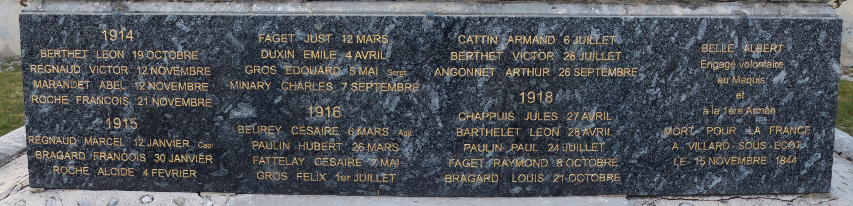 23,87 Km2 kleine Gemeinde mit 525 Einwohner im Departement Doubs (F). Von den 24 Namen auf dem Kriegerdenkmal der Gemeinde, sind 22 mit Fabian Coulot verwandt.