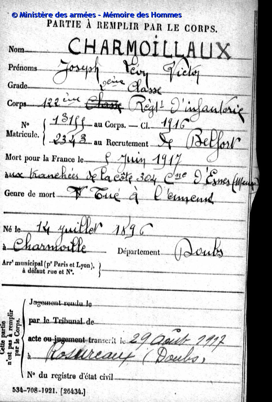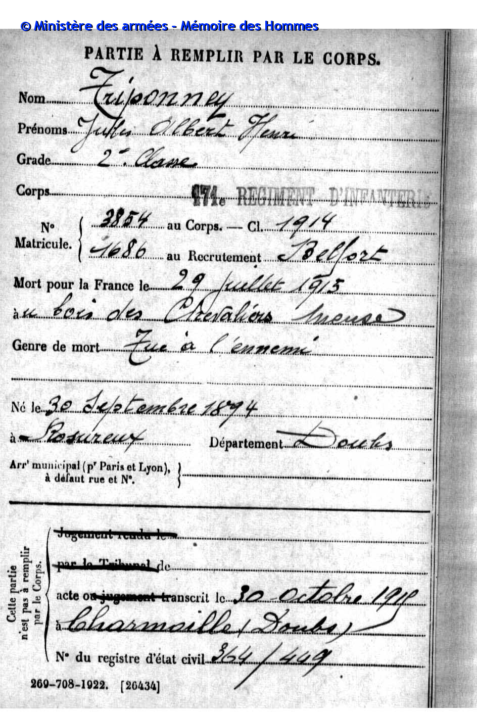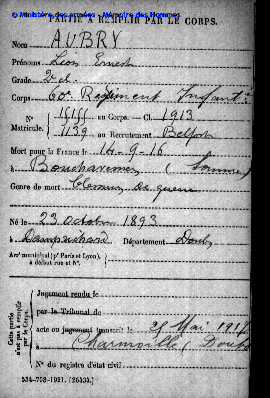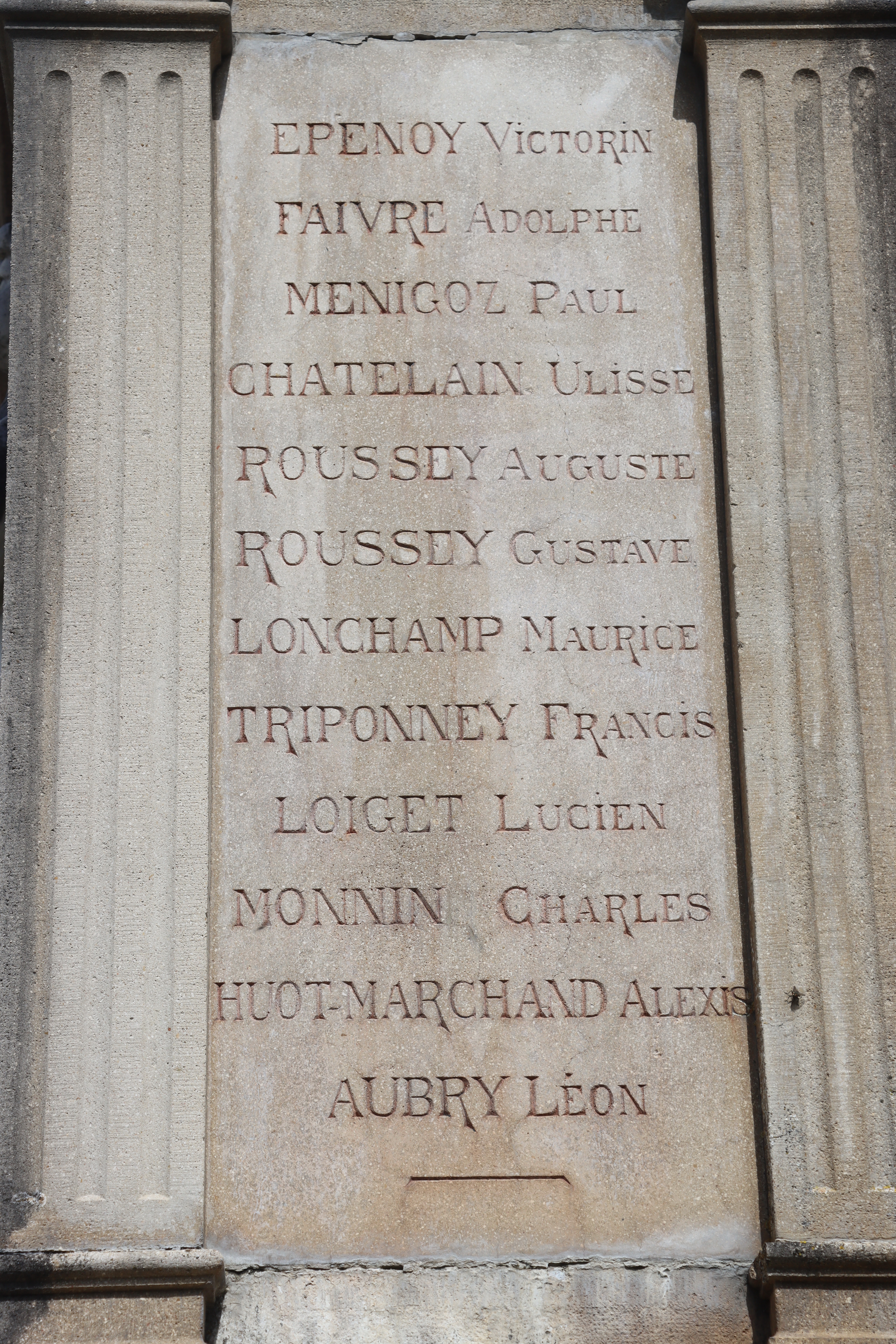 In der 10,14 Km2 grossen Gemeinde mit 323 Einwohner im Departement Doubs (F) befinden sich 27 Namen auf dem Kriegerdenkmal des Dorfes