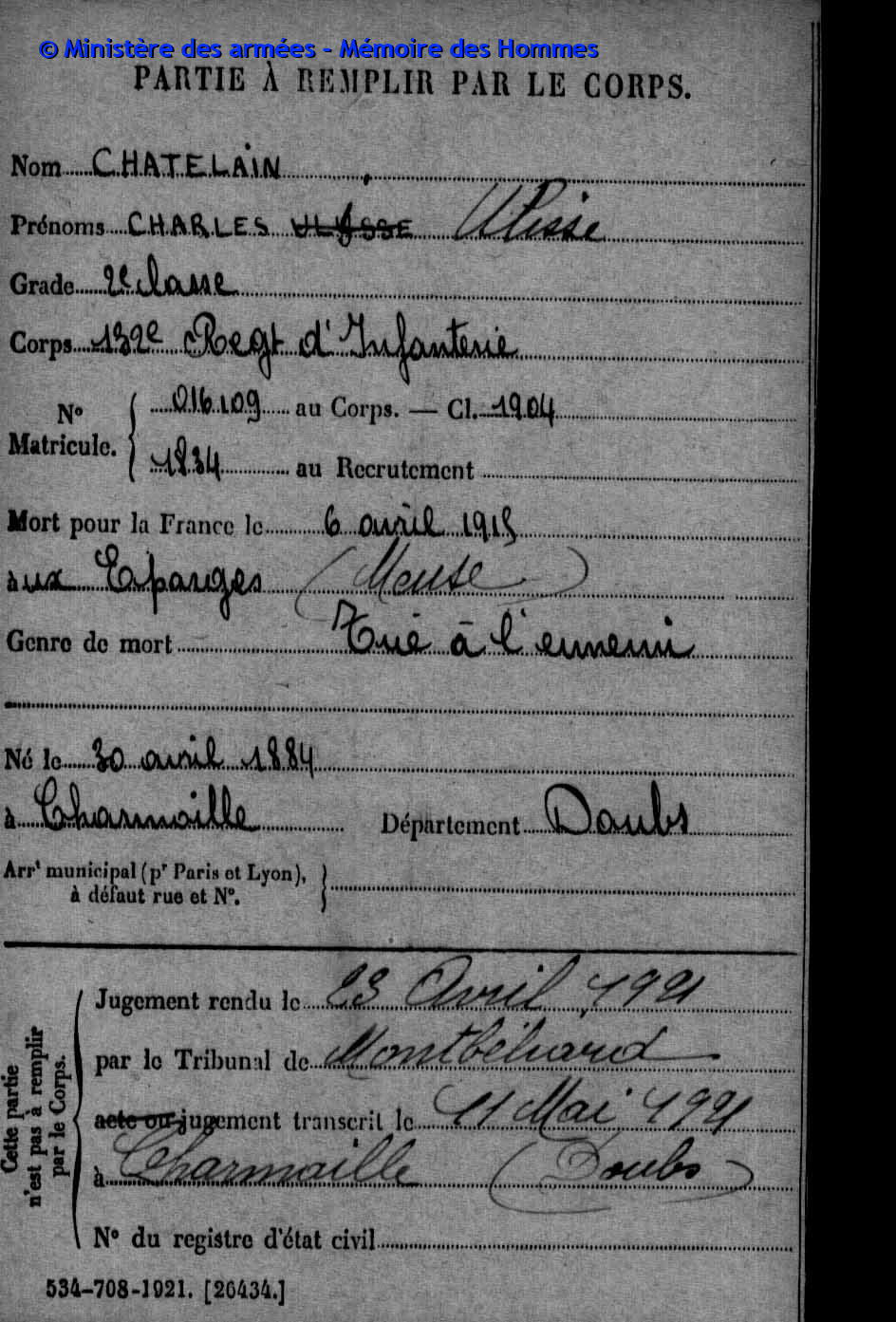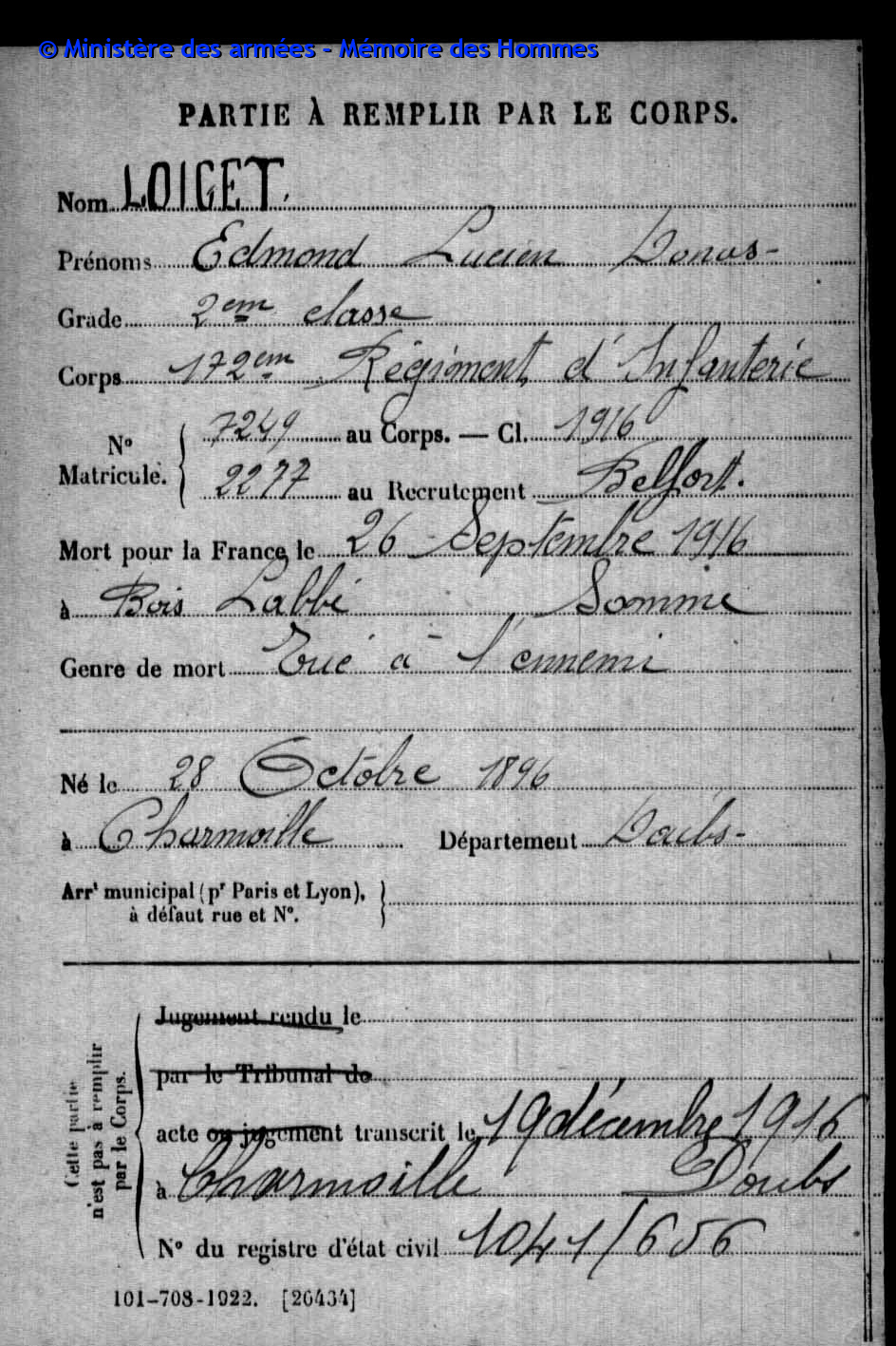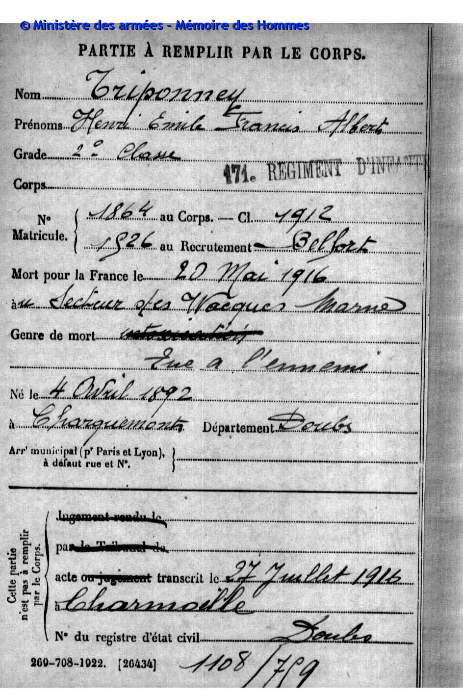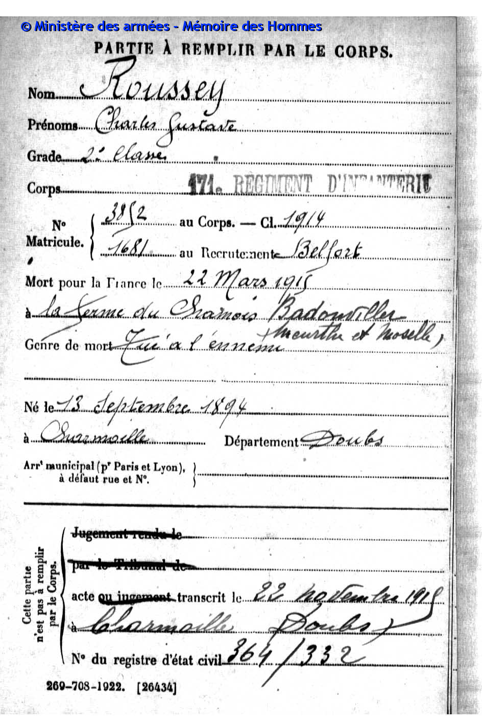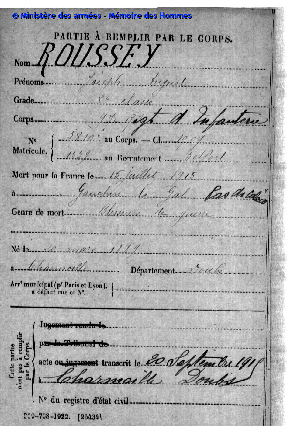 In der 10,14 Km2 grossen Gemeinde mit 323 Einwohner im Departement Doubs (F) befinden sich 27 Namen auf dem Kriegerdenkmal des Dorfes