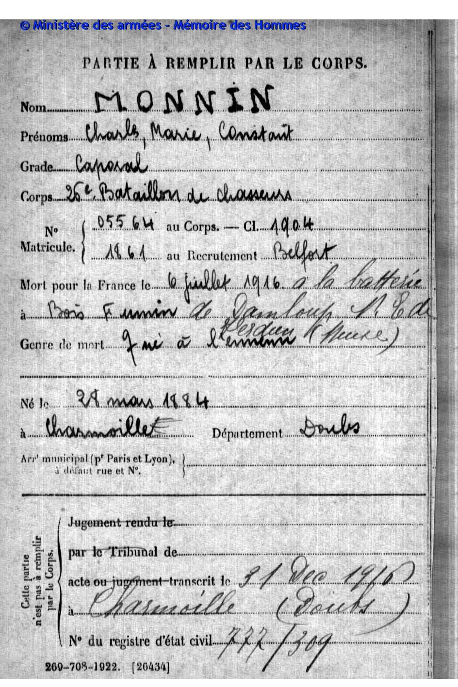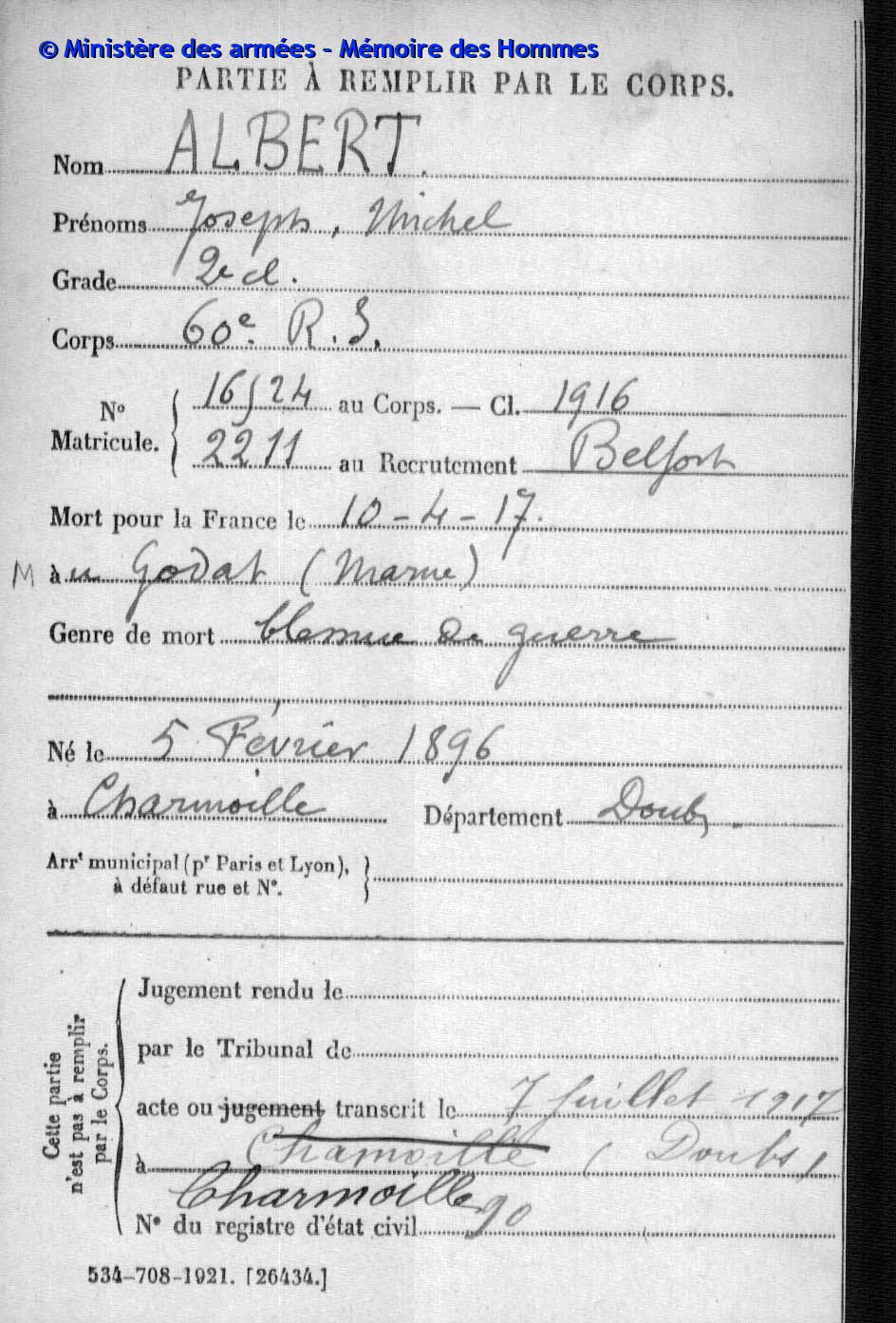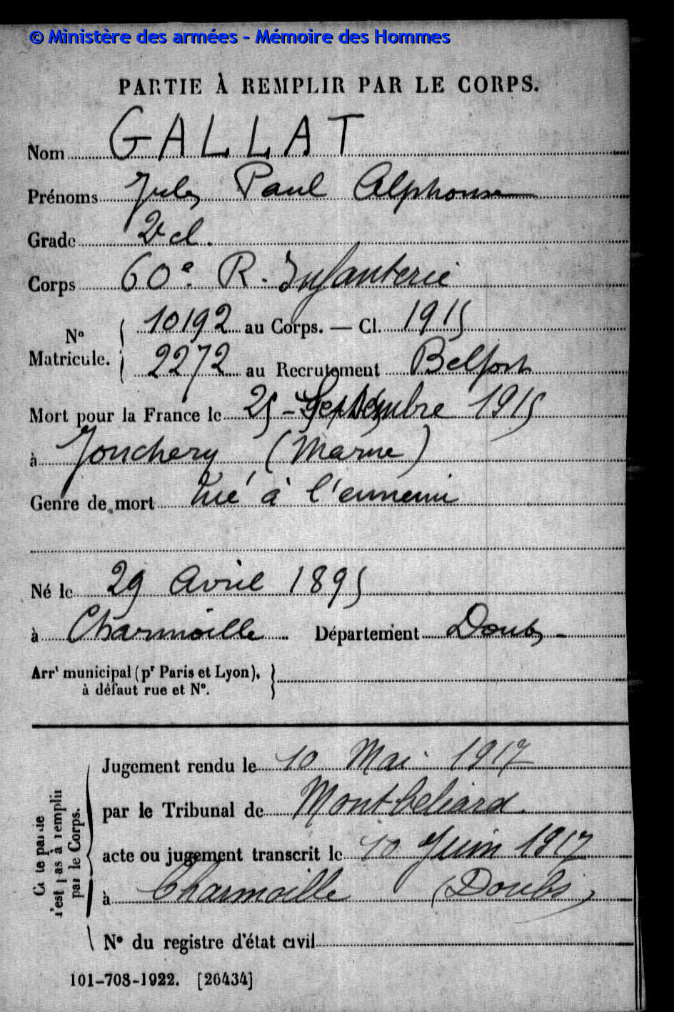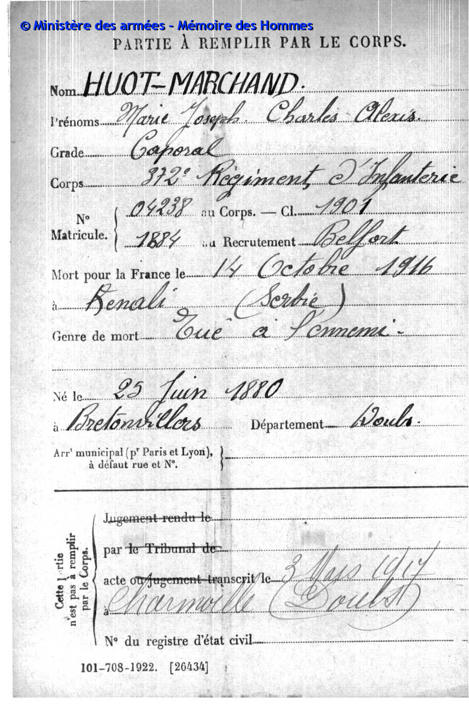 In der 10,14 Km2 grossen Gemeinde mit 323 Einwohner im Departement Doubs (F) befinden sich 27 Namen auf dem Kriegerdenkmal des Dorfes