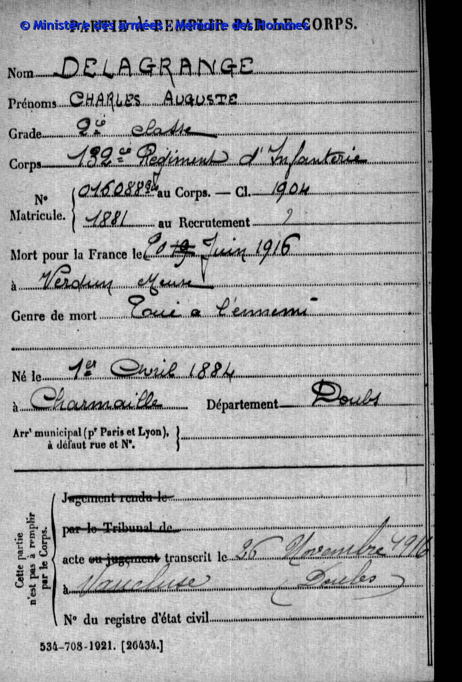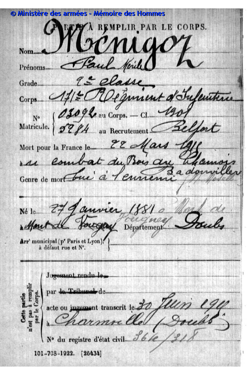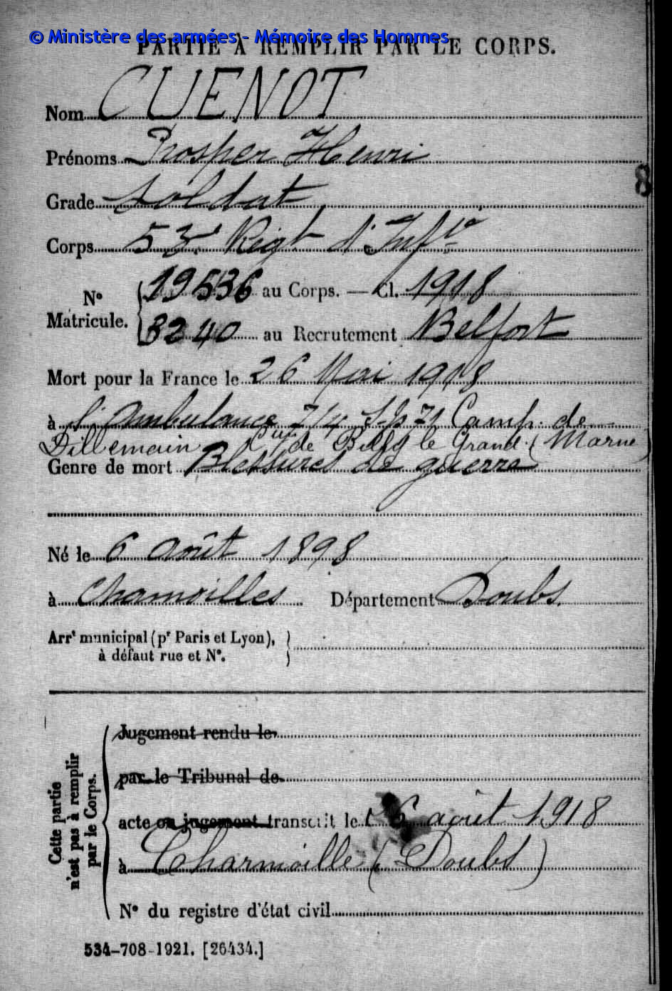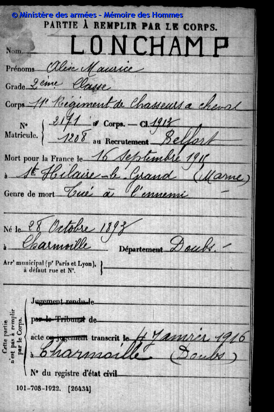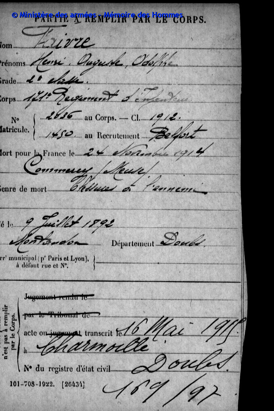 In der 10,14 Km2 grossen Gemeinde mit 323 Einwohner im Departement Doubs (F) befinden sich 27 Namen auf dem Kriegerdenkmal des Dorfes