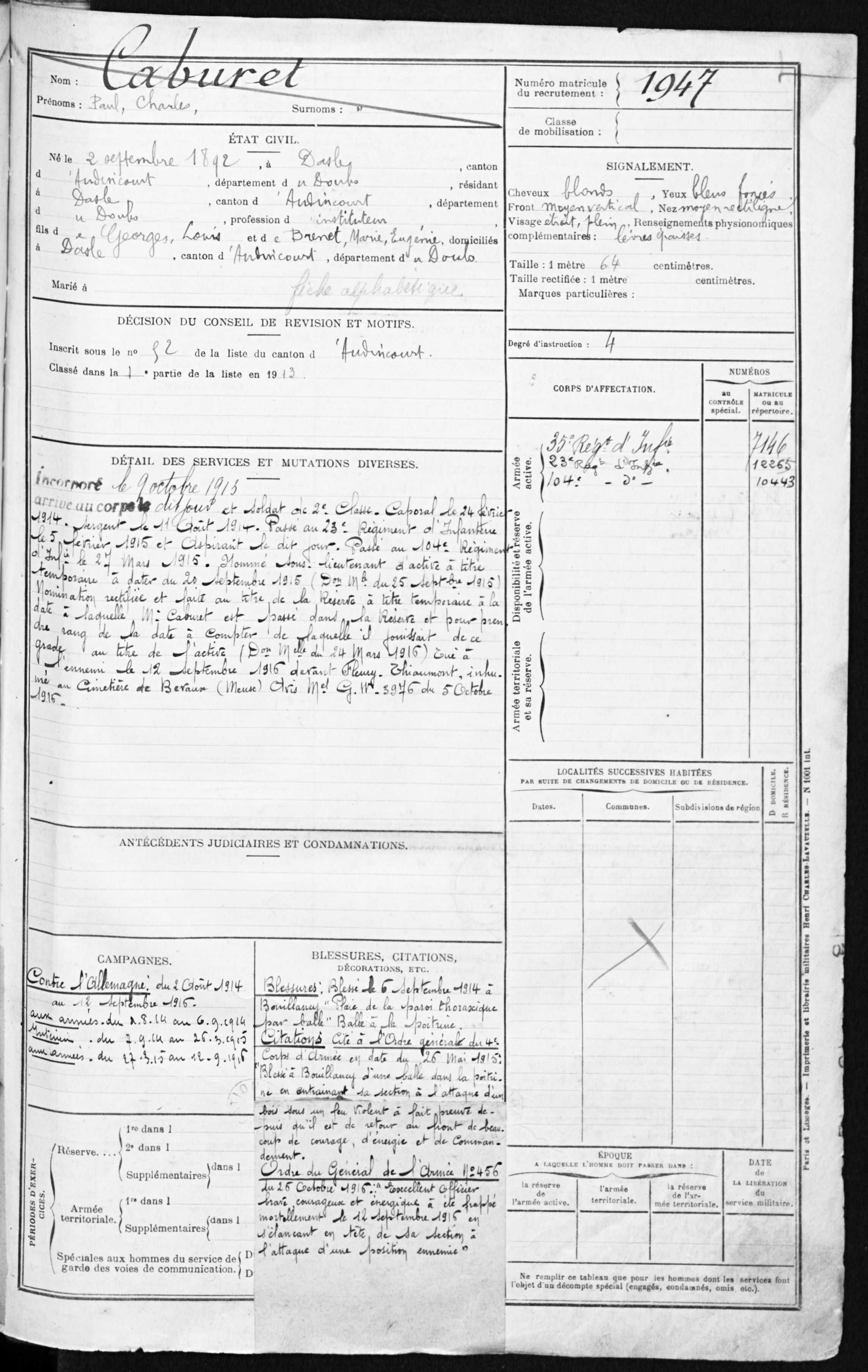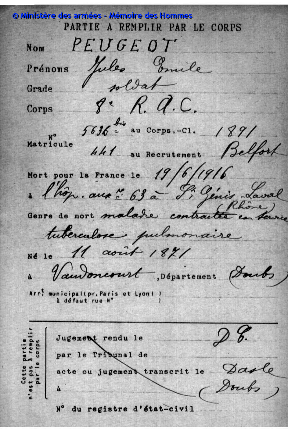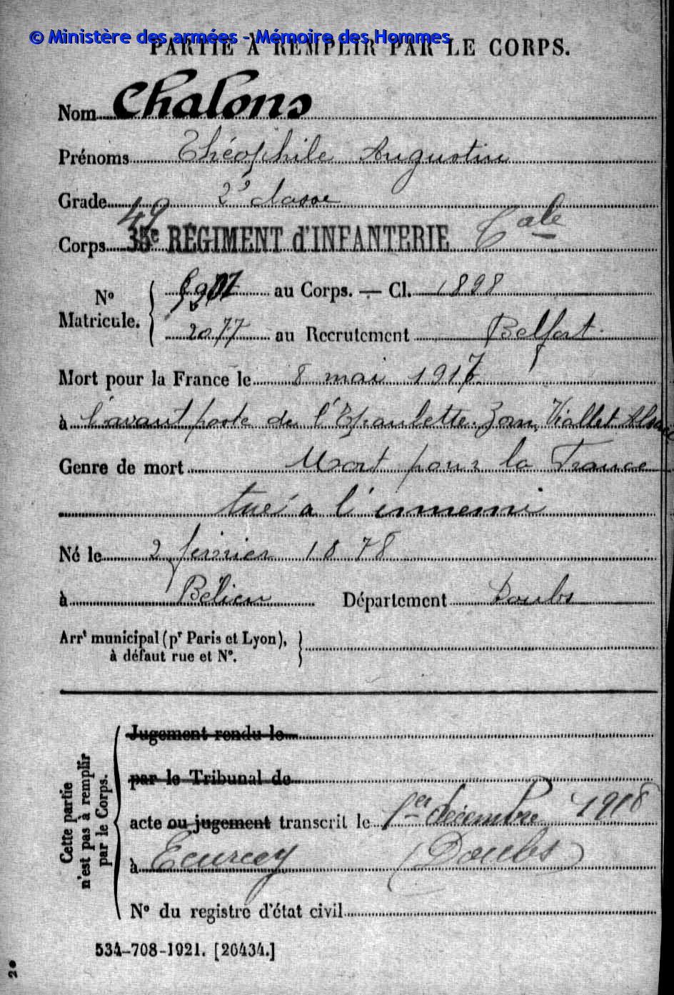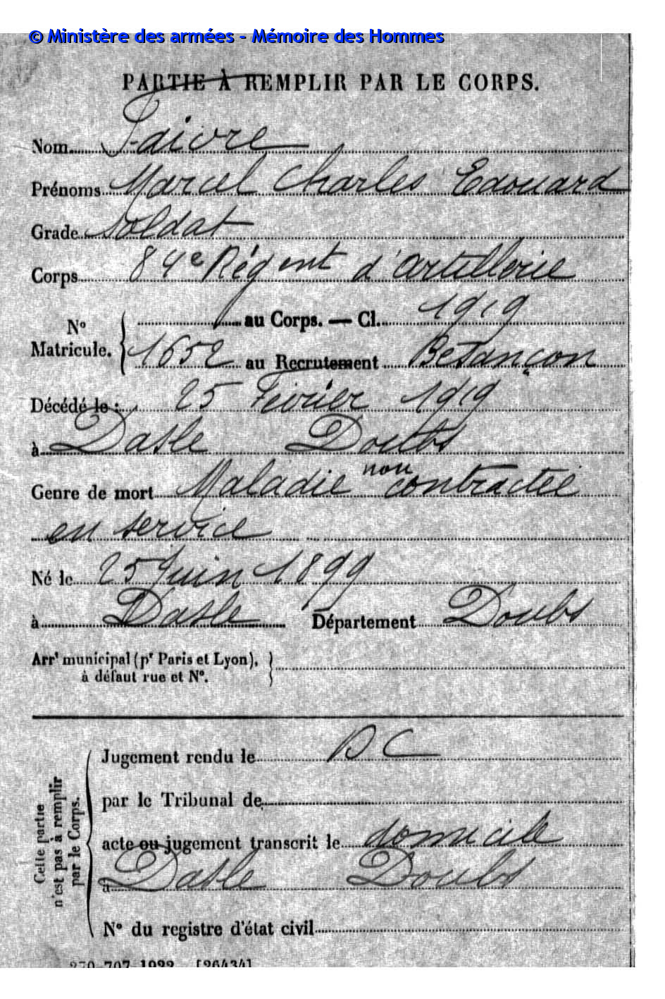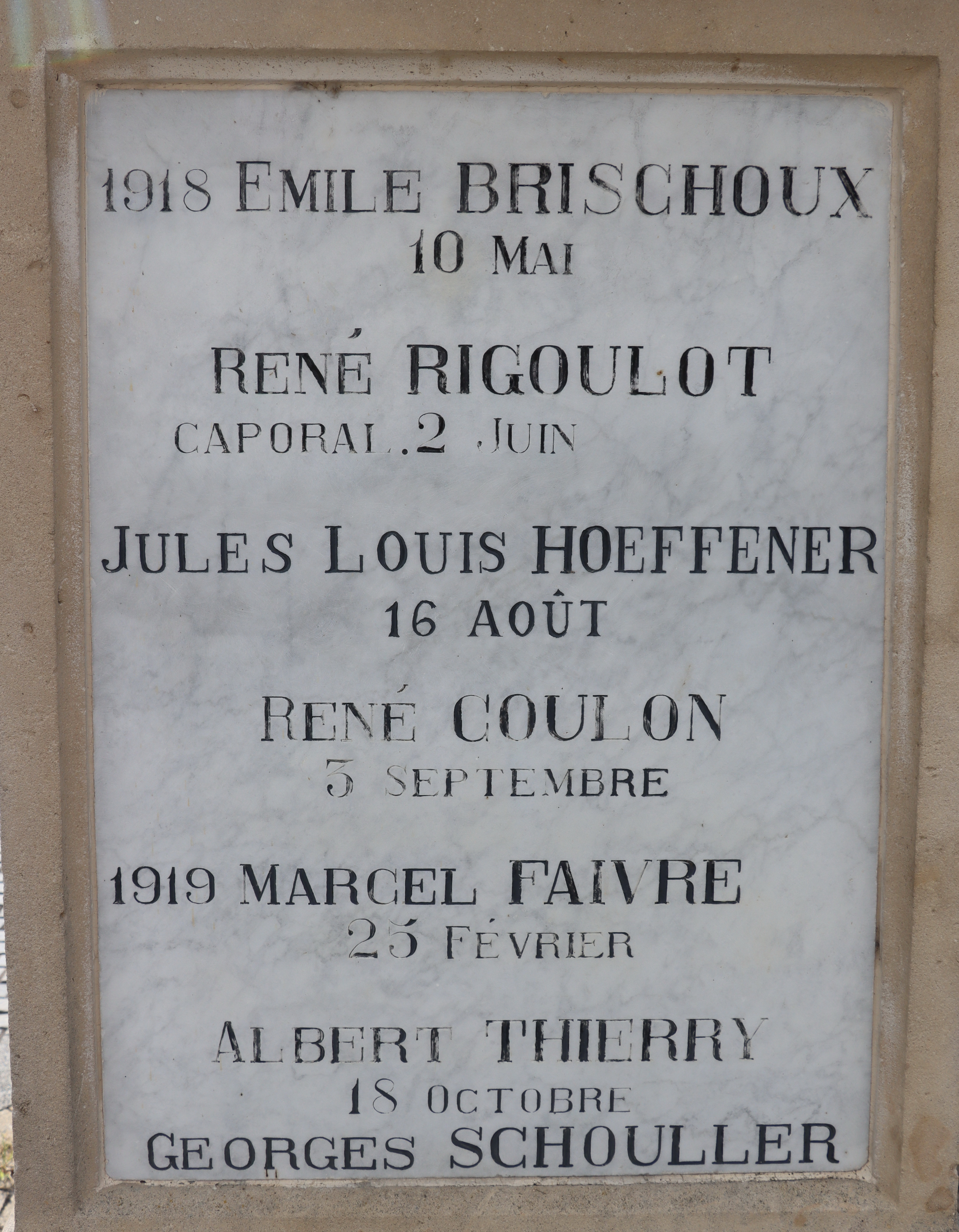 1380 Einwohner leben im 5,67 Km2 kleinen Dorf im Departement Doubs (F). Von den 36 Namen auf dem Kriegerdenkmal sind 20 mit Fabian Coulot verwandt.