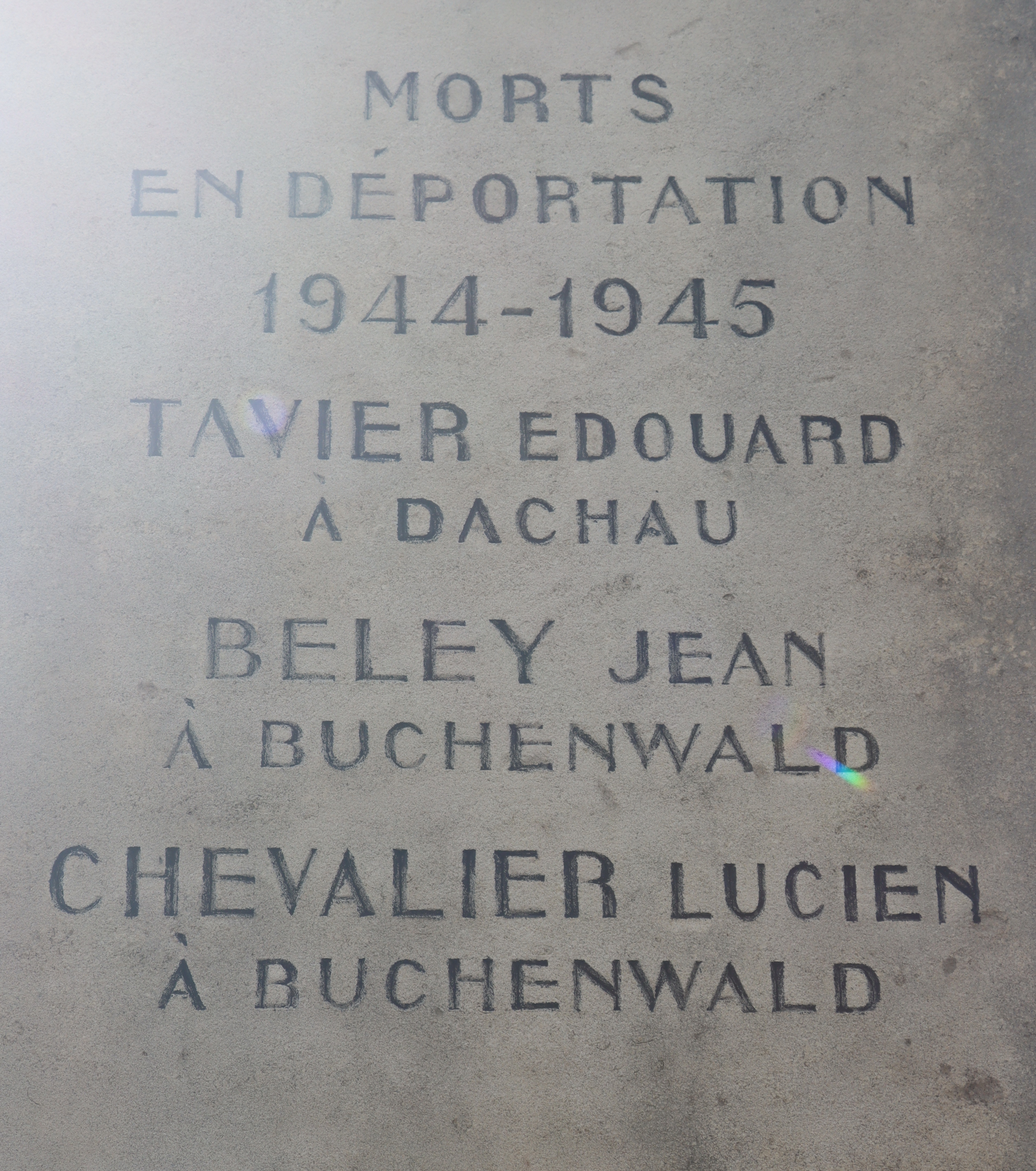 | Arbeiter BELEY Jean Paul Frédéric 11.12.1924 - 03.01.1945 Ziviles Kriegsopfer Service du Travail Obligatoire Verstarb nach Deportation im KZ Buchenwald (D) |