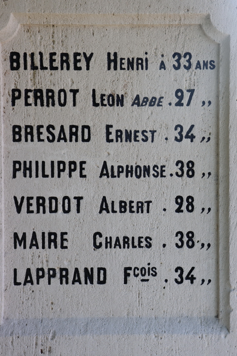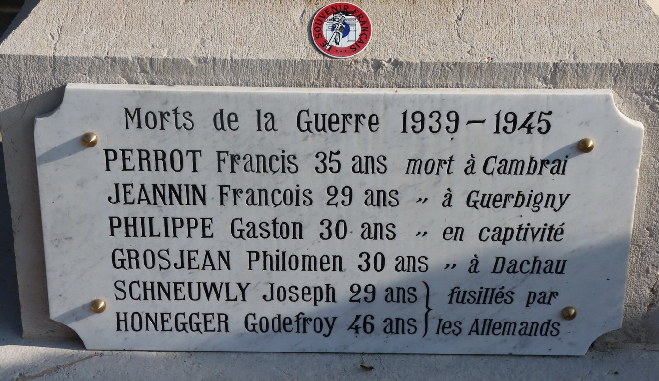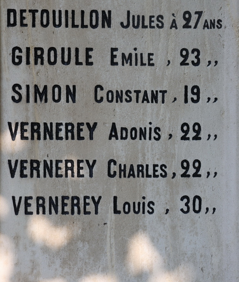 Auf dem Kriegerdenkmal sind 20 gefallenen Soldaten aufgelistet, 16 davon sind mit Fabian Coulot verwandt.