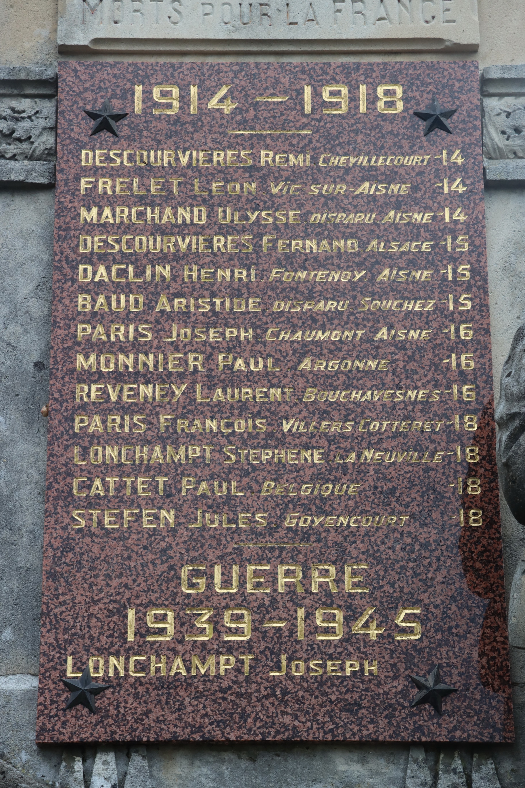 Von den 14 Namen der gefallenen Soldaten auf dem Kriegerdenkmal sind 11 mit Fabian Coulot verwandt.