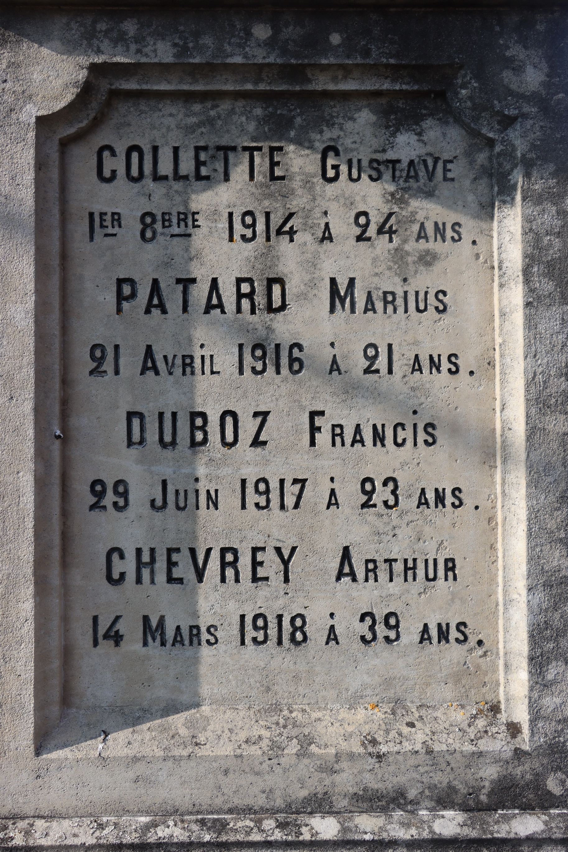 Von den 6 Namen der Kriegsopfer auf dem Kriegerdenkmal sind 5 mit Fabian Coulot verwandt