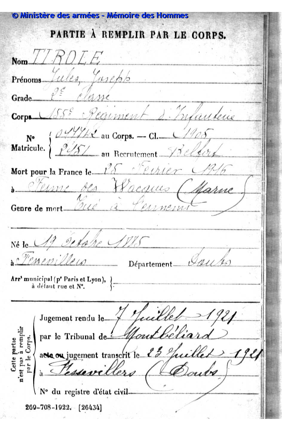 Doubs (F) grenzt am Fluss Doubs an die Schweiz. Alle 4 Namen der gefallenen
