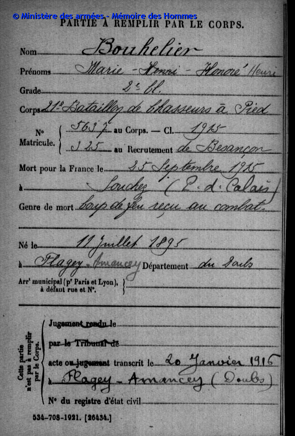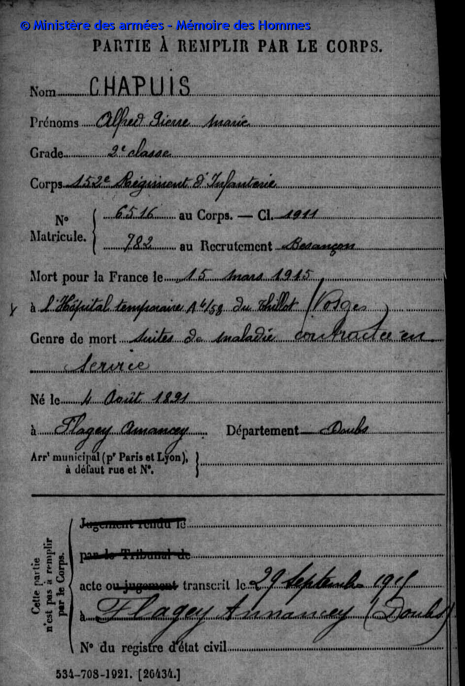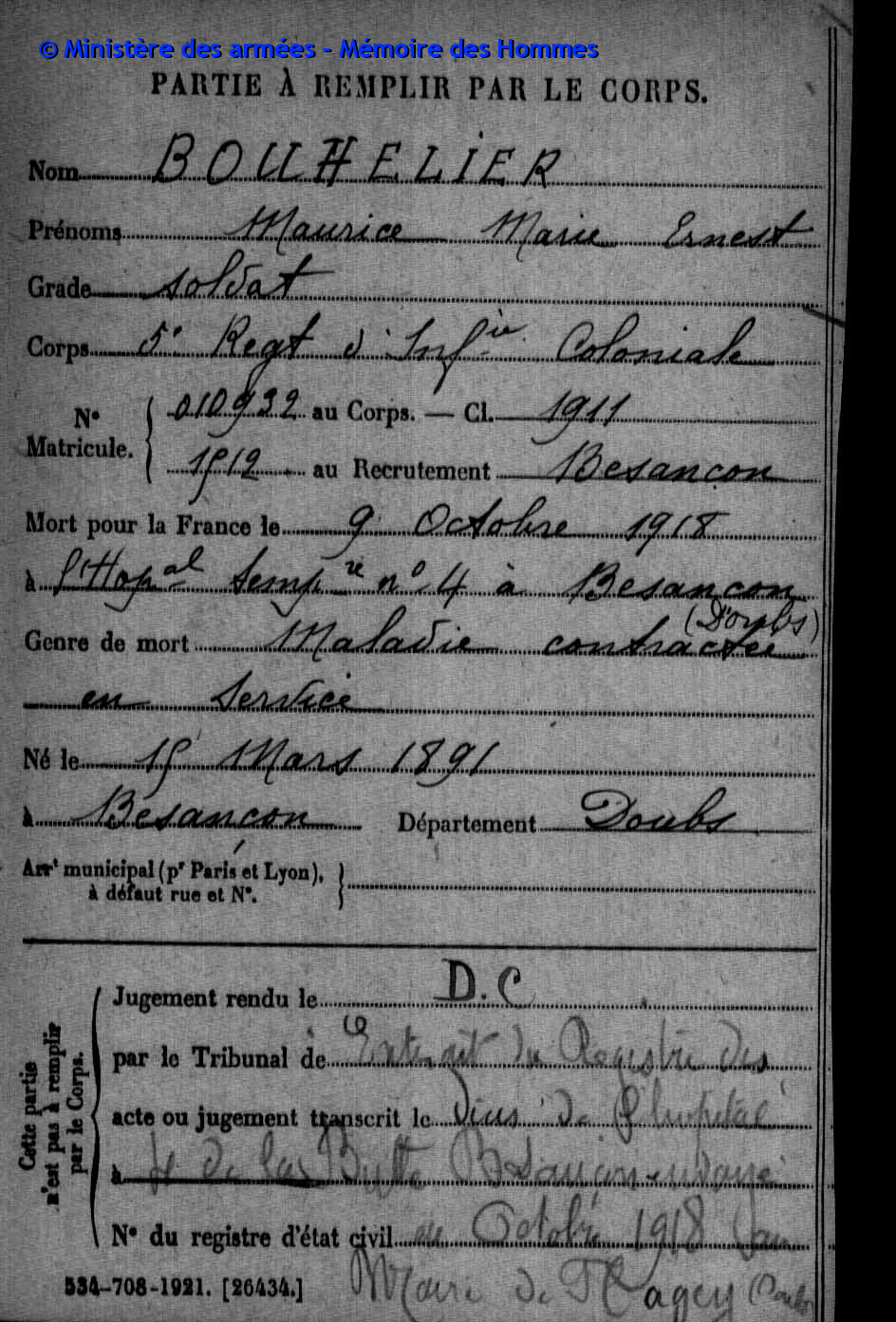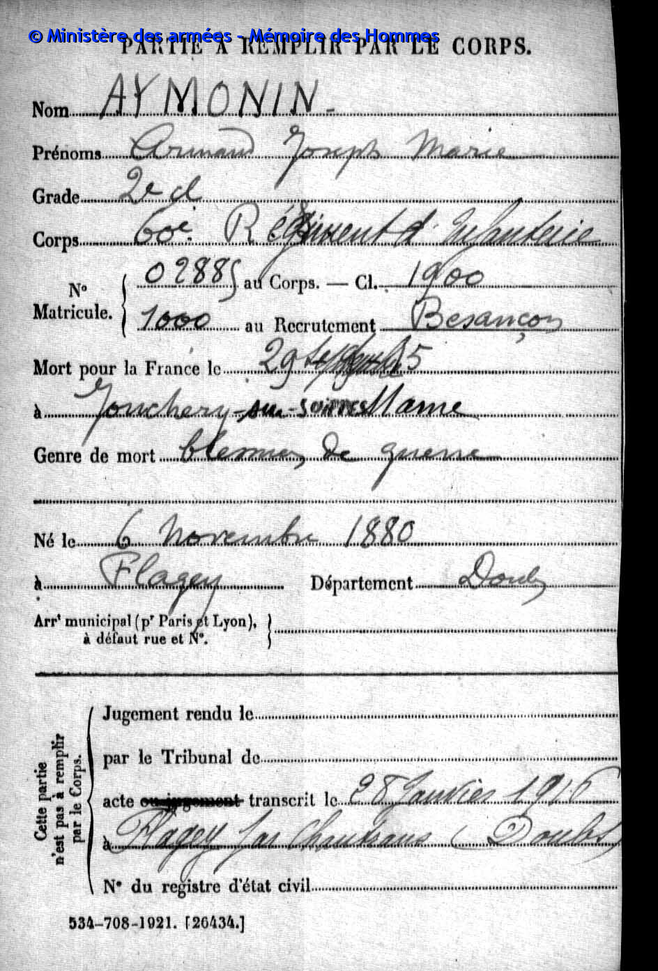 2ème classe OUDOT Maurice Joseph Léon 08.10.1880 - 20.09.1914 60ème Régiment d'Infanterie Gilt als vermisst in Autreches - Oise (F) |