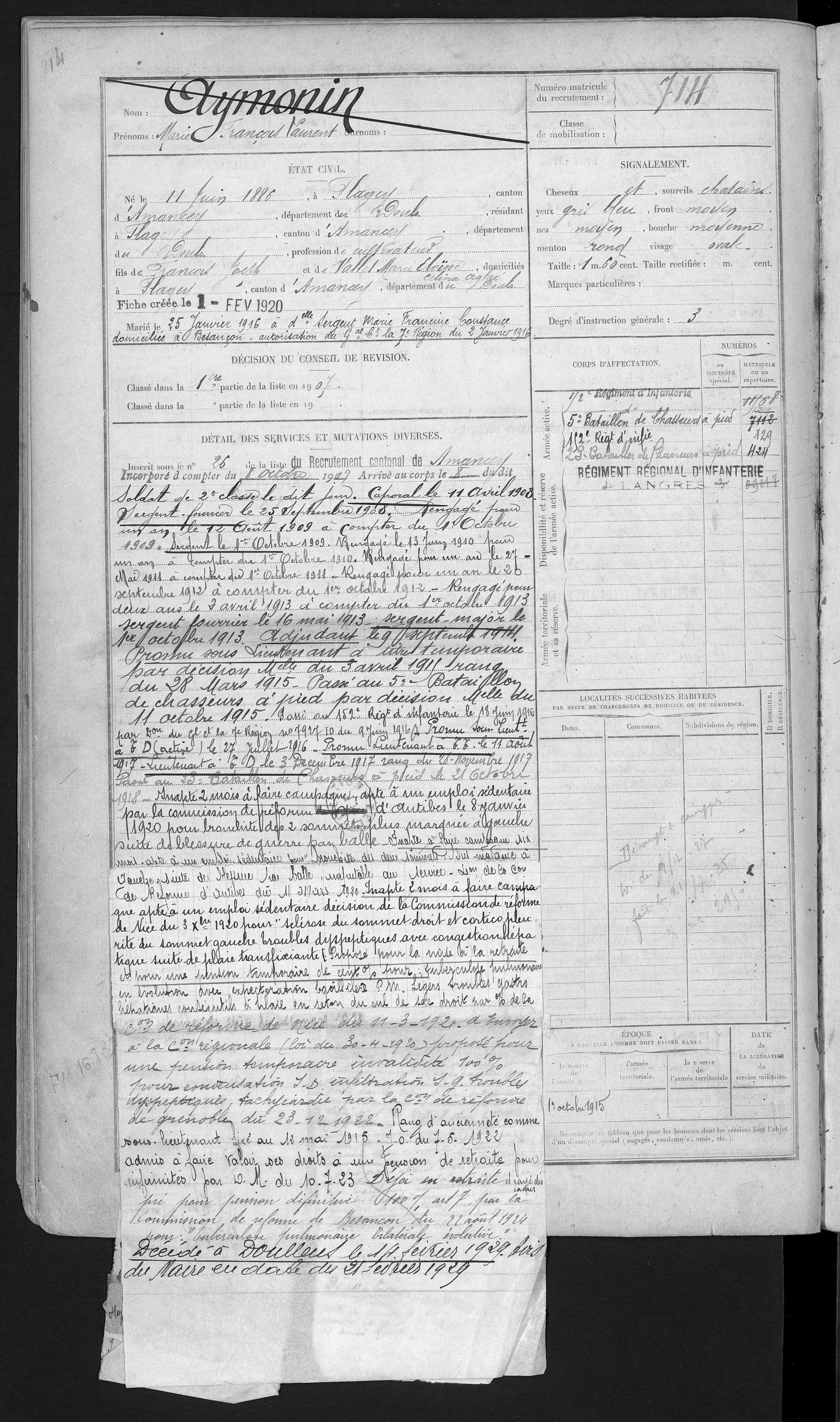 Canonnier VOGNE Marie Charles Alix 04.12.1901 - 20.03.1943 Centre Mobilisateur d'Artillerie Dépõt No.7 Verstarb durch Unfall in deutscher Kriegsgefangenschaft |