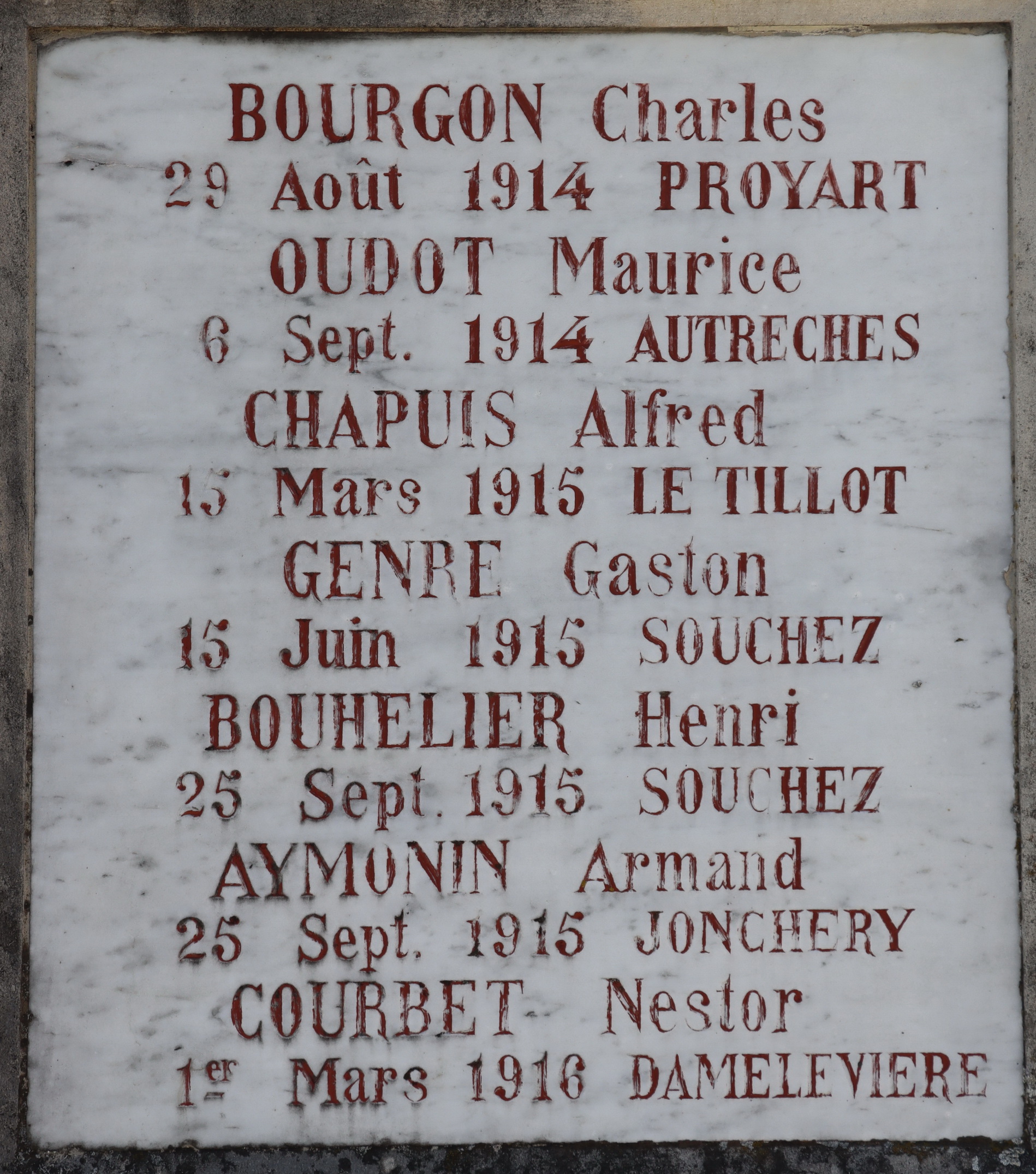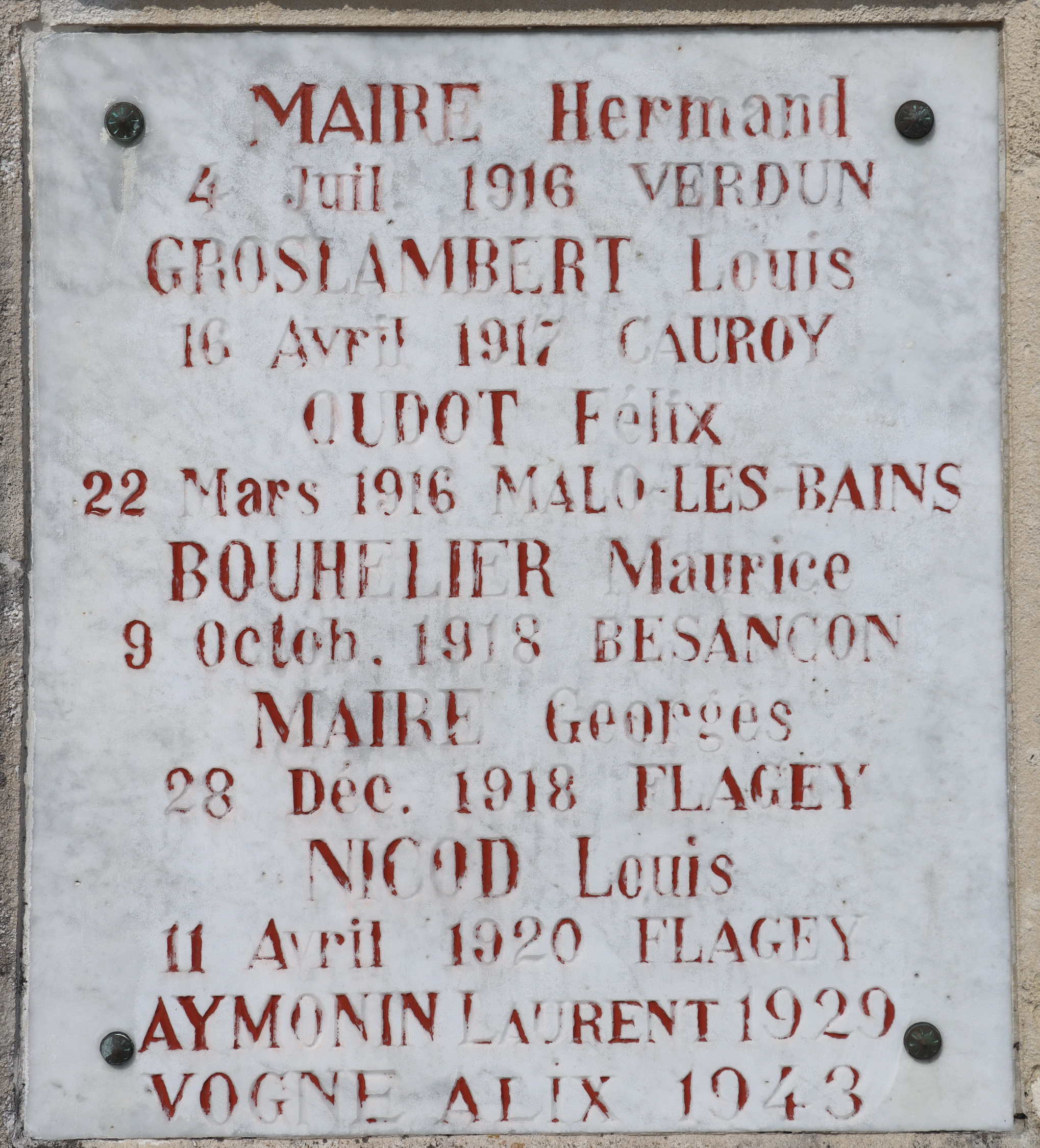 Die 7,65 Km2 kleine Gemeinde im Departement Doubs (F) mit 147 Einwohner weisst ein Kriegerdenkmal zu Ehren der gefallenen Soldat aus.