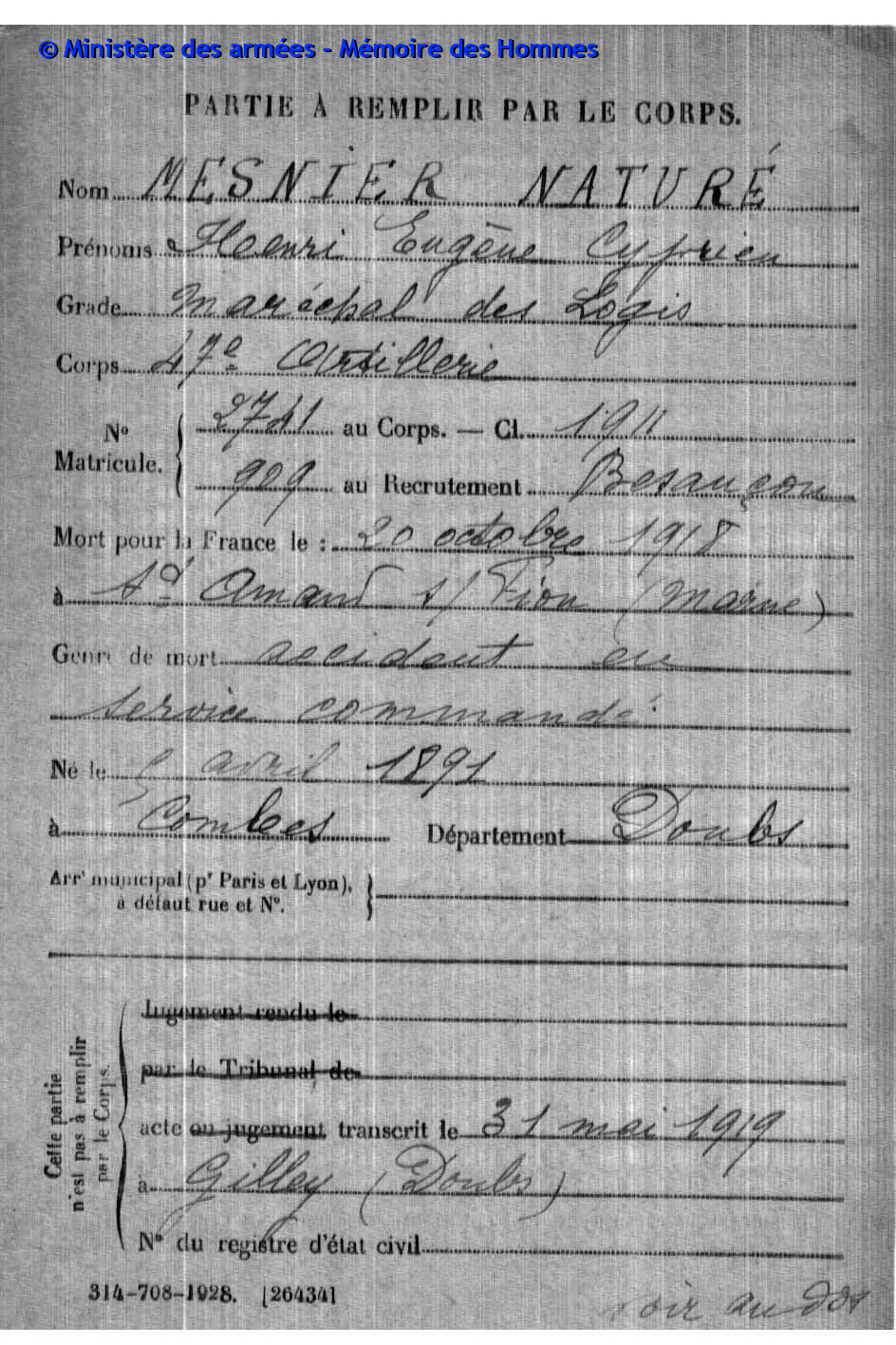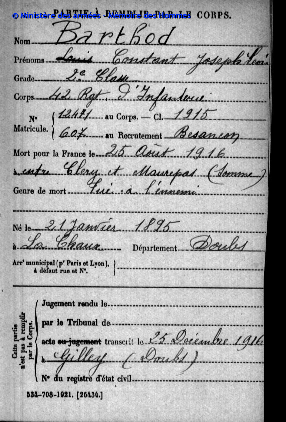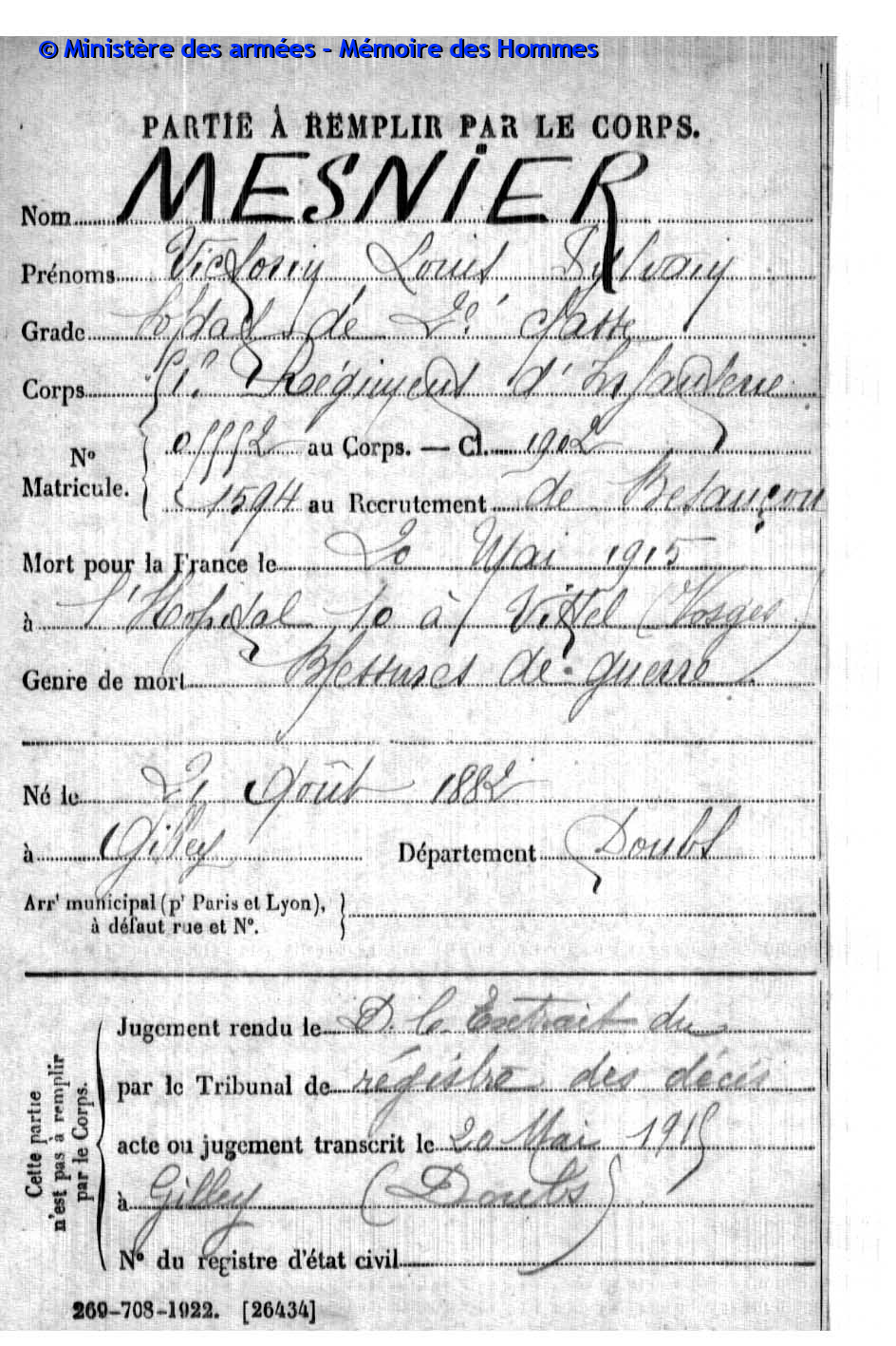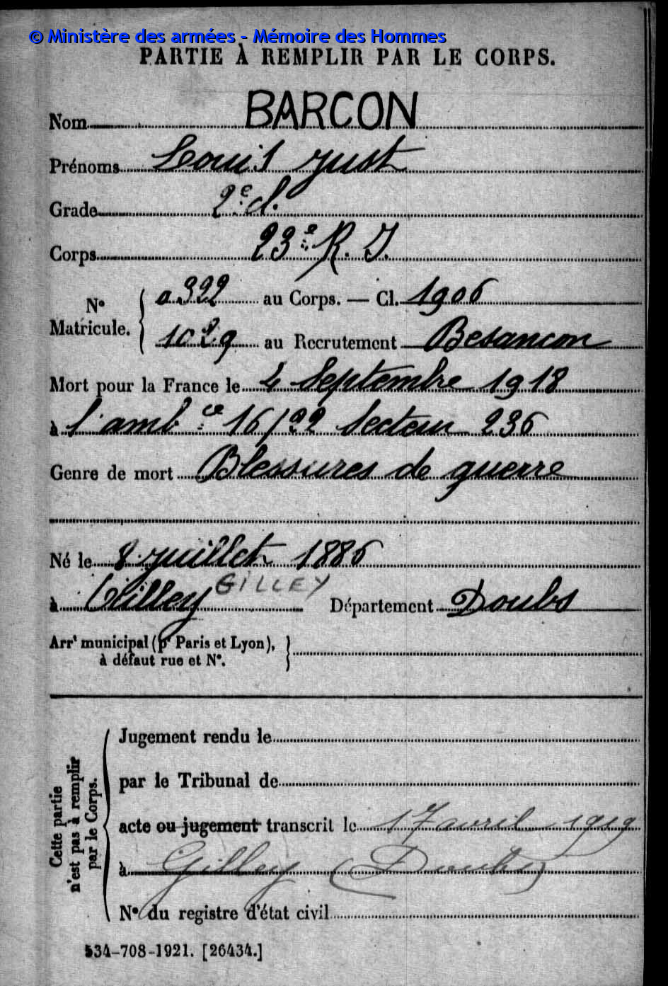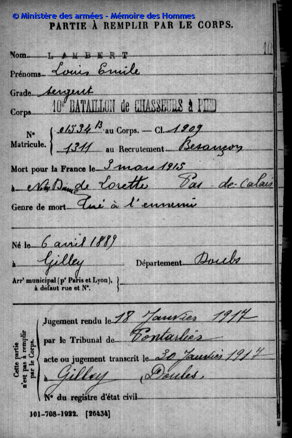 | Soldat BOILLOT Henri Louis Fernand 05.05.1916 - 01.06.1940 4ème Groupe de Reconnaissance d'Infanterie Gefallen an Bord der HMS SCOTIA in Dünkrichen (BE) |