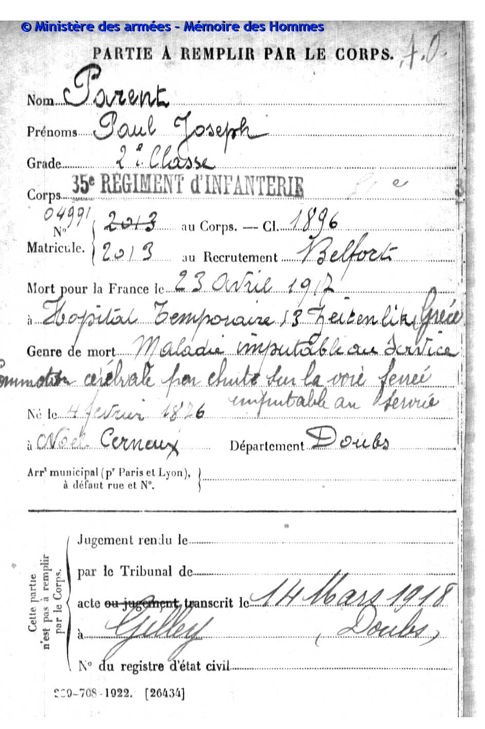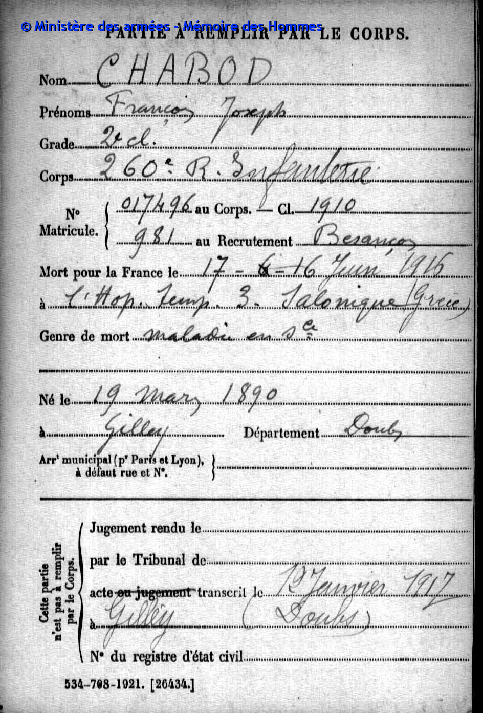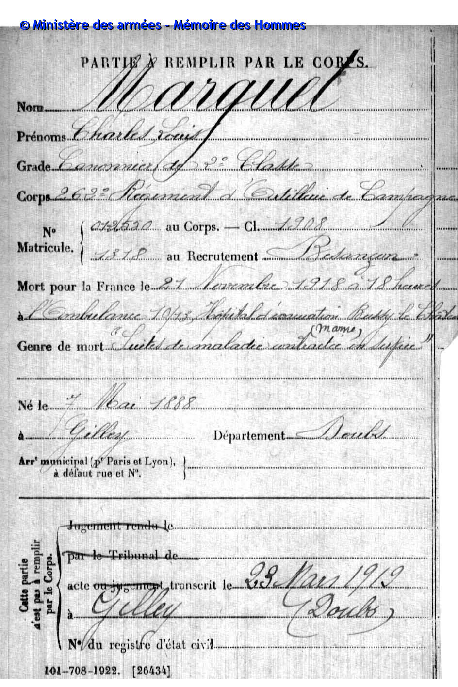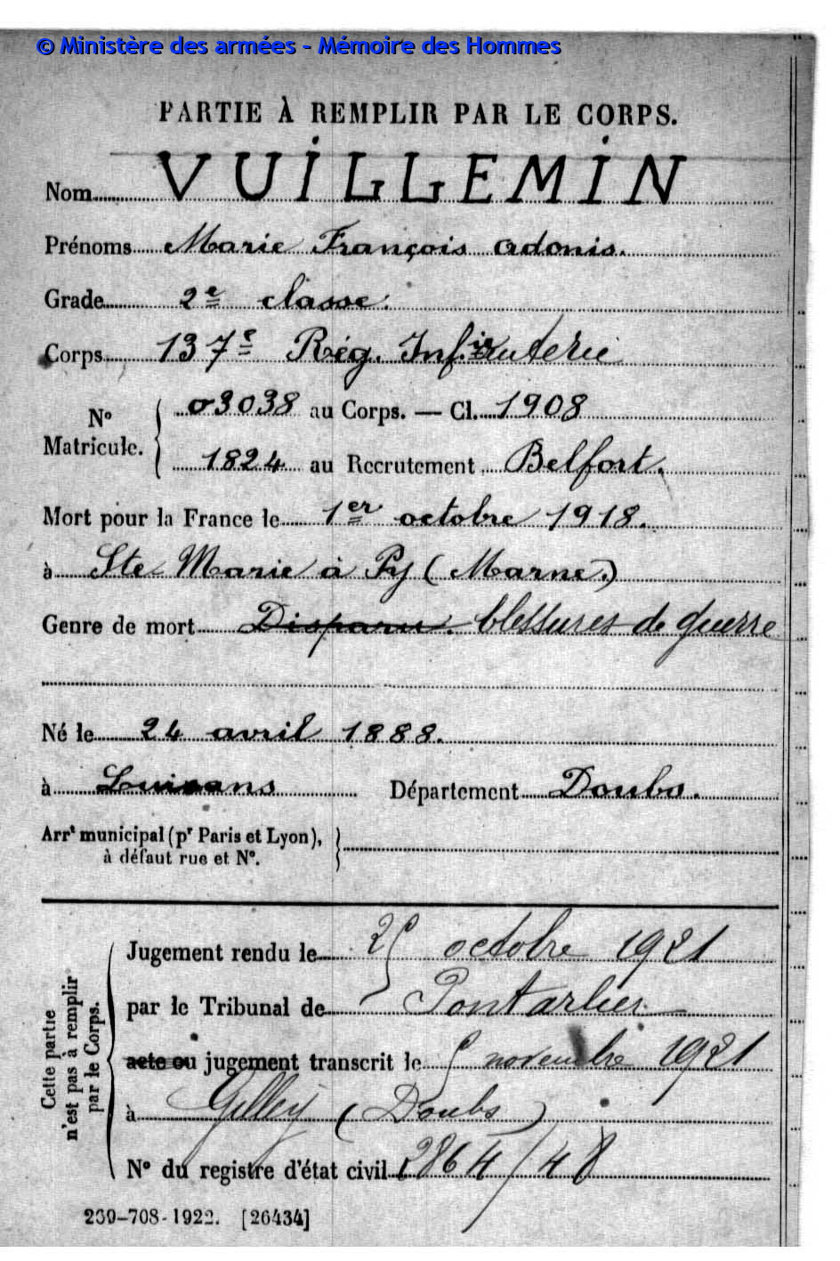 | Soldat BOILLOT Henri Louis Fernand 05.05.1916 - 01.06.1940 4ème Groupe de Reconnaissance d'Infanterie Gefallen an Bord der HMS SCOTIA in Dünkrichen (BE) |