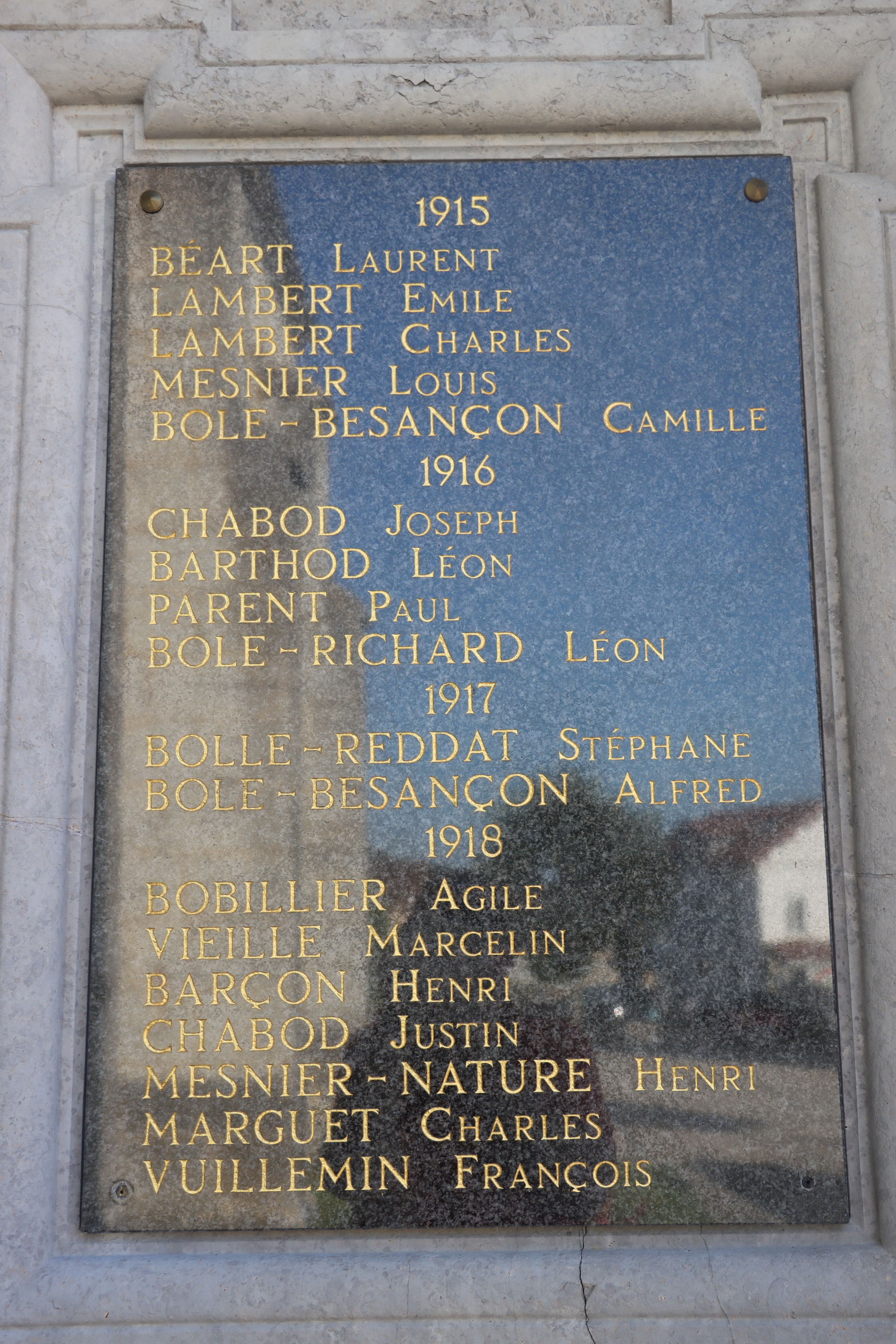 Von den 24 Namen der gefallenen Soldaten aus den Weltkriegen auf dem Kriegerdenkmal sind 19 mit Fabian Coulot verwandt.