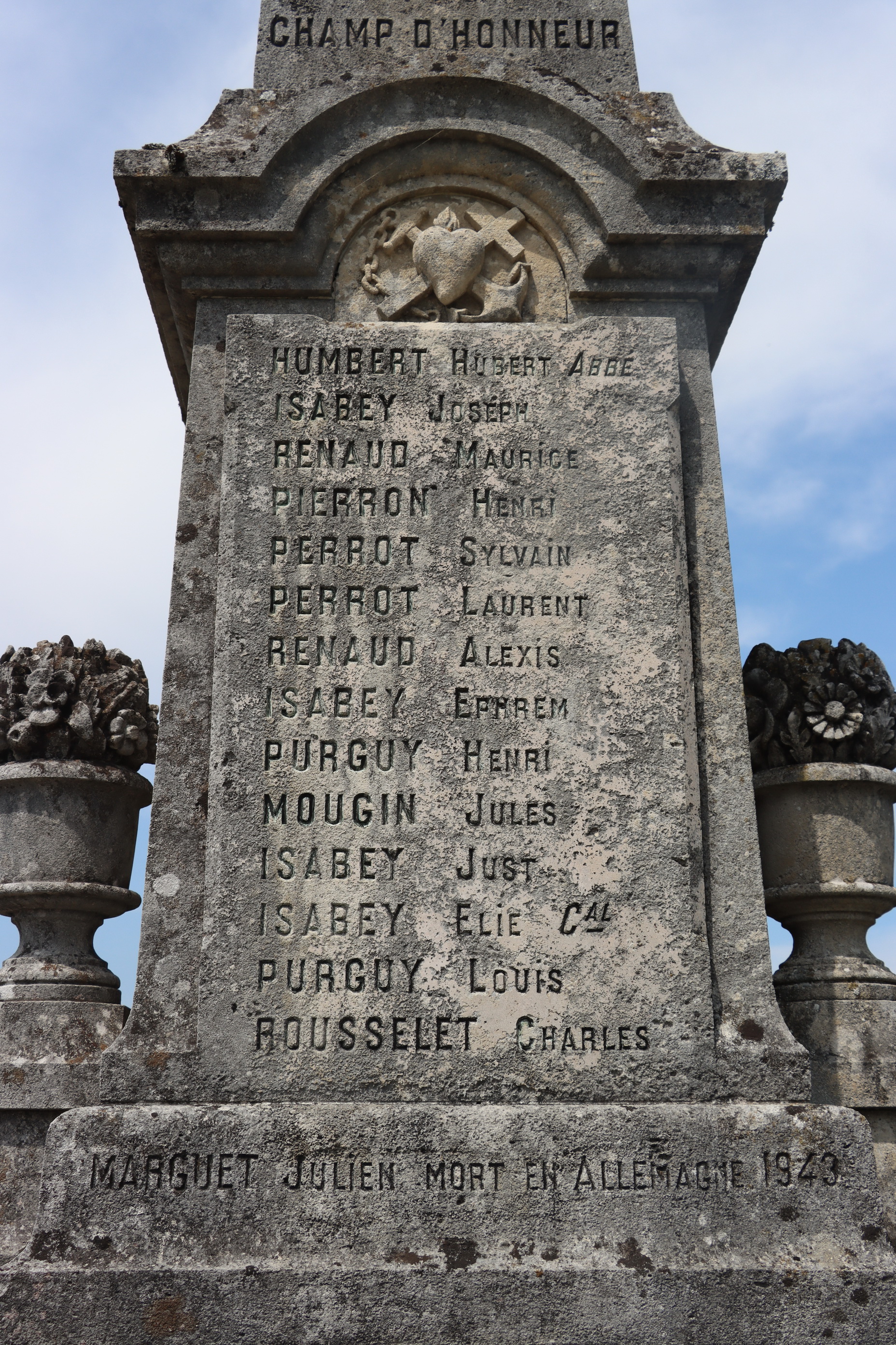 Auf dem Kriegerdenkmal der 11,87 km2 grossen Gemeinde mit 133 Einwohner im Departement Doups (F) sind von 12 von 14 Namen der gefallenen Soldaten mit Fabian Coulot verwandt.