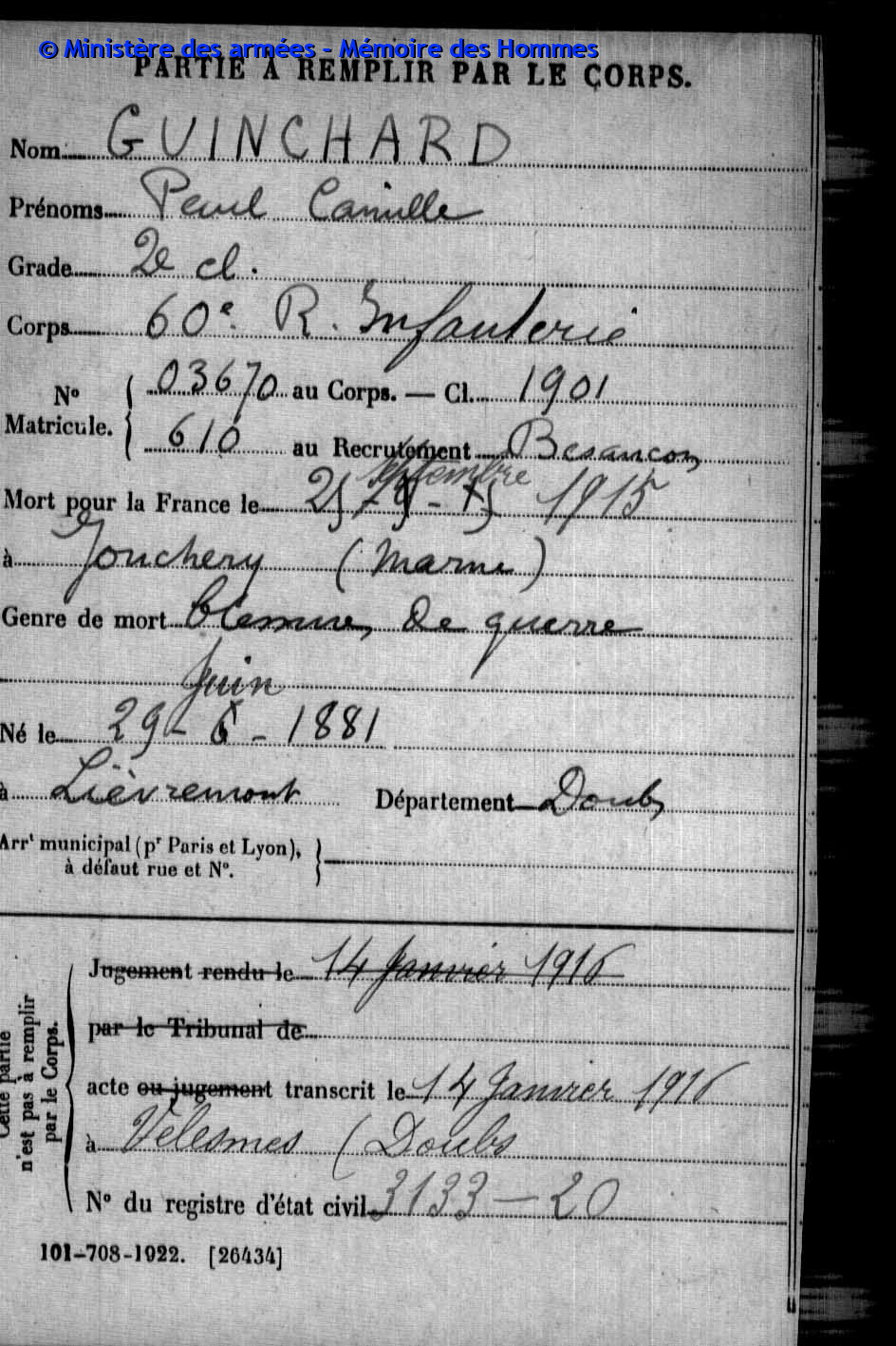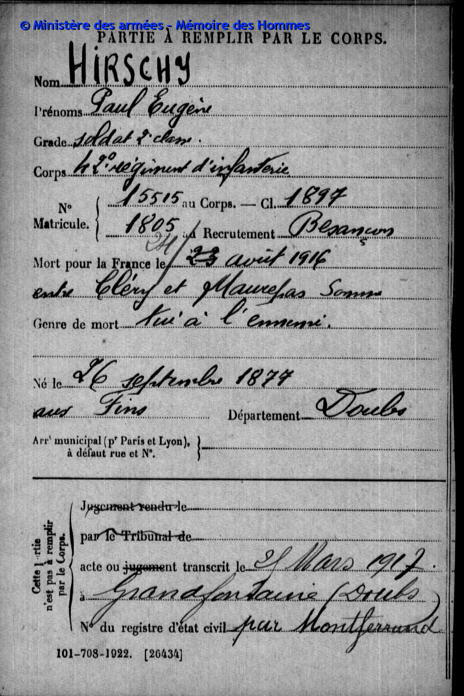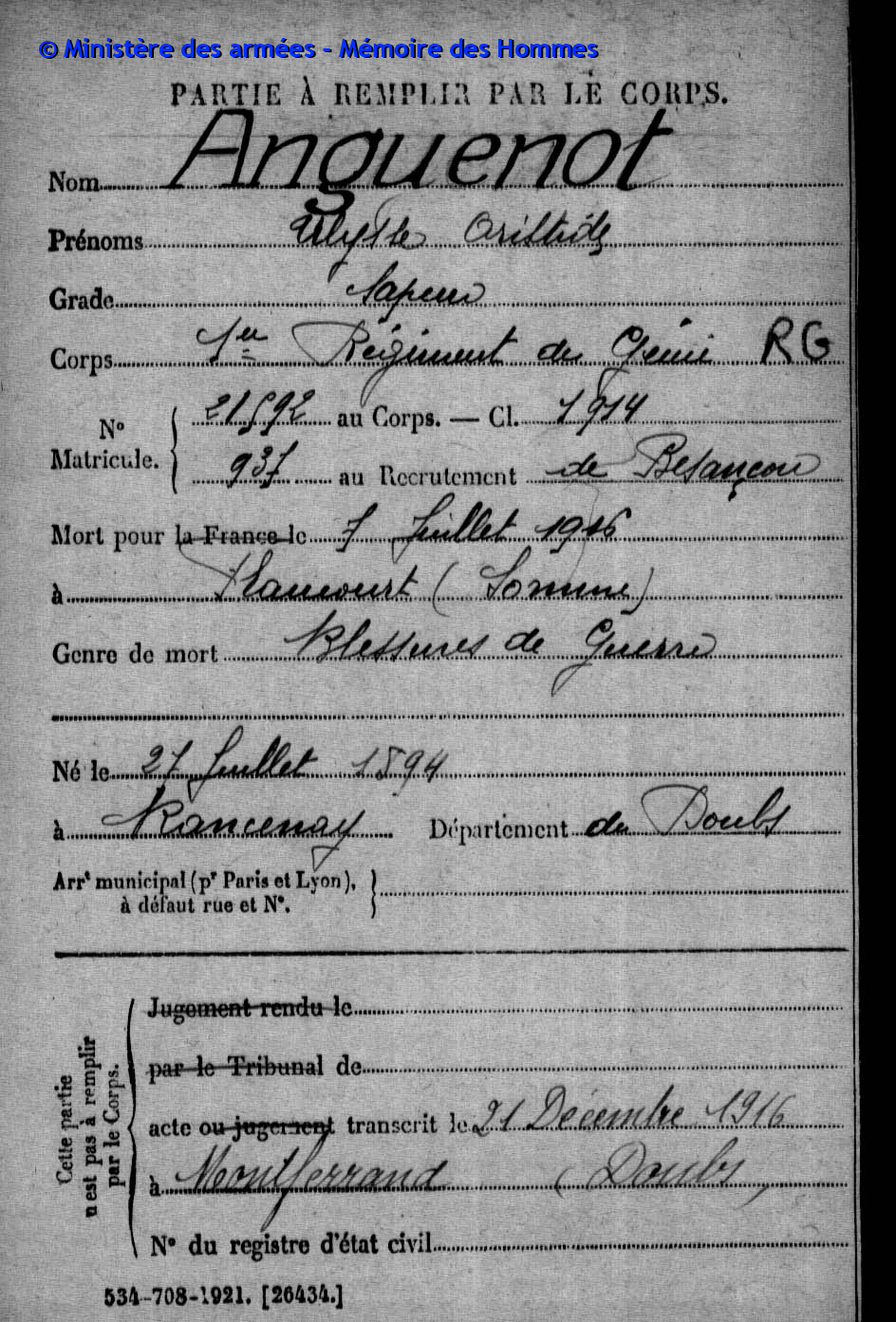 Verstarb an seinen Wunden in Flaucourt - Somme
