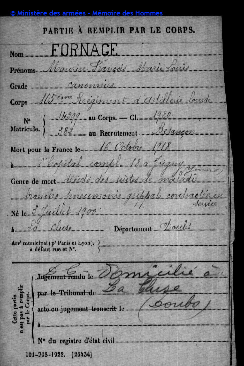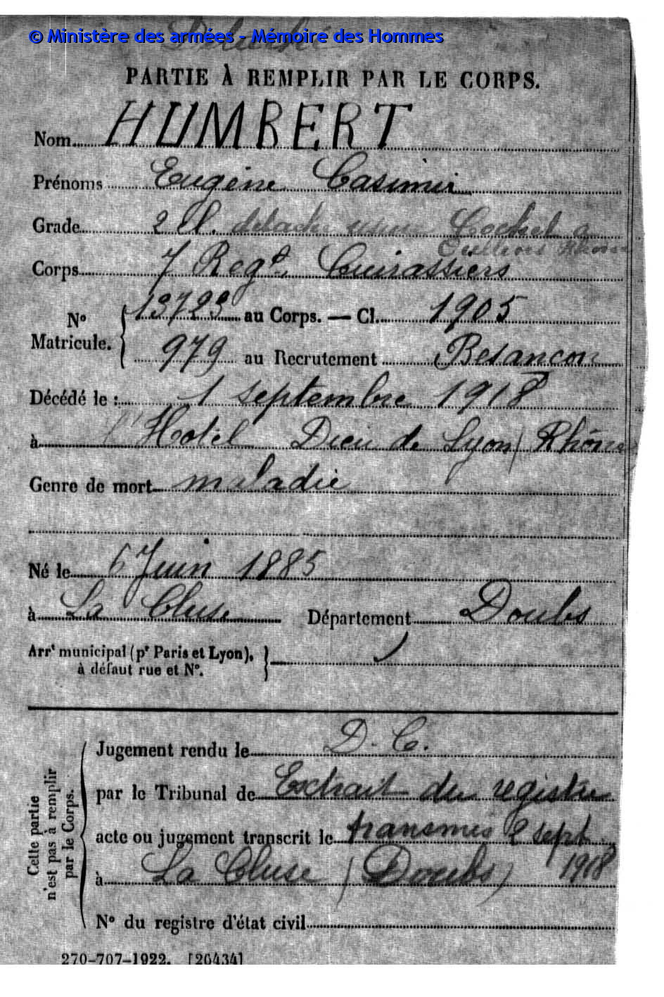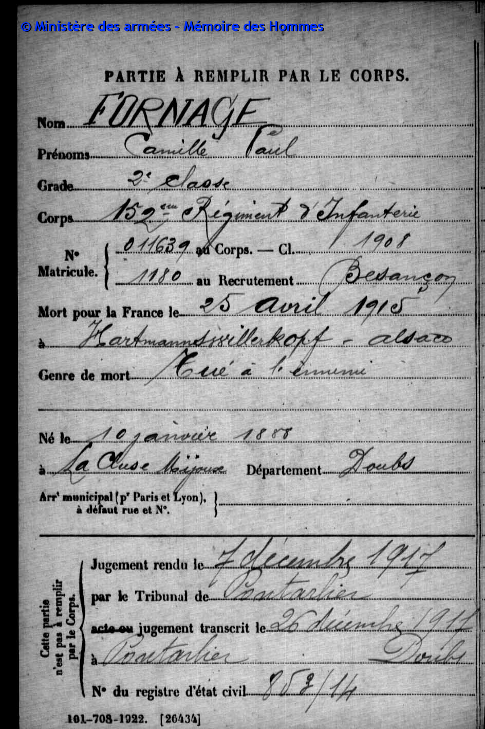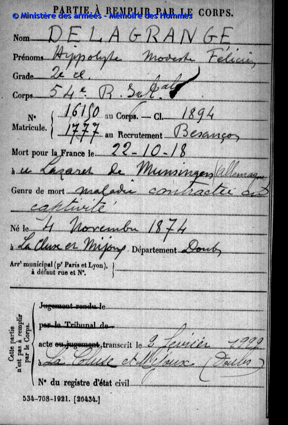2ème classe GRIFFON Eugène Elie Marius 07.08.1896 - 30.12.1917 51ème Bataillon de Chasseurs Alpins 8ème Compagnie Gefallen in Monfenera (I) |